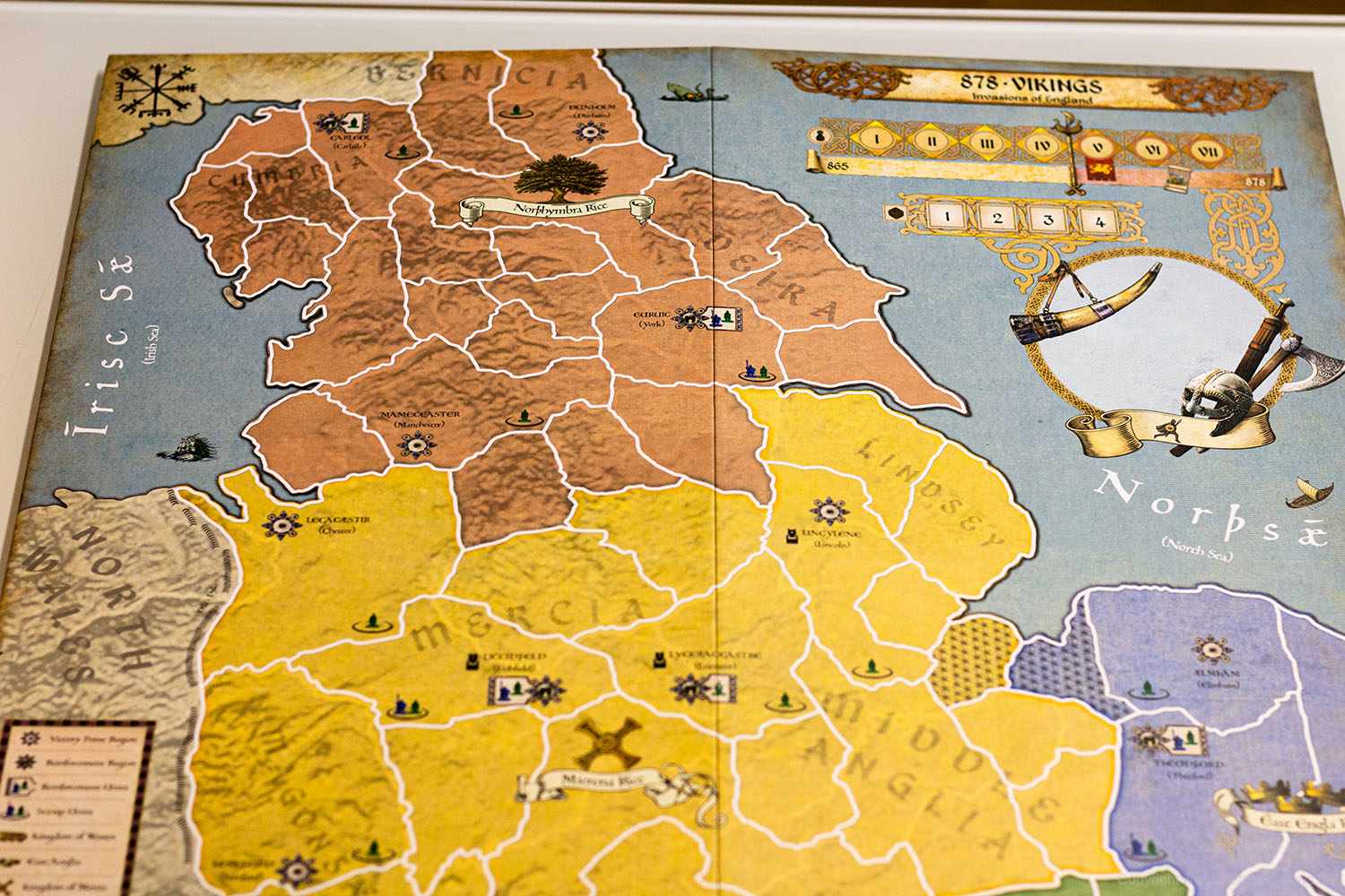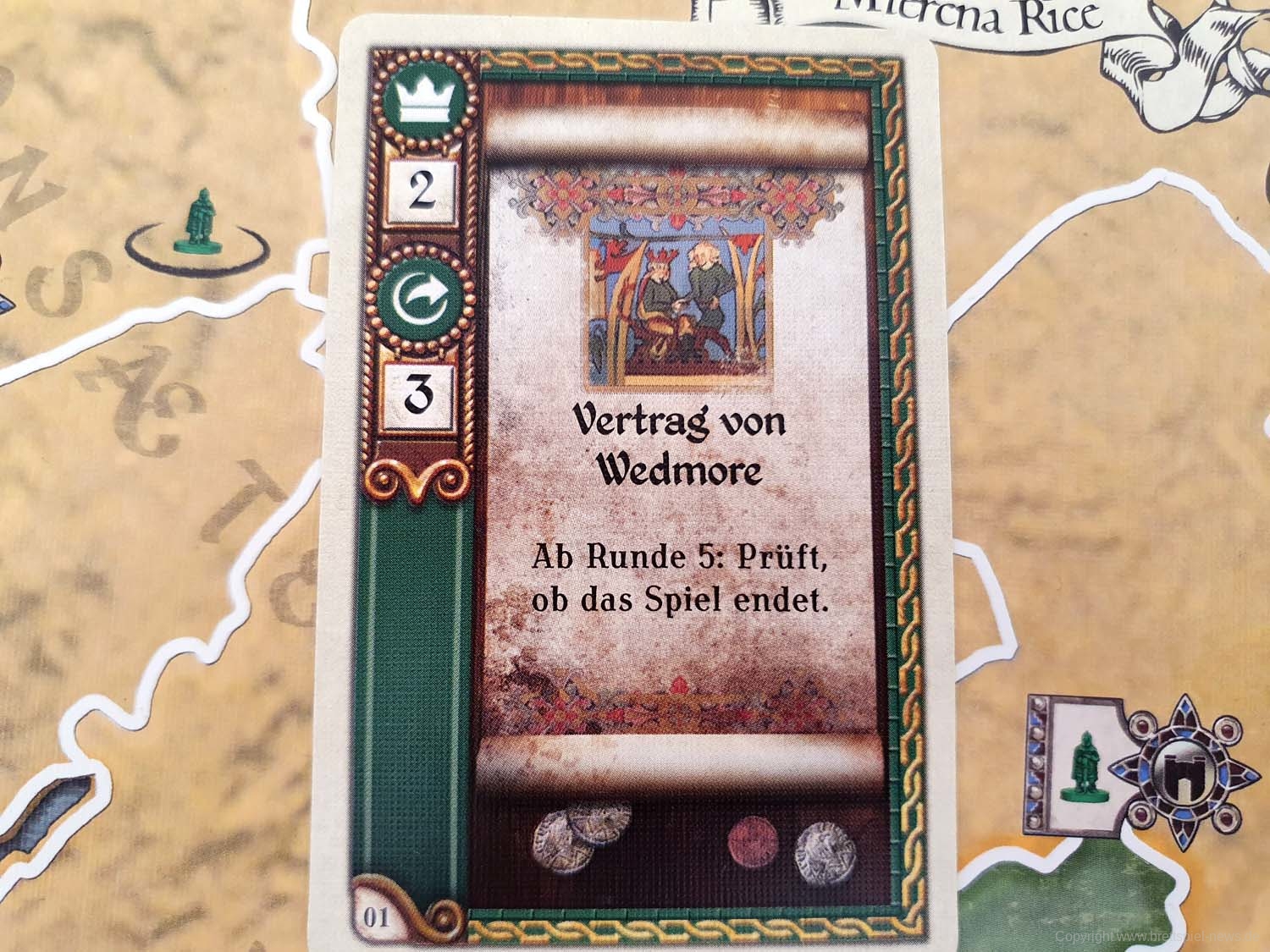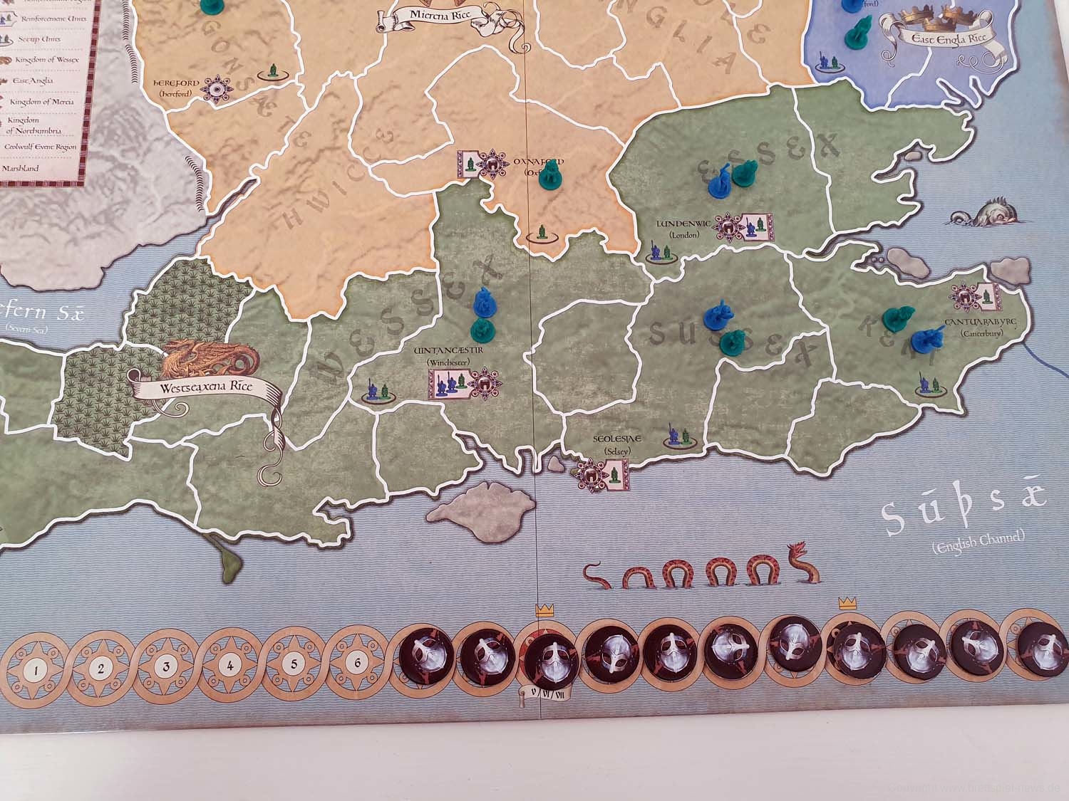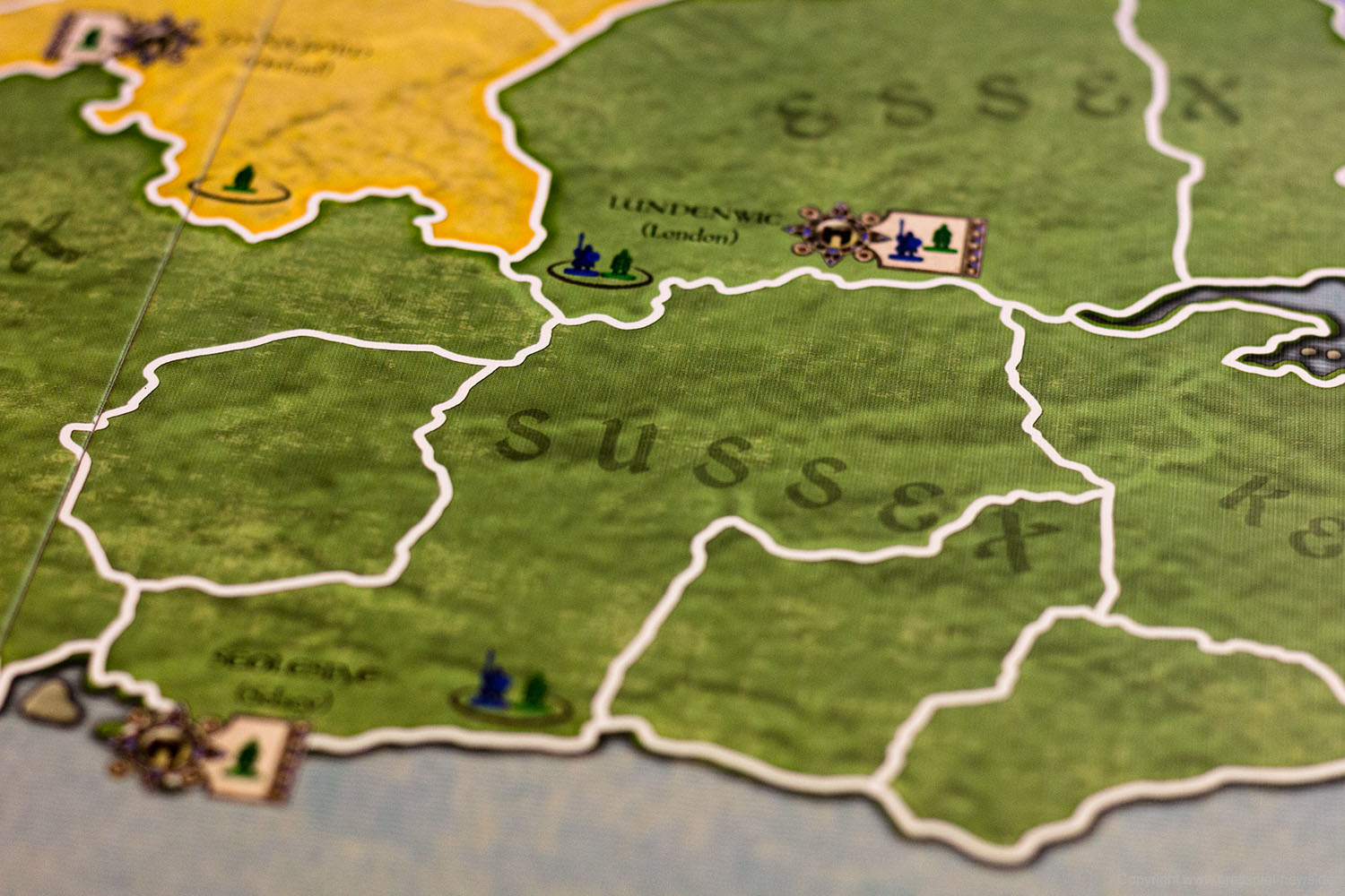 Nichtsdestotrotz sind mir bei meinen Testpartien einige Probleme aufgefallen. Allen voran wäre da die nicht wegzusprechende Glückslastigkeit des Spiels zu nennen. Vom Ziehen der Eventkarten bis zum Werfen der Würfel ist annähernd alles abhängig vom Zufall, was ziemlich frustrierend sein kann. Hinzu kommt, dass sowohl die Eventkarten der Engländer als auch die Würfel erheblich schwächer ausfallen, als die der Wikinger, wodurch die Engländer fast keinen Angriff gewinnen. Da hilft auch kein Alfred der Große mehr, welcher nur eine Handvoll Huscarls und Thanes in die Schlacht führt. Ein weiteres Problem bietet die Bewegung der Armeen und ihrer Anführer, welche schlichtweg nicht intuitiv genug ist.