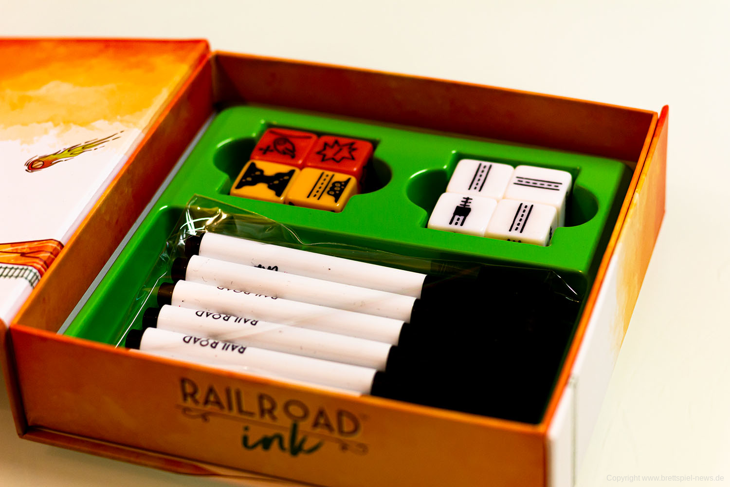 Vor wenigen Wochen hat unser Rezensent Jan Maguna auf unserem Kanal bereits die RAILROAD INK. EDITION TIEFBLAU vorgestellt. Da der Spielablauf bis auf die optional nutzbaren Erweiterungswürfel identisch ist, möchte ich hier auf seinen Test verweisen. Der dort beschriebene Spielablauf ist wunderbar erklärt und kann für die EDITION KNALLROT exakt so übernommen werden.