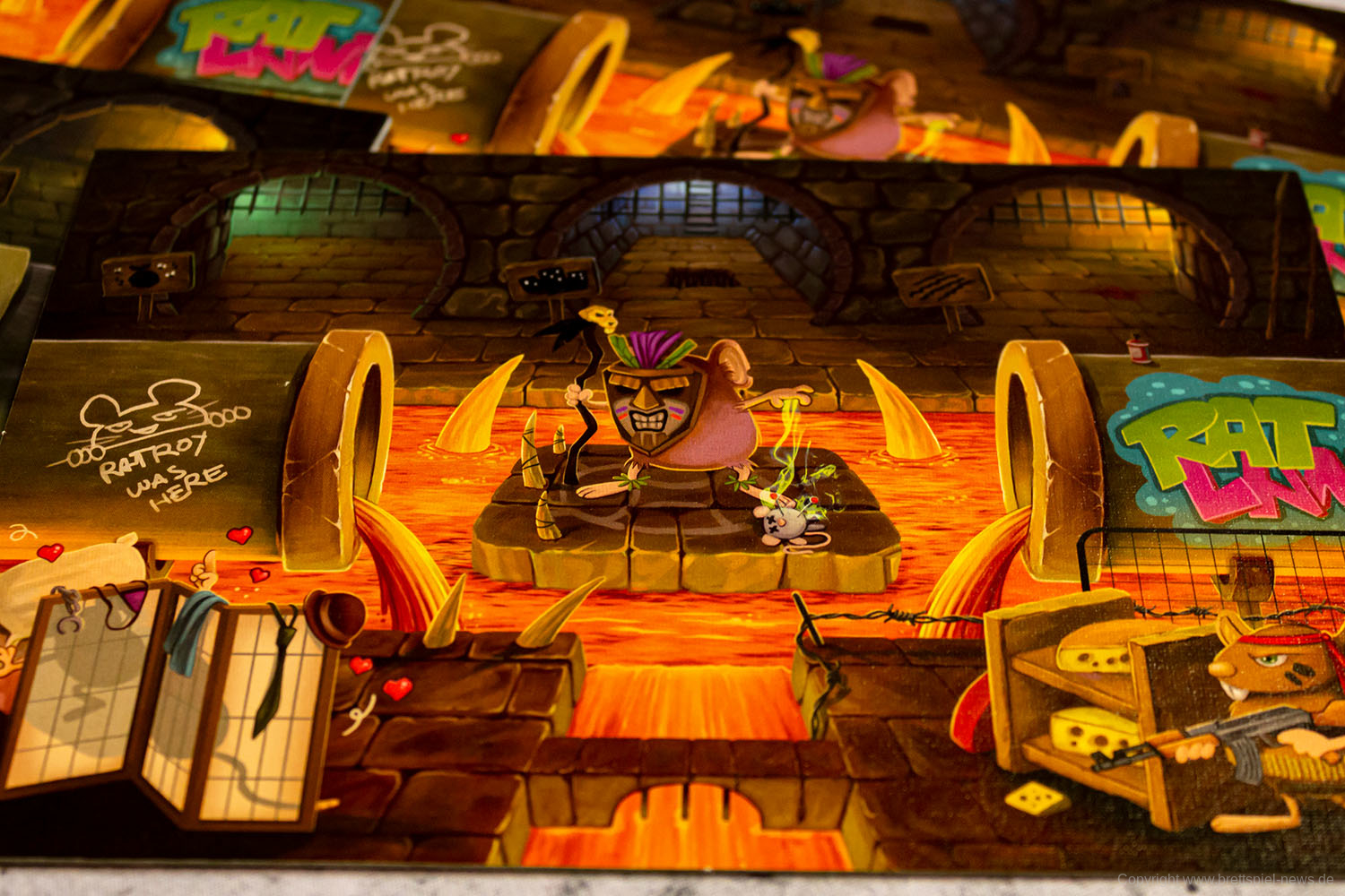 Der Überlebenskampf in der Kanalisation von RATLAND ist immer wieder spaßig und läuft fix ab. Da es im Kern nicht nur um die Organisation der eigenen Rattenfamilie, sondern auch um das Einschätzen der anderen Spieler geht, bleibt es immer unterhaltsam. Überfälle auf andere Spieler werden gerne von einem kleinen Fluch begleitet, wenn die Sichtschirme gehoben werden.