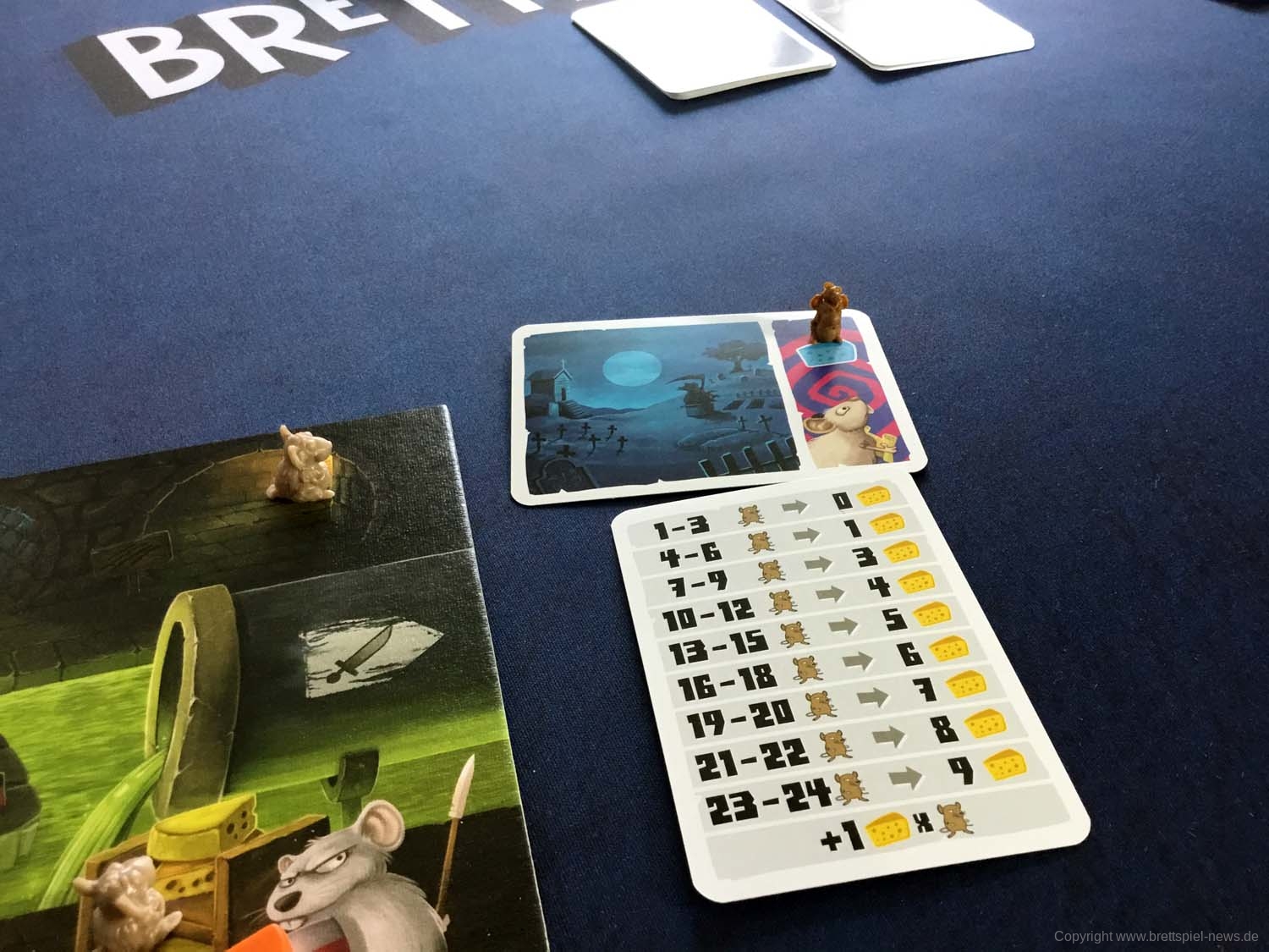 Die drei Nahrungsfelder mit den wechselnden Wahrscheinlichkeiten in der Nahrungszusammensetzung bietet jede Menge Platz für Glück und Pech. Wenige Ratten garantieren ein frühes Ziehen und gute Chancen auf Käse, viele Ratten ziehen erst später mit schlechteren Wahrscheinlichkeiten, aber eben auch viel mehr Käse.