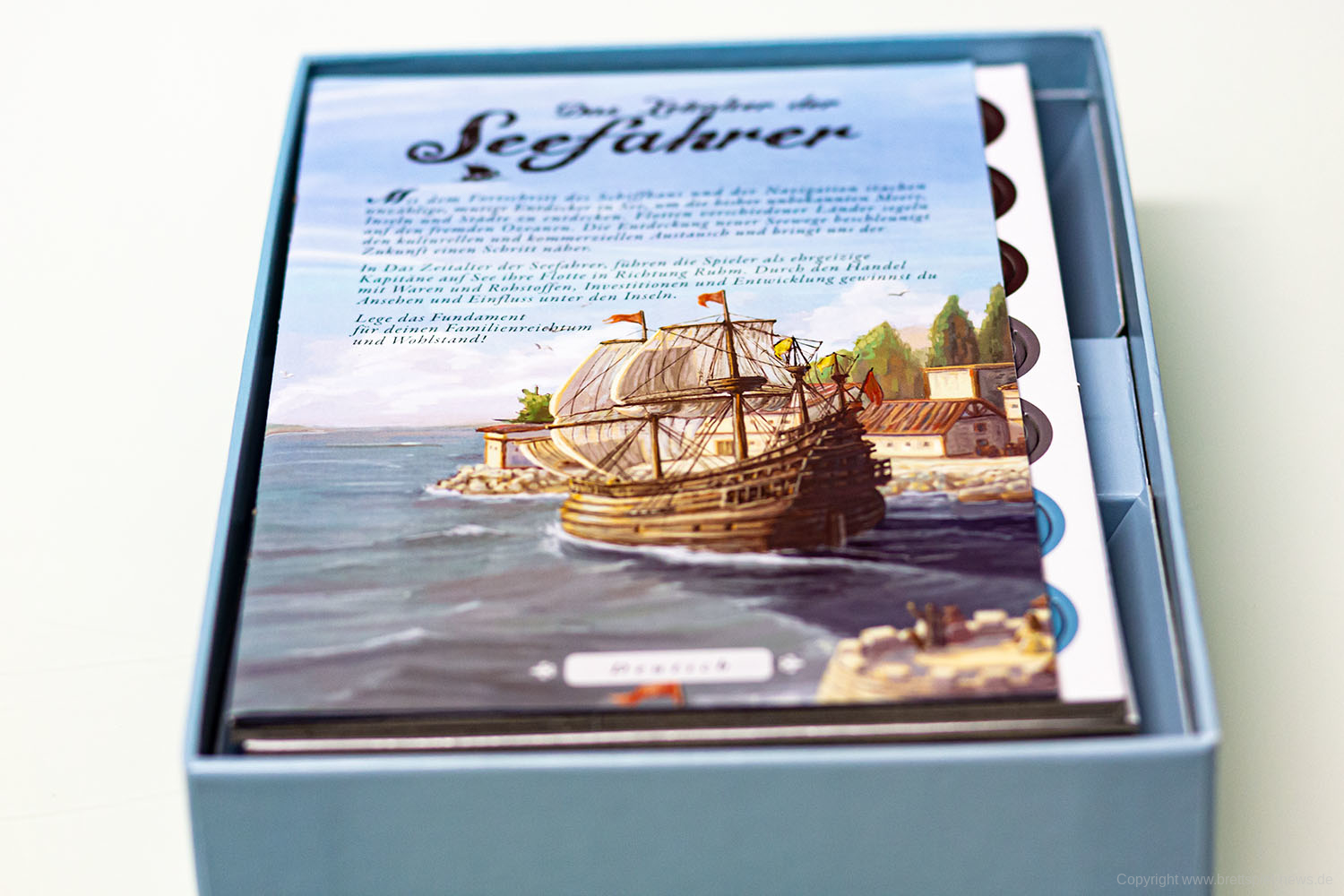 Ein großes Manko von DAS ZEITALTER DER SEEFAHRER ist zudem die mangelhaft korrekturgelesene Anleitung. Gerade bei einem in der Spieleschmiede geförderten Kartenspiel sollte man doch erwarten dürfen, dass die Bedingungen für das Spielende auch richtig angegeben werden. Ebenso hätte die Symbolik teilweise eindeutiger gestaltet und etwas umfassender erläutert werden können.