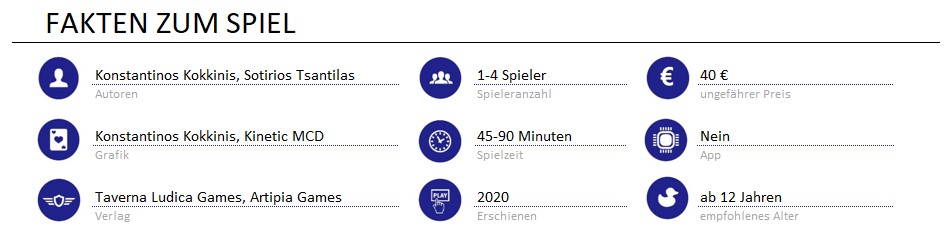 Das Spielbrett ist unverhältnismäßig groß im Vergleich zur Funktion, da es nur als Ablage für den Ressourcenpool, als Punktezähler und für die allgemeine Zukunft verwendet wird. Von tatsächlichem Nutzen ist hier nur die Zählleiste für die Schicksalspunkte. Ein wenig macht sich dadurch das Gefühl breit, dass es vor allem dazu dient, das Spiel insgesamt größer erscheinen zu lassen, als es ist. Gleiches kann auch über die Schachtel gesagt werden, die für den notwendigen Inhalt des Spielmaterials klar überdimensioniert erscheint.