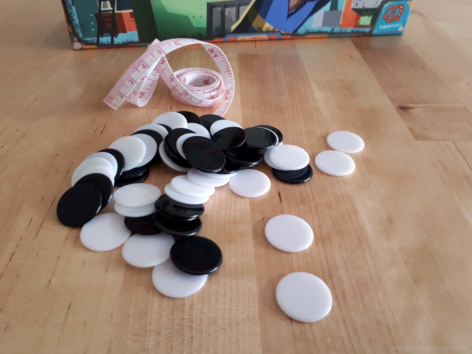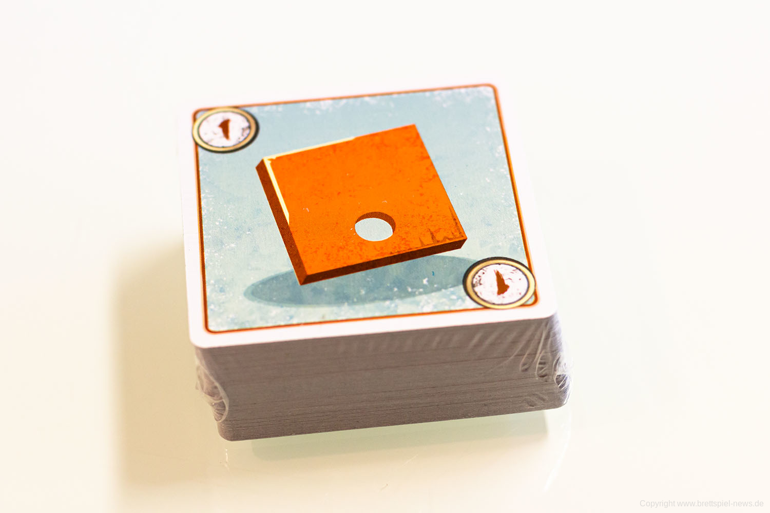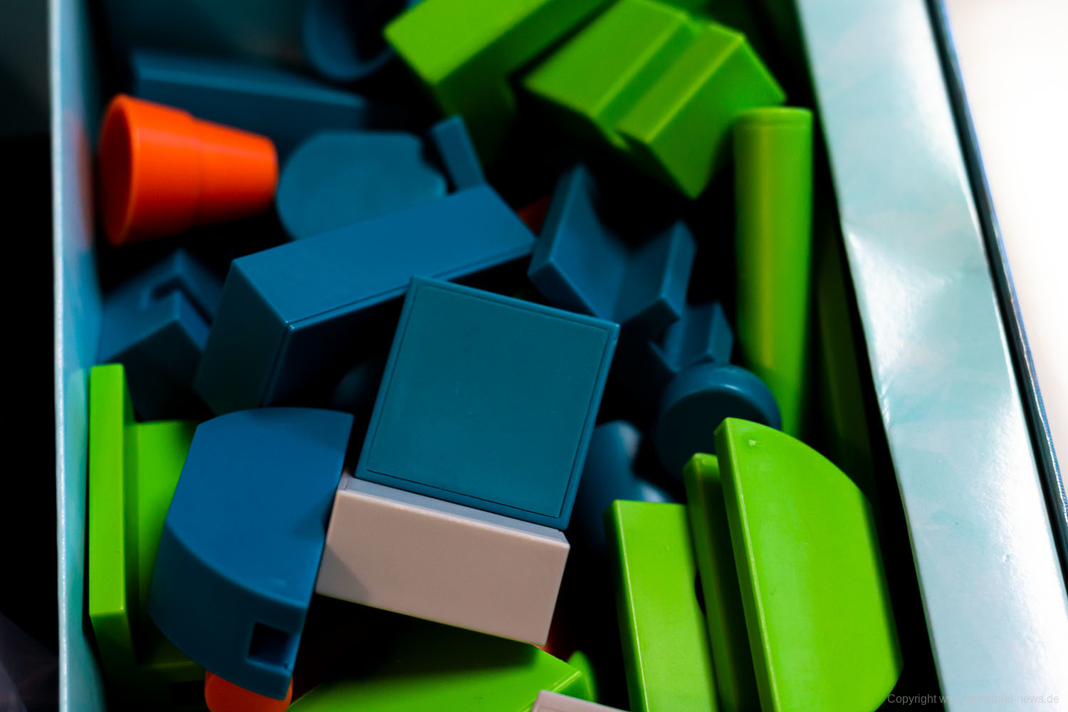 Das Herzstück sind die 15 verschiedenen Plastikteile. Hier haben sich die Autoren wirklich Gedanken gemacht, denn die Teile sind aufeinander abgestimmt und doch ist es eine Herausforderung, sie aufeinander zu stapeln. Es gibt wirklich überraschend viele Möglichkeiten, diese zufällig erscheinenden Teile miteinander zu kombinieren.