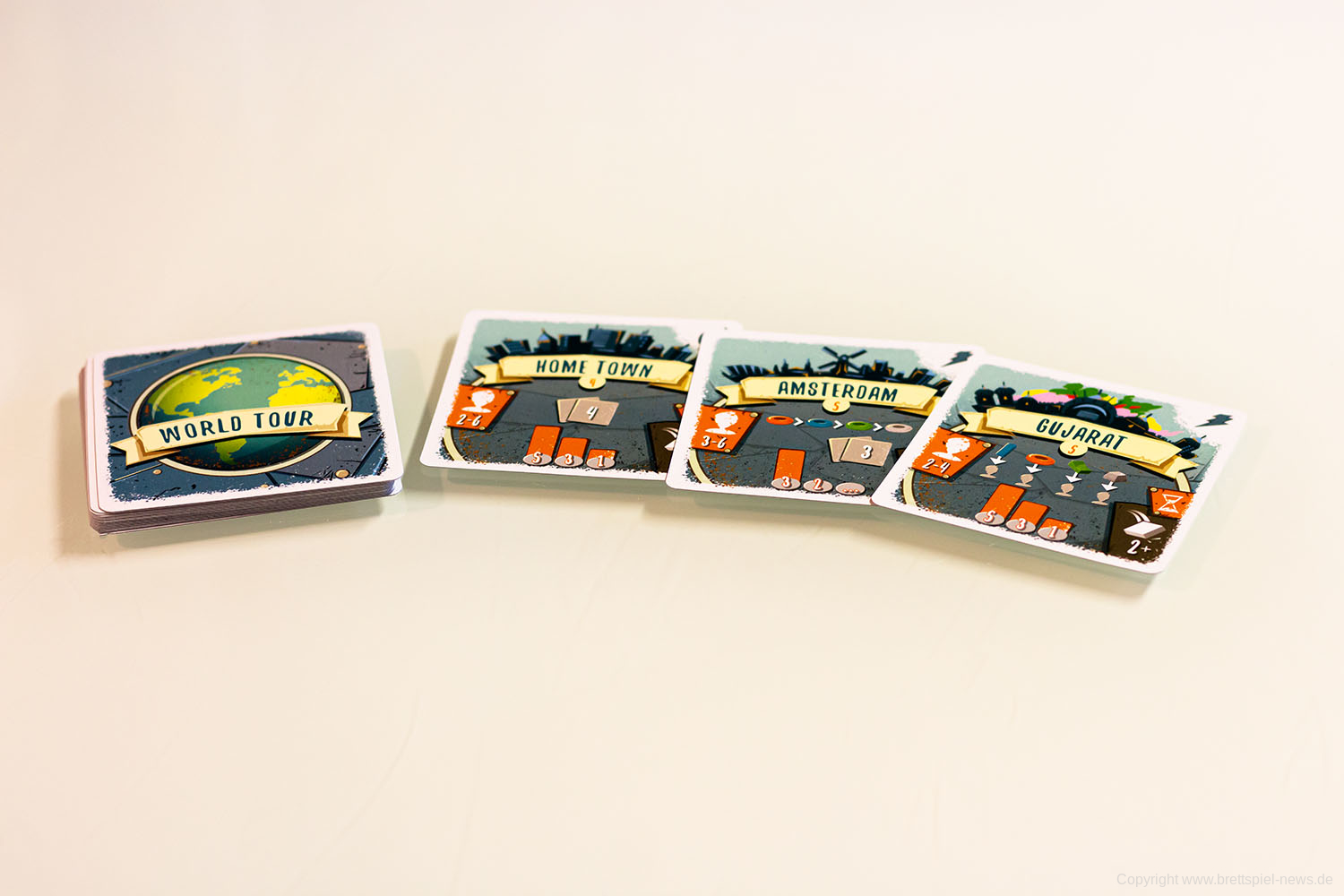 Der zweite Grund, warum JUNK ART mir besser als andere Geschicklichkeitsspiele gefällt, ist, dass JUNK ART einen immens hohen Wiederspielreiz hat. Wiederspielreiz ist, meiner Erfahrung nach, etwas, das besonders in Party- und Geschicklichkeitsspielen oft schwierig zu erreichen ist. Das ist bei JUNK ART nicht so. Durch die wirklich sehr abwechslungsreichen Städte, die man zufällig oder nach eigenem Geschmack zusammenstellen kann, wird hier immer ein neues Spiel geschaffen. (Da natürlich auch keine Skulptur wie die andere ist, ist sowieso kein Spiel wie das andere.) Eigentlich schlägt die Regel vor, dass man 3 Städte pro Partie besucht. Wir haben schon eine „ultimative Welttournee“ gespielt und alle Städte hintereinanderweg gespielt.