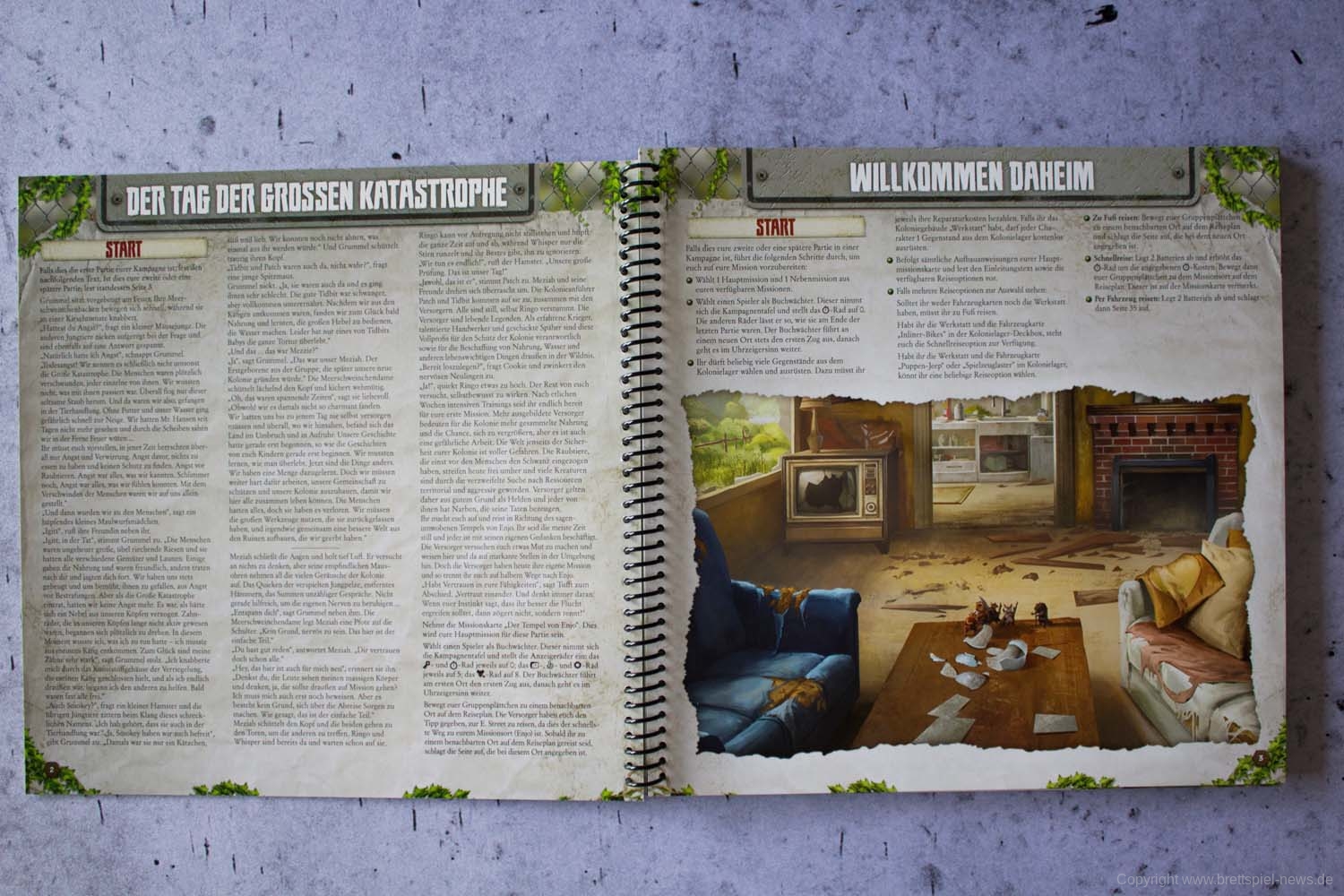 AFTERMATH – NACH DEM UNTERGANG ist ein weiteres Spiel mit Abenteuerbuch. Autor Jerry Hawthorne hat bereits mit MAUS & MYSTIK ein ganz besonderes Spiel geschaffen und mit HERR DER TRÄUME hatte er die Chance, sein erzählerisches Talent in einem dicken Abenteuerbuch noch weiter ausleben zu können. Mit AFTERMATH werden nun tapfere Mäuse und Abenteuerbuch vereint in einem Spiel, das durch seine kooperative Ausrichtung trotz eher düsterem Thema dennoch Familien an den Tisch bringen kann, ohne erfahrene Spieler dabei zu sehr zu unterfordern oder gar zu langweilen.