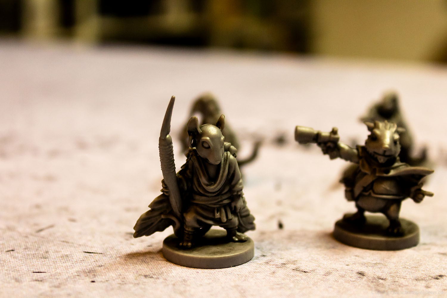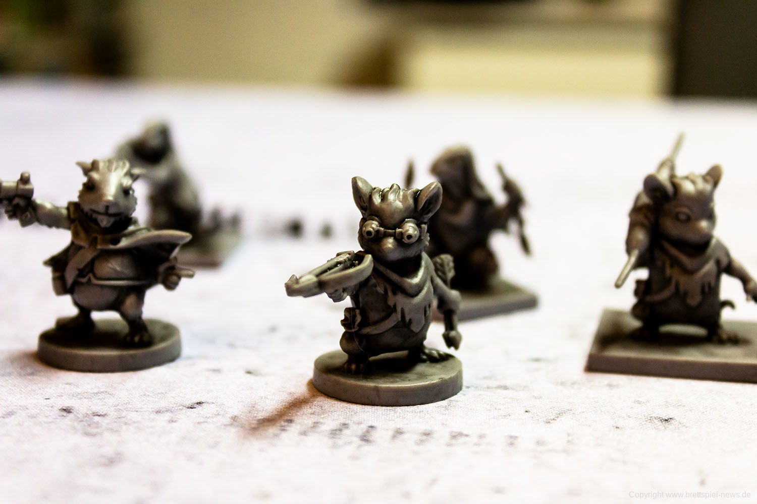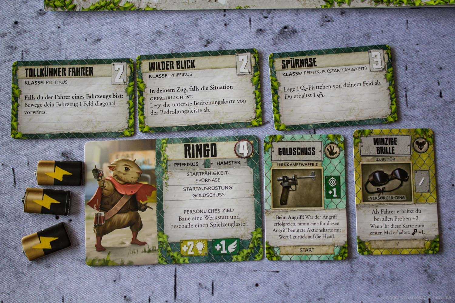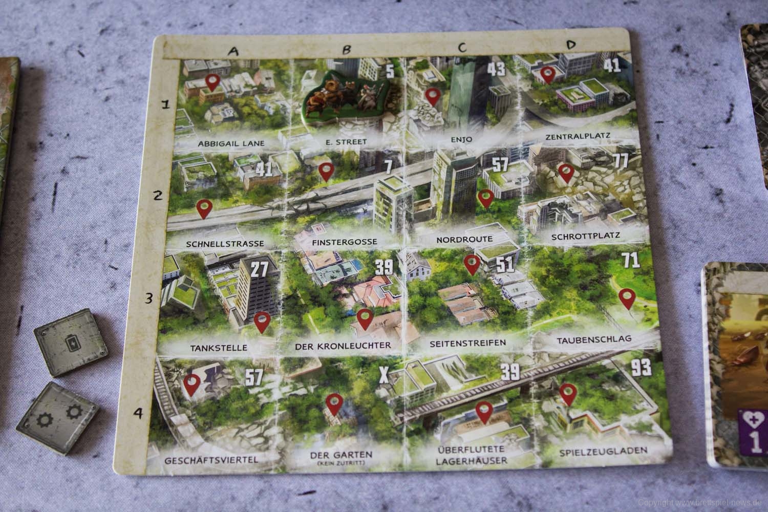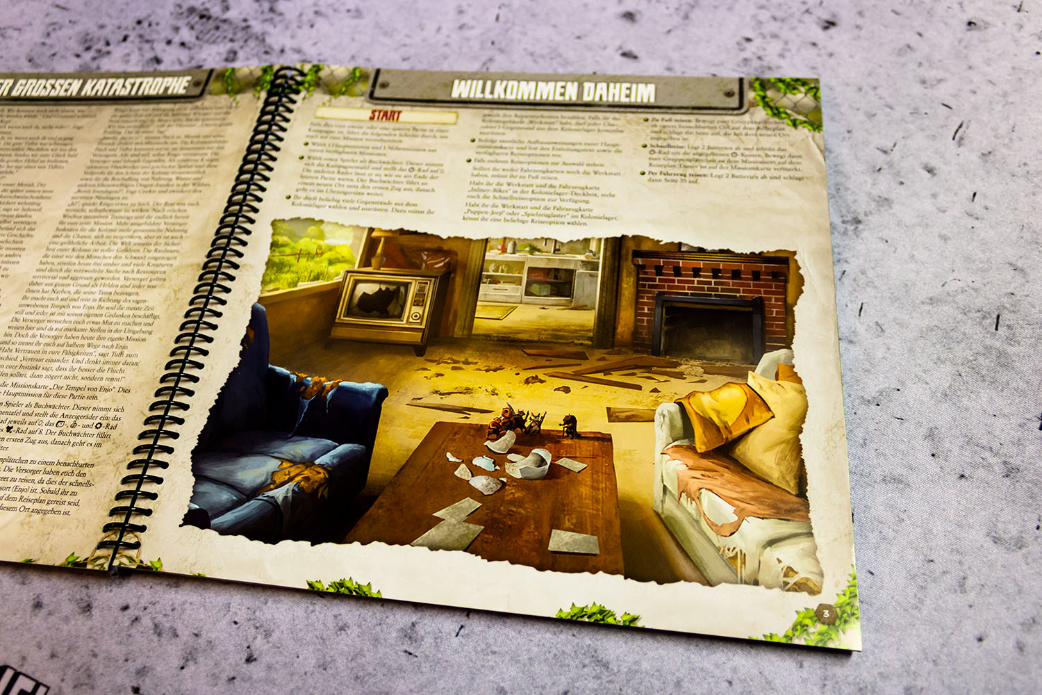 MAUS & MYSTIK habe ich seit Ewigkeiten auf dem Pile of Shame. Wegen des tollen Designs habe ich mir aber weiterhin vorgenommen, es irgendwann zu spielen. Was die Abenteuerspiele von PLAID HAT GAMES anbetrifft, darf ich mich aber durchaus als Veteran rühmen. Ich habe HERR DER TRÄUME gespielt und fand die Idee und Mechaniken interessant, obgleich mir die Anforderungen dann doch deutlich zu seicht waren. KOMANAUTEN hat das Konzept erweitert und auf eine reifere Zielgruppe zugeschnitten. Gefallen hat mir dabei allerdings überhaupt nicht, dass das Spiel im Grunde keine zusammenhängende Geschichte erzählt, sondern am Ende einfach nur eine zufällige Aneinanderreihung von Missionen bot. Umso gespannter war ich auf AFTERMATH, das die wunderschöne MAUS & MYSTHIK Optik in eine postnuklear wirkende Welt steckte, den Spirit von HERR DER TRÄUME einfing und die erwachsene Spieltiefe von KOMANAUTEN versprach.