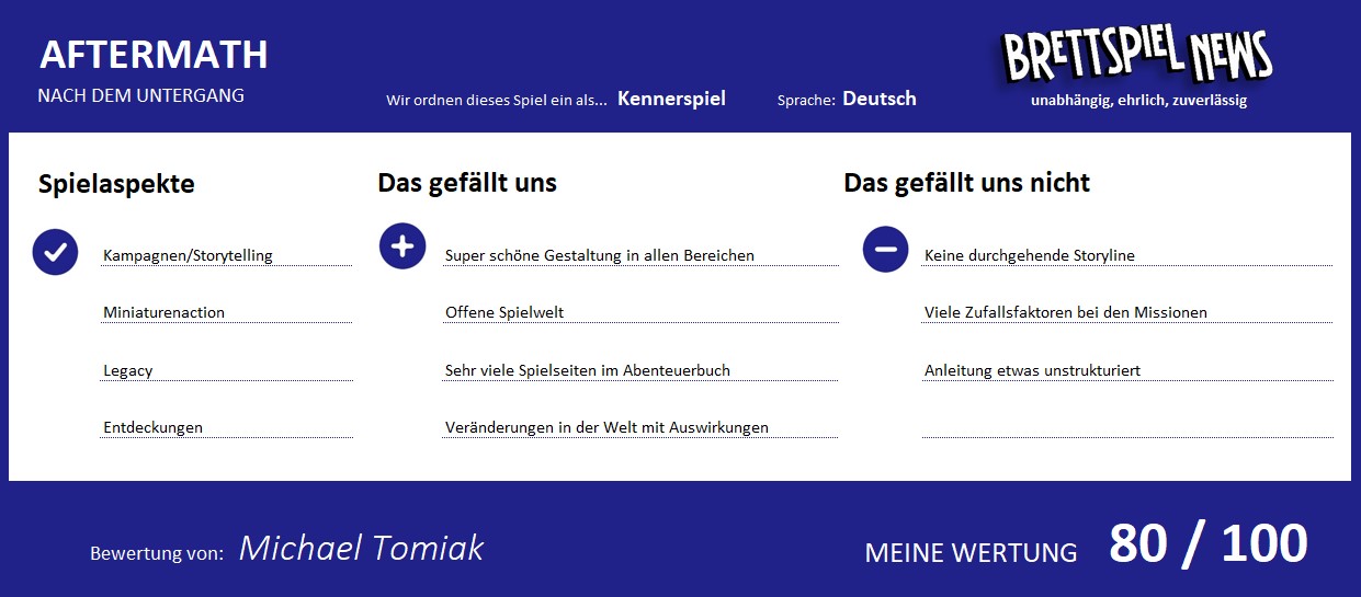 TEST // AFTERMATH – NACH DEM UNTERGANG - Fazit + Wertung + Bilder vom Spiel