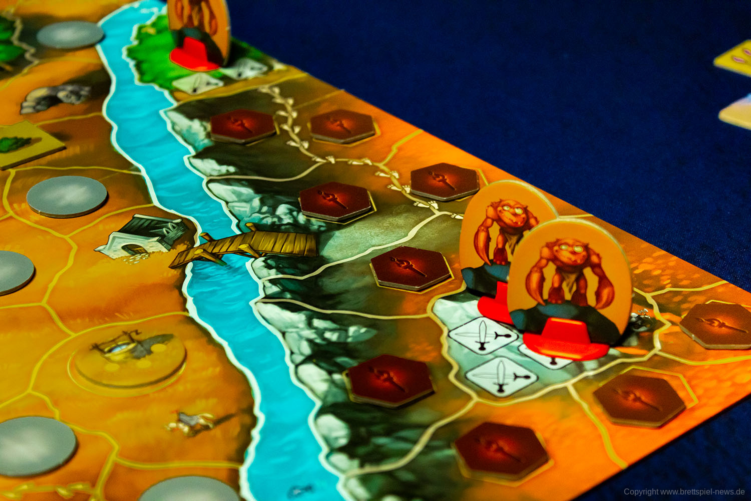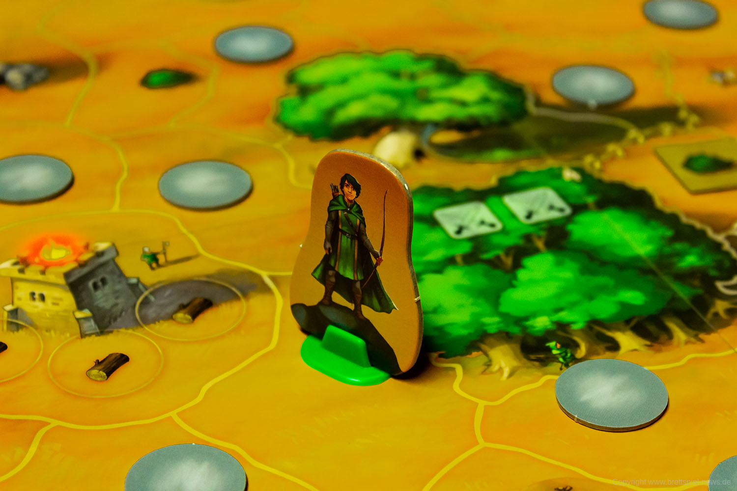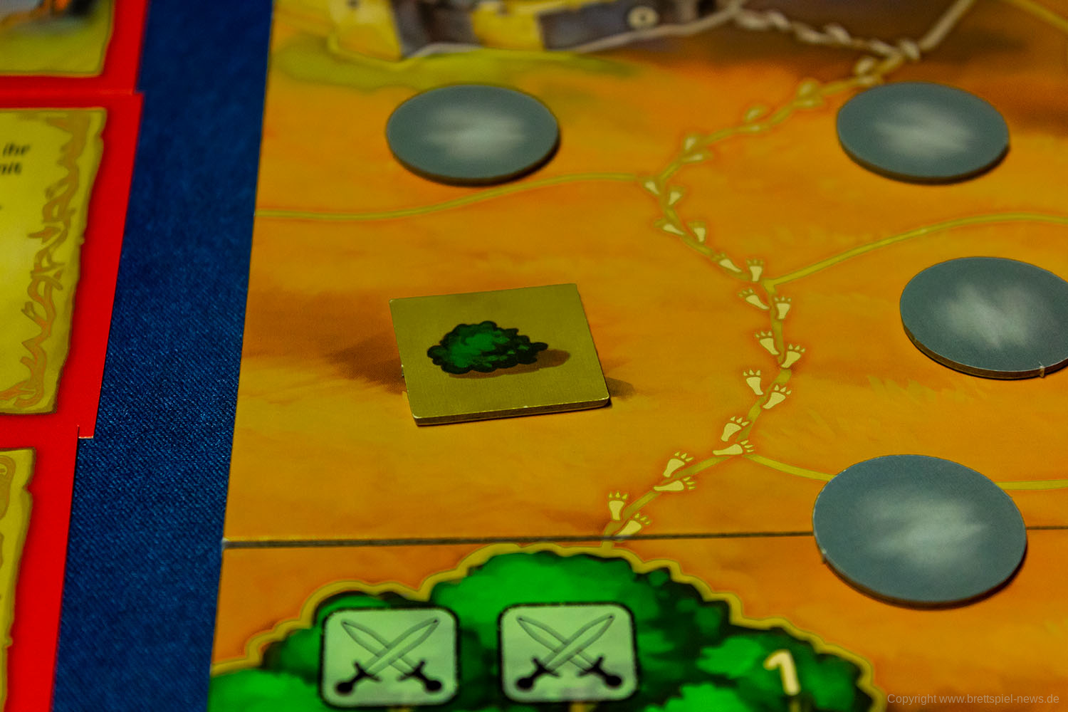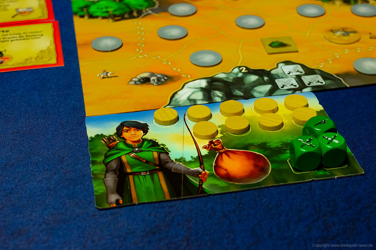 - Zwergen-Aktion // Nur der Zwerg darf die auf dem Plan aufgedruckten Mineneingänge nutzen, um die Strecke deutlich zu verkürzen.