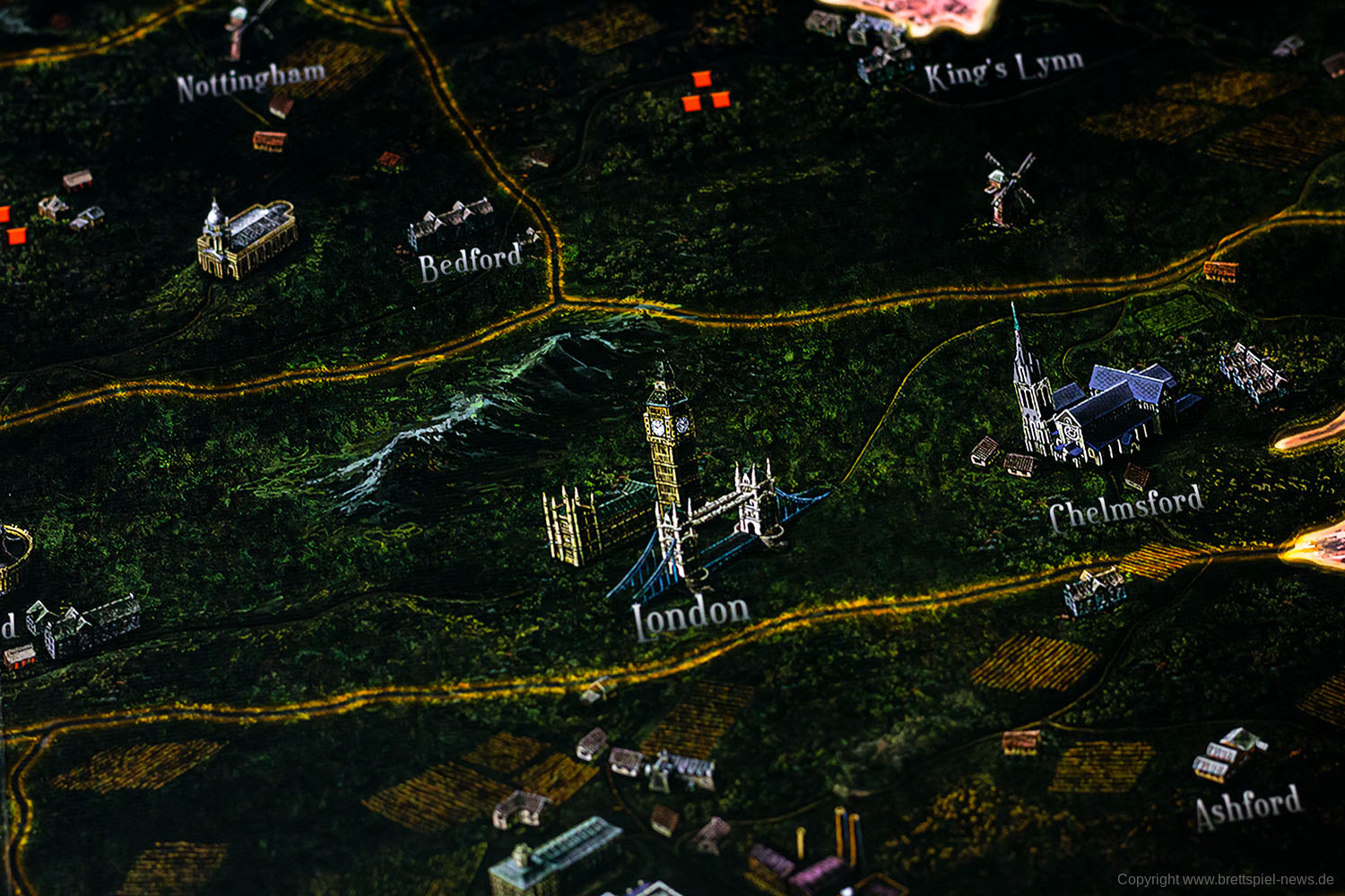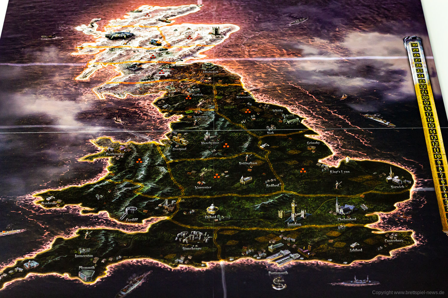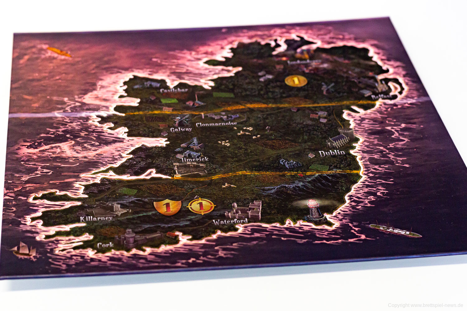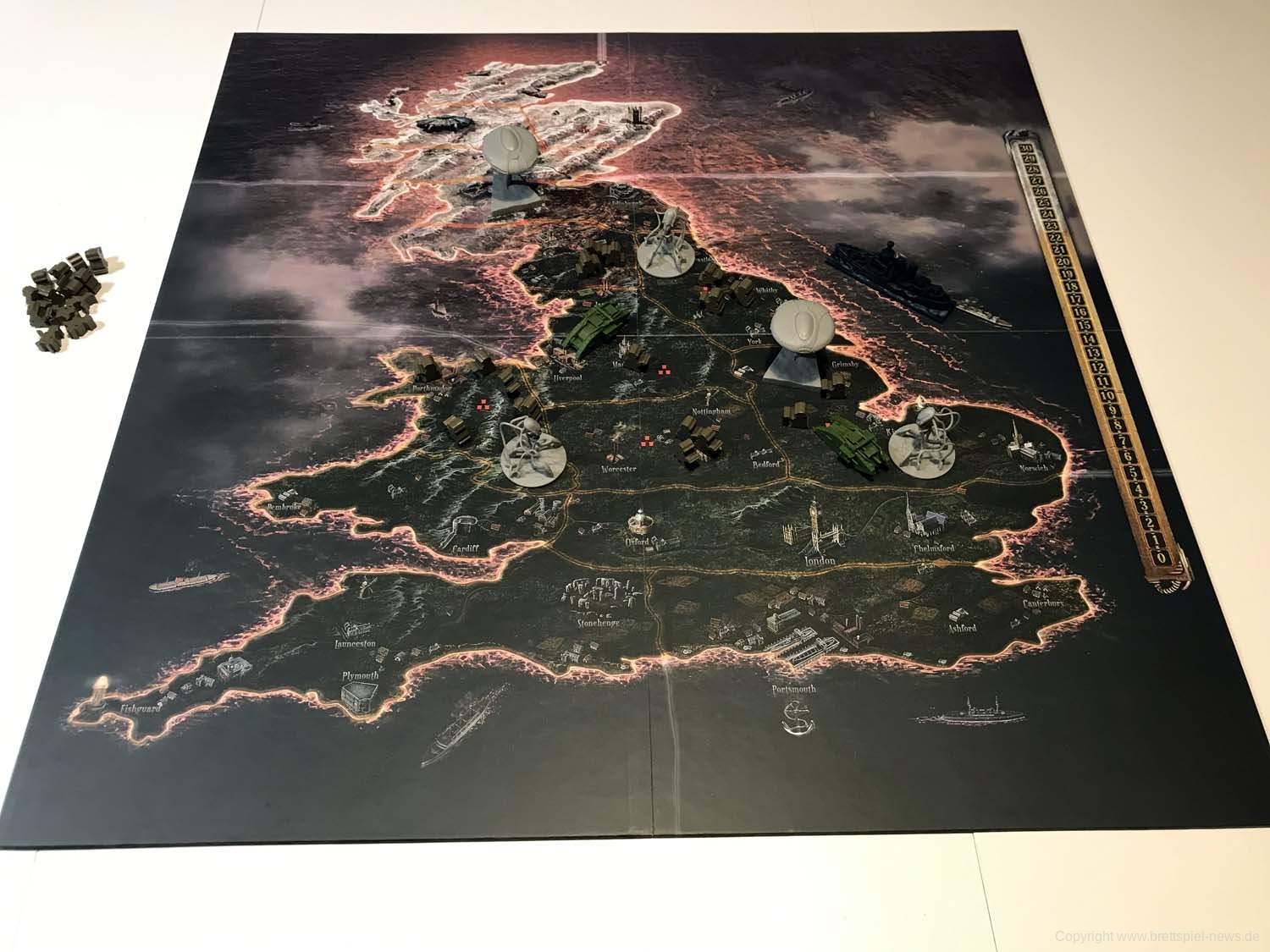 Dieses Muster wird durch die Erweiterung zumindest ein wenig aufgebrochen, da die Menschen nunmehr die Möglichkeit haben, die UFOs der Aliens anzugreifen. Das halten wir zugleich auch für den besten Aspekt der Erweiterung. Das genügt alleine jedoch nicht, um ein „Gamechanger“ zu sein. Der zusätzliche Irland-Spielplan war für uns leider uninteressant und konnte aus unserer Sicht keinen Mehrwert beitragen. Dafür hätte es etwas mehr sein müssen als nur drei neue Gebiete auf der anderen Seite des Gewässers.