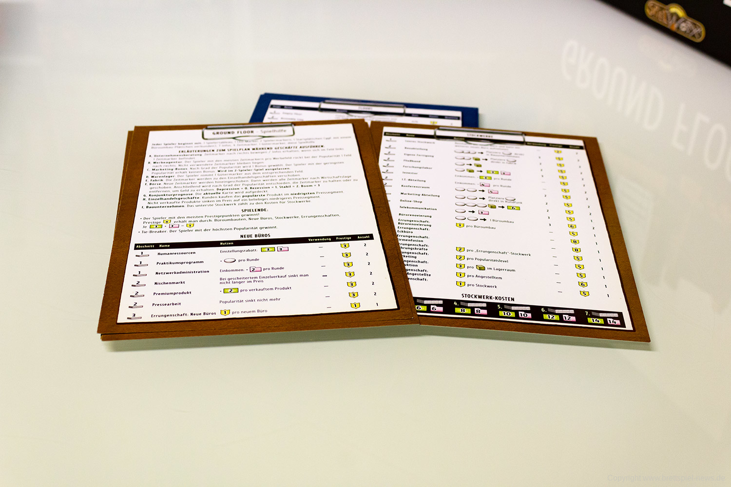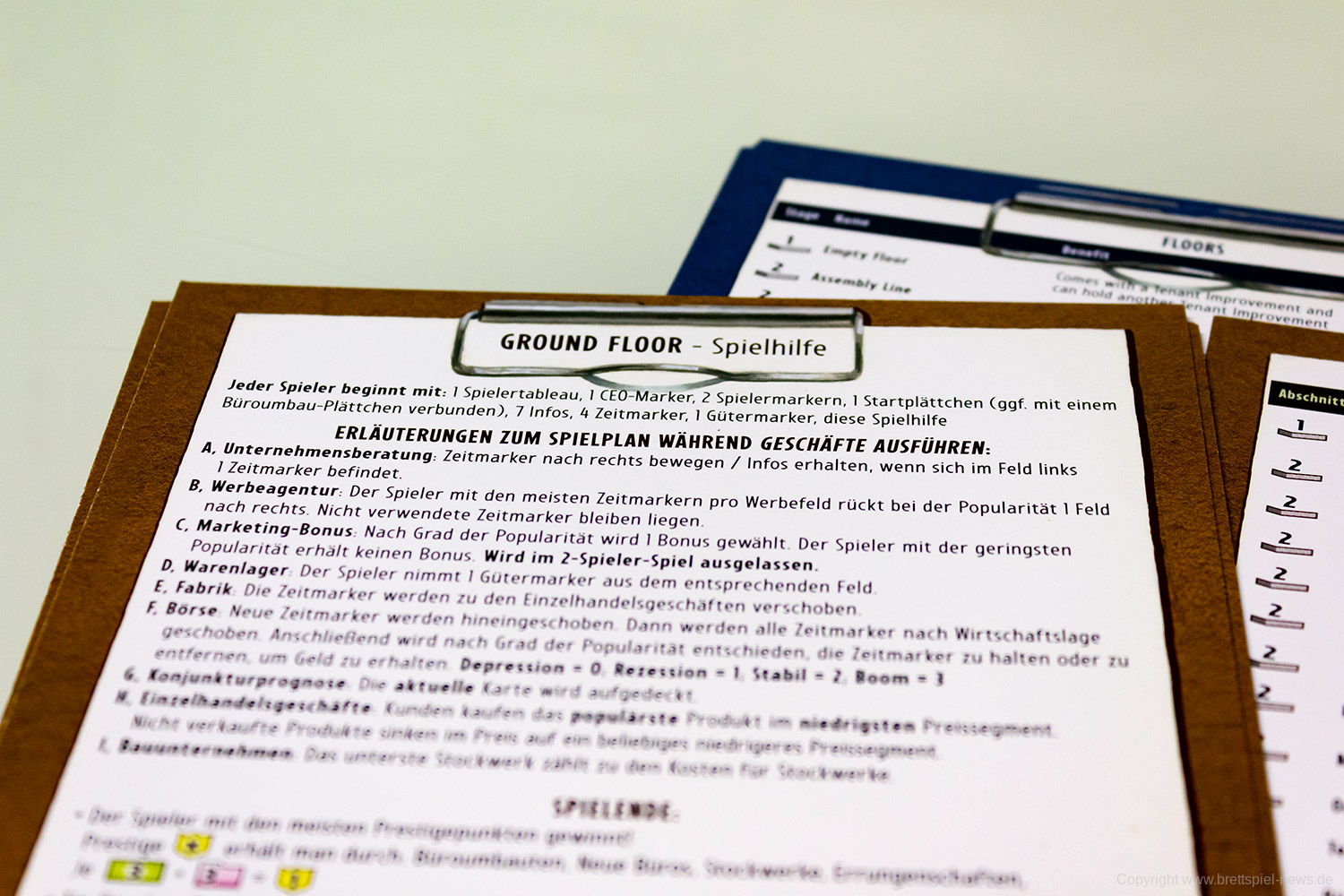 GROUND FLOOR ist als anspruchsvolles Kennerspiel mit großer Spieltiefe einzustufen, dennoch sind die Regeln nicht kompliziert. Das Spiel zu zweit funktioniert gut, aber der volle Spielspaß kommt mit mehr Spielern auf, da hier deutlich mehr Interaktion stattfindet. Da keine Aktionen parallel stattfinden, ist dann aber auch eine Spielzeit von zwei Stunden und mehr einzuplanen. Der Einsatz mehrerer Automa-CEOs ermöglicht nicht nur beim Solo-Spiel viel Flexibilität.