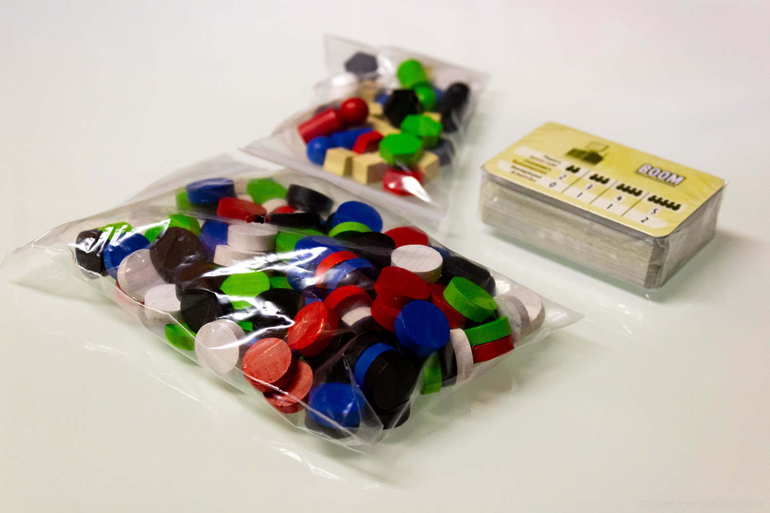Die Informationsplättchen nutzen leider exakt die gleichen Farben wie das Geld und sind zu allem Überfluss auch noch in einer nicht genutzten weiteren Farbe in der Anleitung dargestellt. Dies führt anfangs zu Verwirrung.