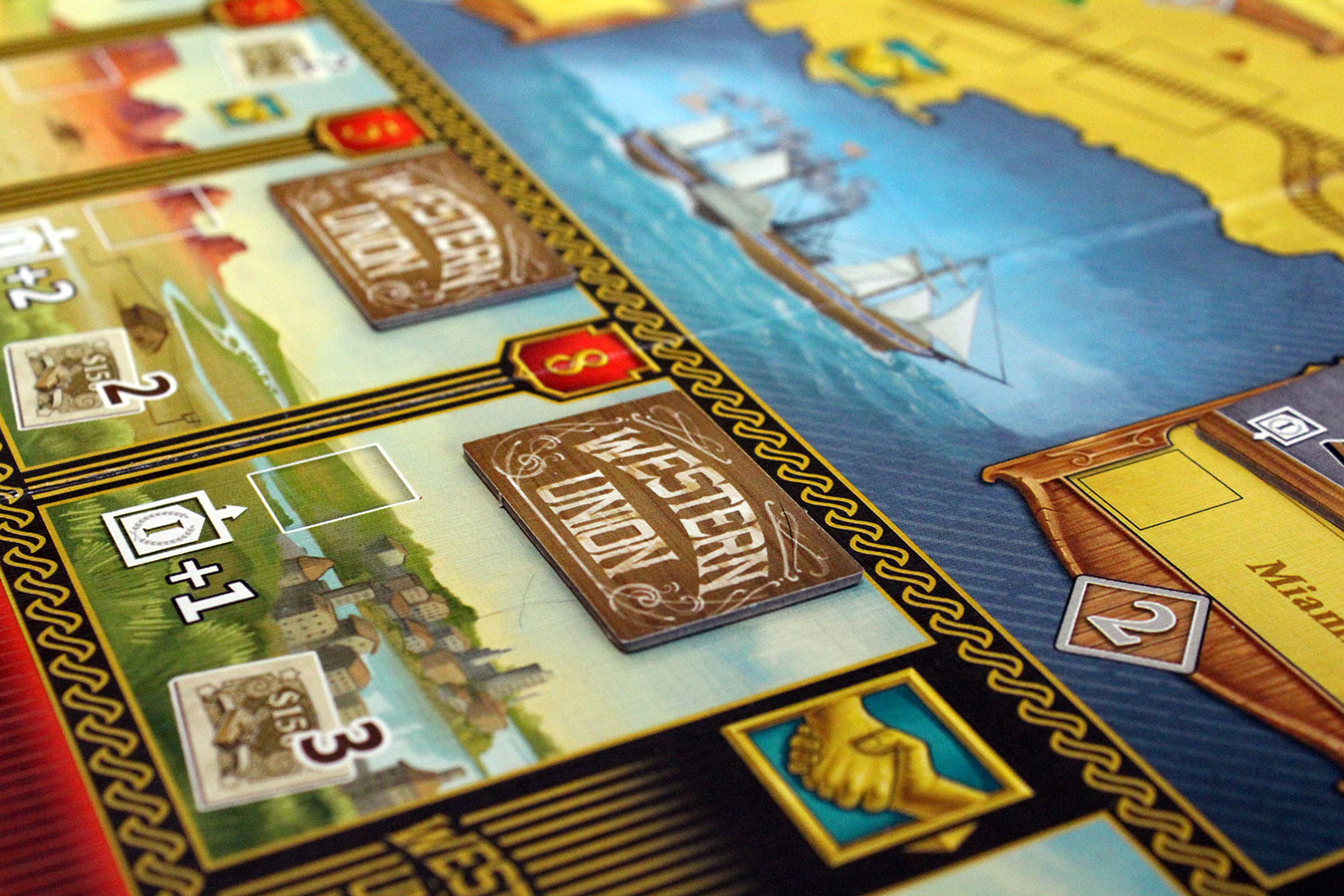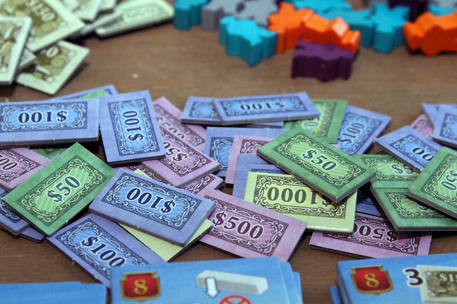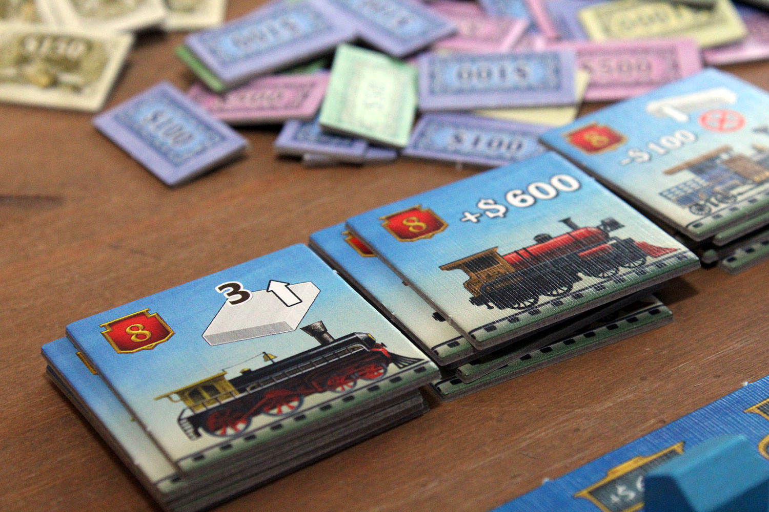 Die verwendeten Mechaniken greifen gut ineinander und wissen zu gefallen, wie zum Beispiel die zweiseitige Verwendung von Aktien. Sie werden gebraucht, um bei der Handelsphase für Sonderaktionen zu bezahlen, können aber während des Spiels jederzeit gegen $150 verkauft werden, falls das Geld mal wieder knapp wird.