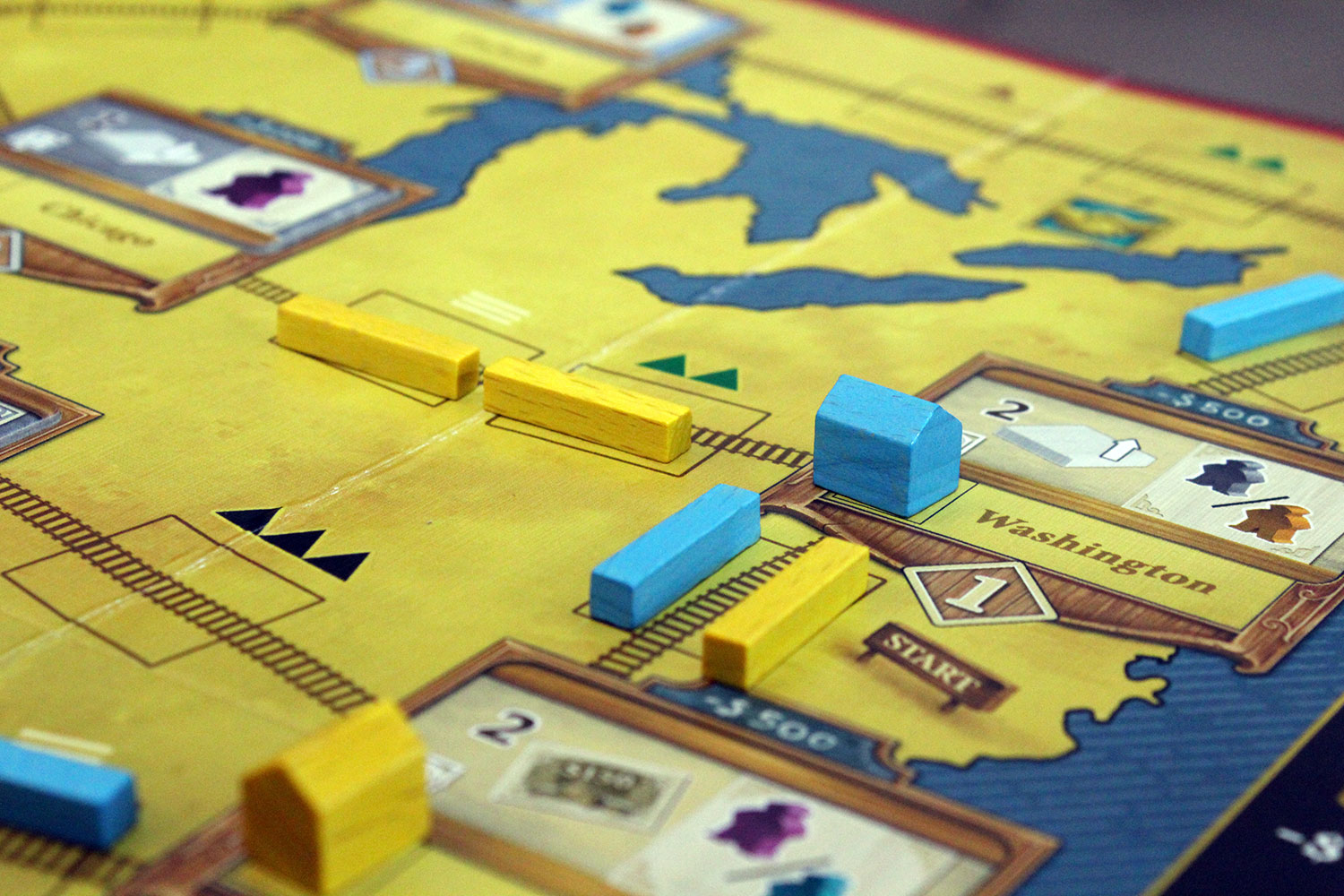 Die Spieler starten mit einer Schiene an der Ostküste des Spielplans, der die USA zeigt. Außerdem starten die Spieler mit vier schwachen Arbeitern sowie einem individuellen Startplättchen, das spezialisierte Arbeiter, weitere Schienenabschnitte, erste Bahnhöfe, etc. vorgibt.