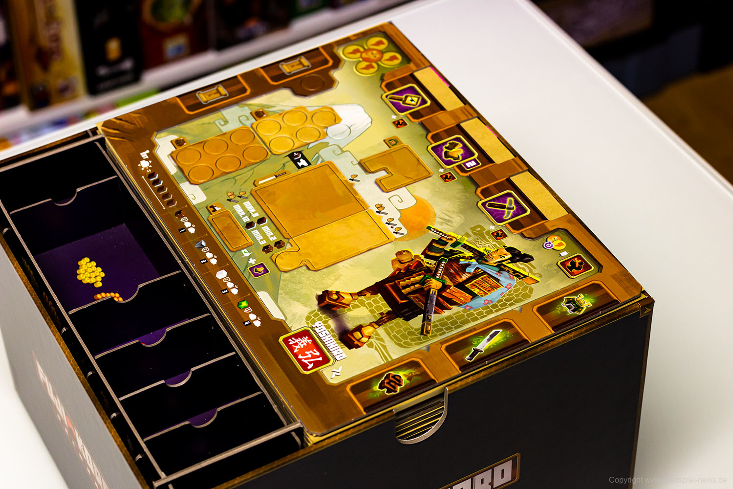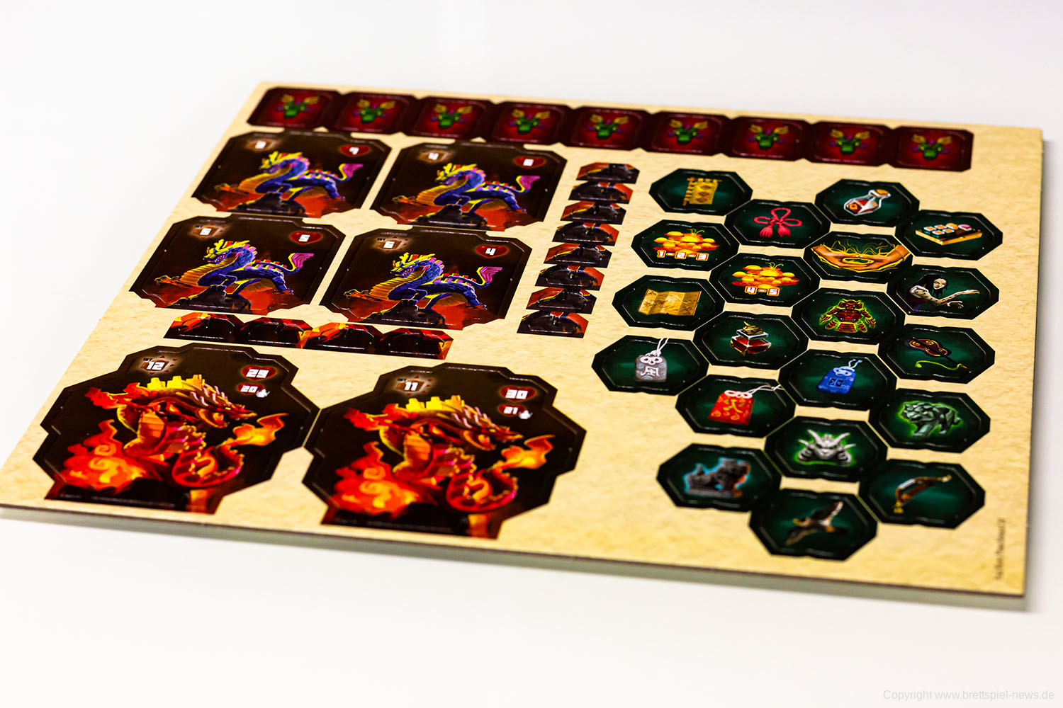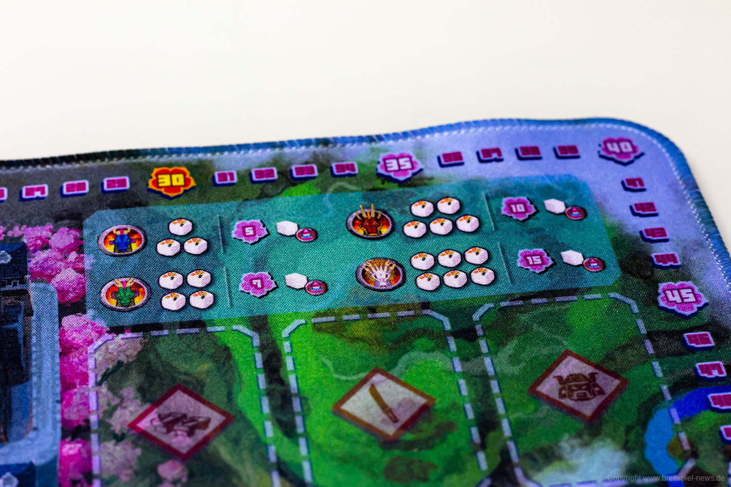 FUJI KORO DELUXE ist derart überproduziert, dass es eine wahre Freude ist. Zwischen der Standard- und der Deluxe-Version liegen einfach Welten. In Sachen Spielmaterial ist das Spiel über alle Zweifel erhaben. Beziehungsweise wäre es, wenn es nicht diesen einen ärgerlichen Fehler auf einem der Charaktertableaus gäbe.
