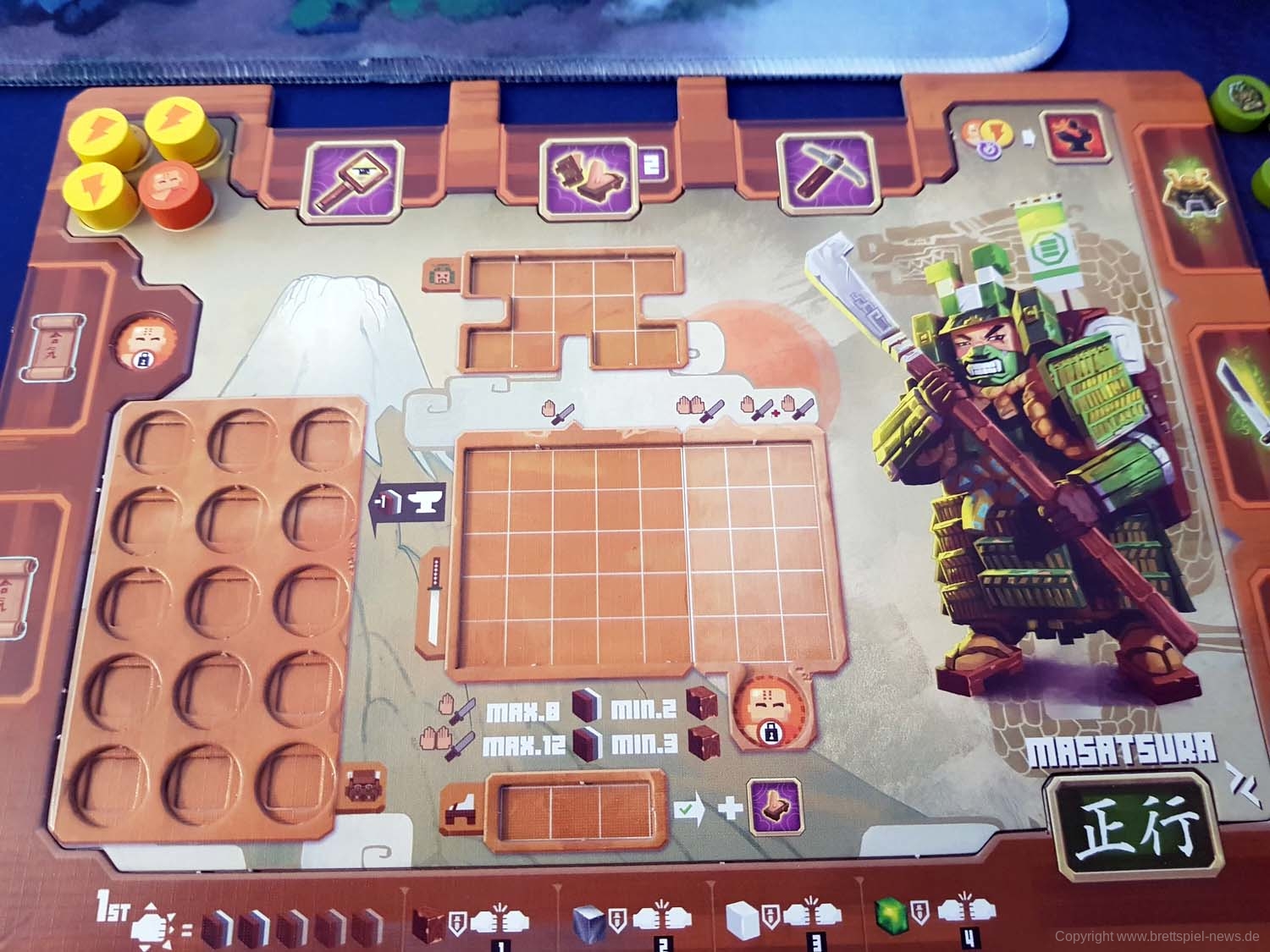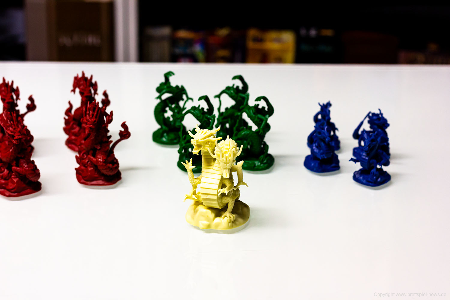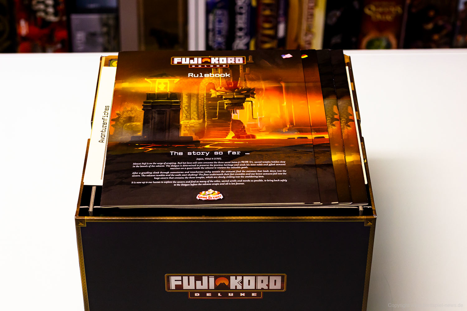 FUJI KORO DELUXE ist derart überproduziert, dass es eine wahre Freude ist. Zwischen der Standard- und der Deluxe-Version liegen einfach Welten. In Sachen Spielmaterial ist das Spiel über alle Zweifel erhaben. Beziehungsweise wäre es, wenn es nicht diesen einen ärgerlichen Fehler auf einem der Charaktertableaus gäbe.