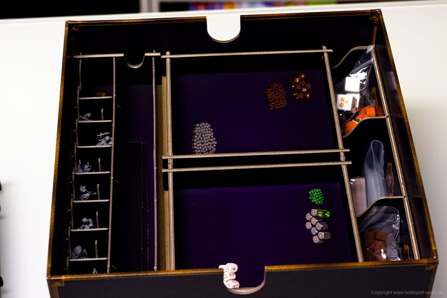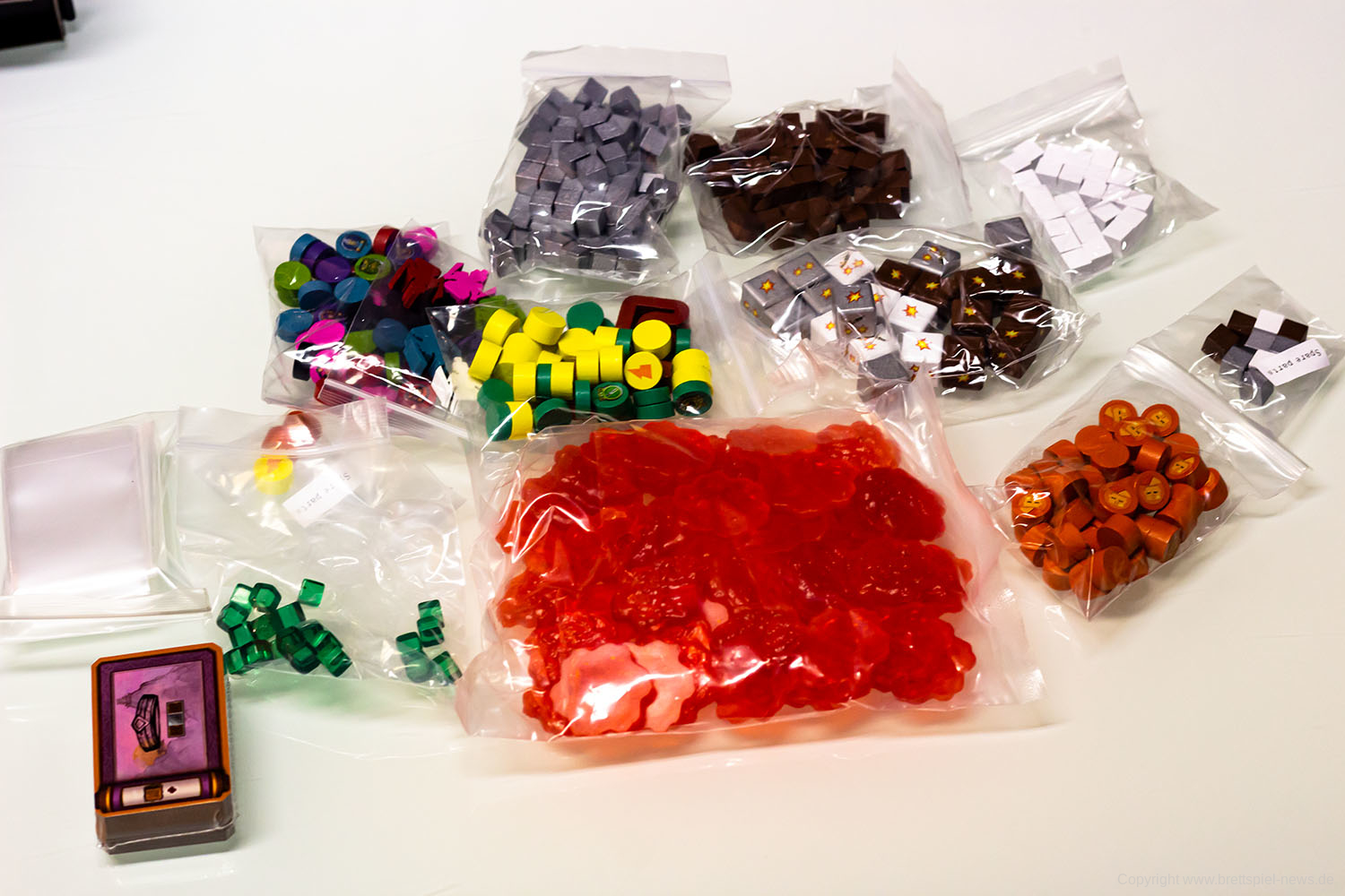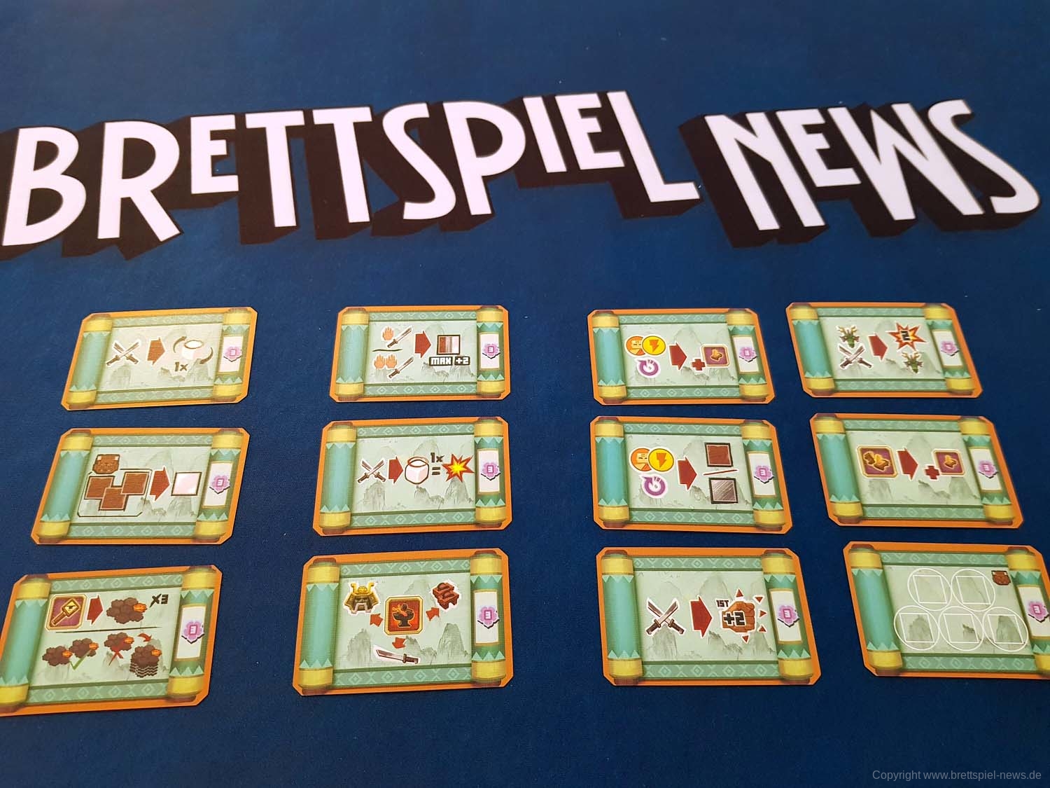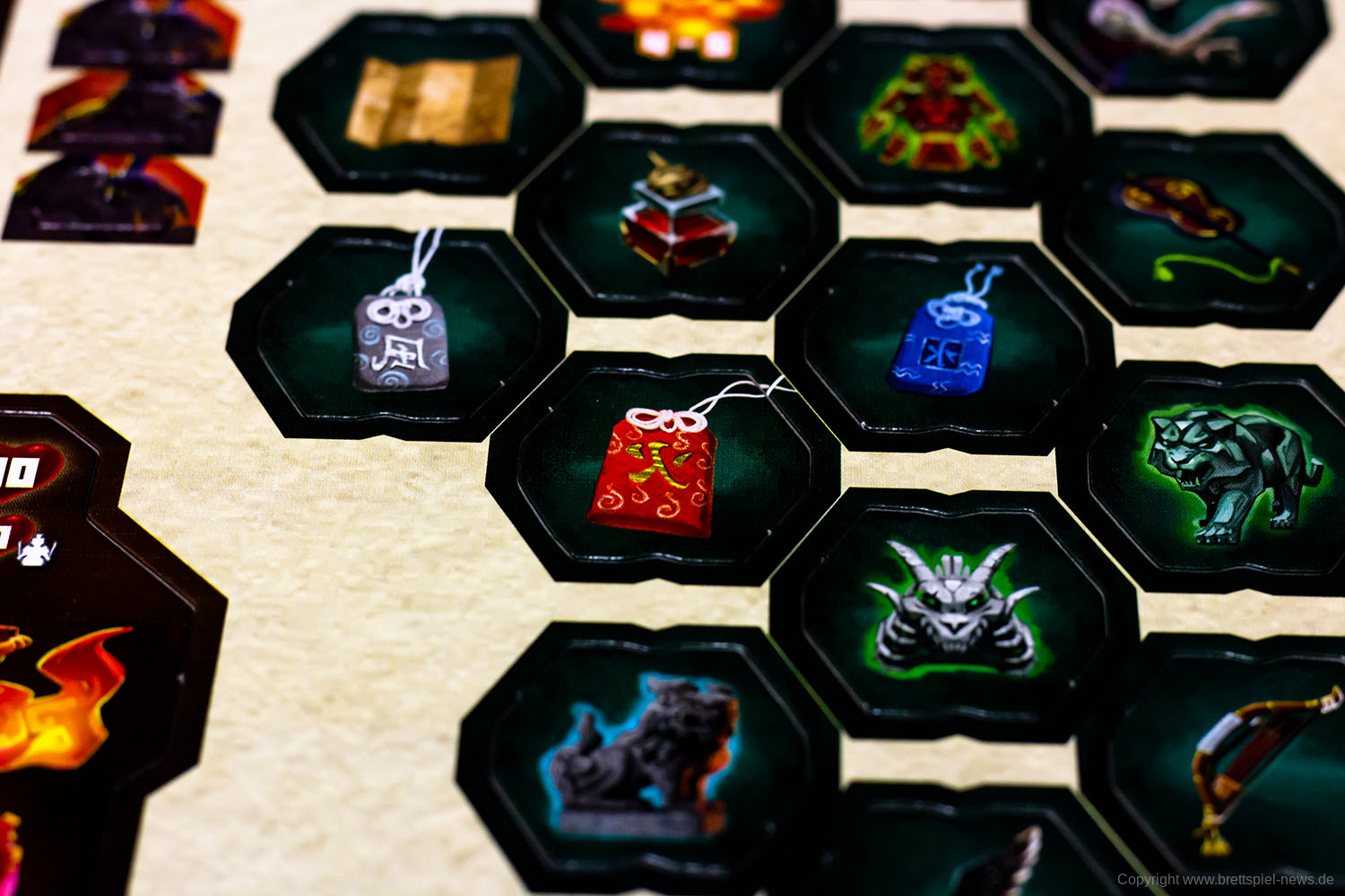 Das Spiel an sich polarisiert etwas. Generell bin ich kein großer Freund von Eurogames, aber die in FUJI KORO DELUXE verwendeten Euro-Mechanismen funktionieren ziemlich gut. Diese in ein Dungeon-Crawler-Gewand zu stecken, ist ein interessantes Konzept, das nicht immer aufgehen muss (wie etwa SANCTUM gezeigt hat). Aber das Sammeln von Ressourcen fühlt sich organisch an, das Puzzle-Element beim Zusammenbau der Ausrüstung ist clever und hat in den Testspielen für viel Begeisterung gesorgt.