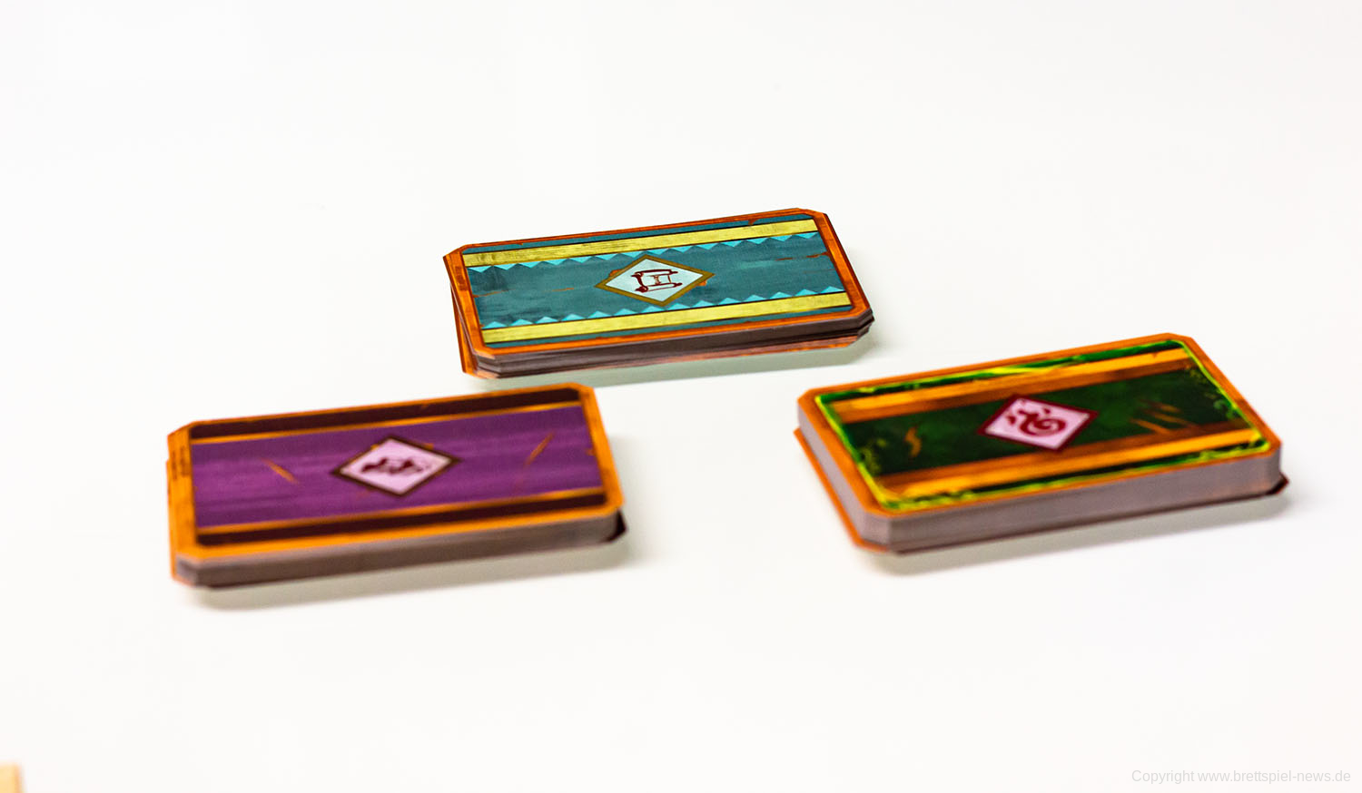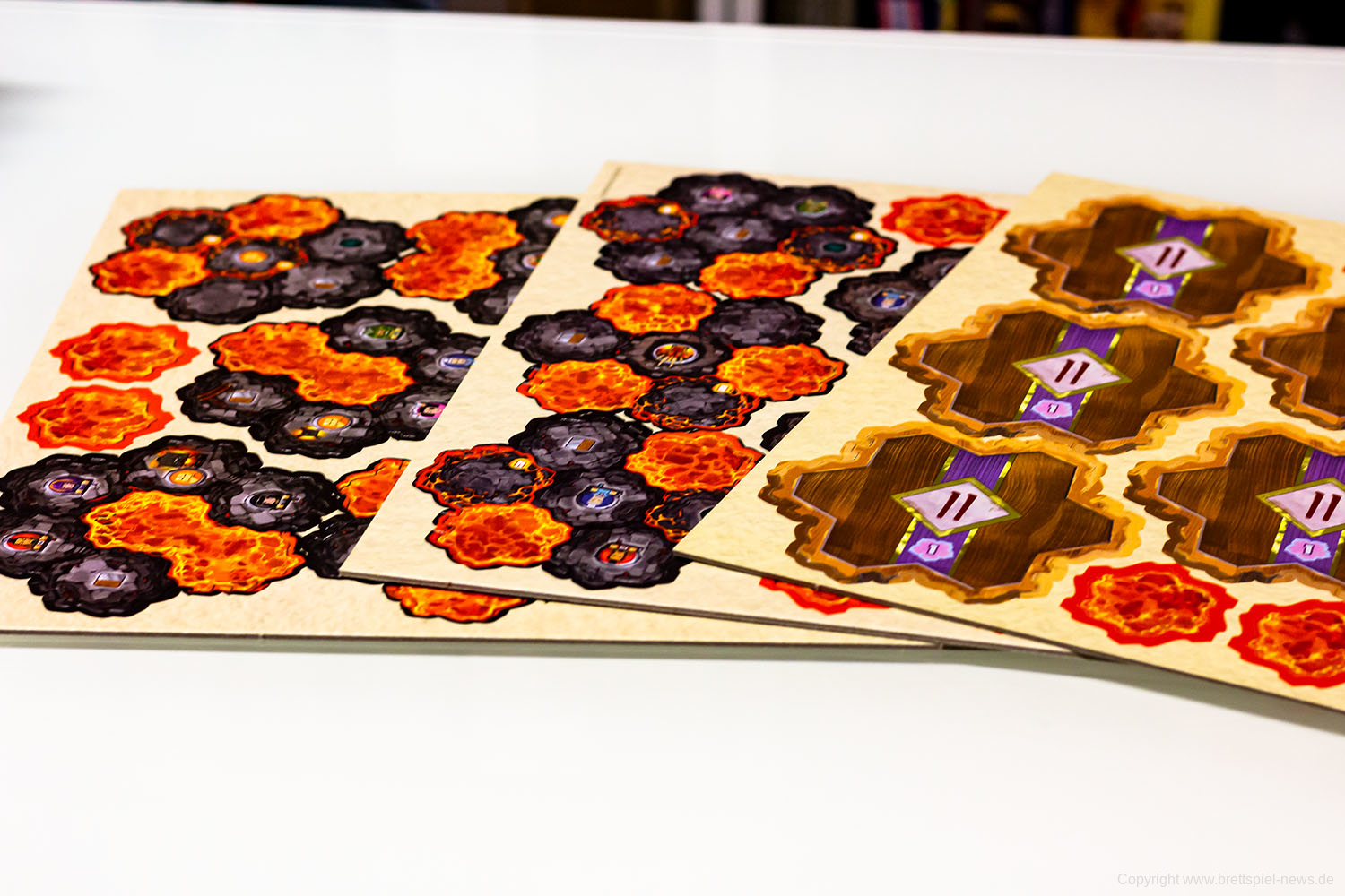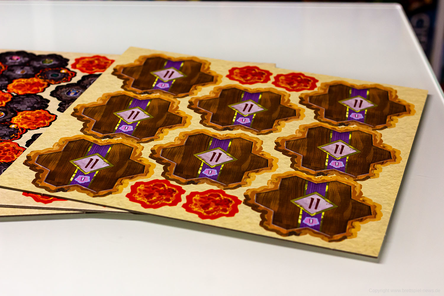 Etwas weniger Euphorie ist leider beim Aufdecken der Gebietsplättchen aufgetreten: Sie sind relativ unausgeglichen. Beispielsweise gleich zweimal hintereinander auf einem Gebiet ohne brauchbare Ressourcen zu landen, fühlt sich einfach mies an und schafft das Gefühl, direkt hinterherzuhinken. Hier wäre eine ausgewogenere Balance wünschenswert gewesen.