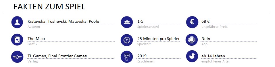 Tags: Solospiel, 1-5 Spieler, Press Your Luck, Roman-Vorlage, Ressoucenmanagement, Workerplacement