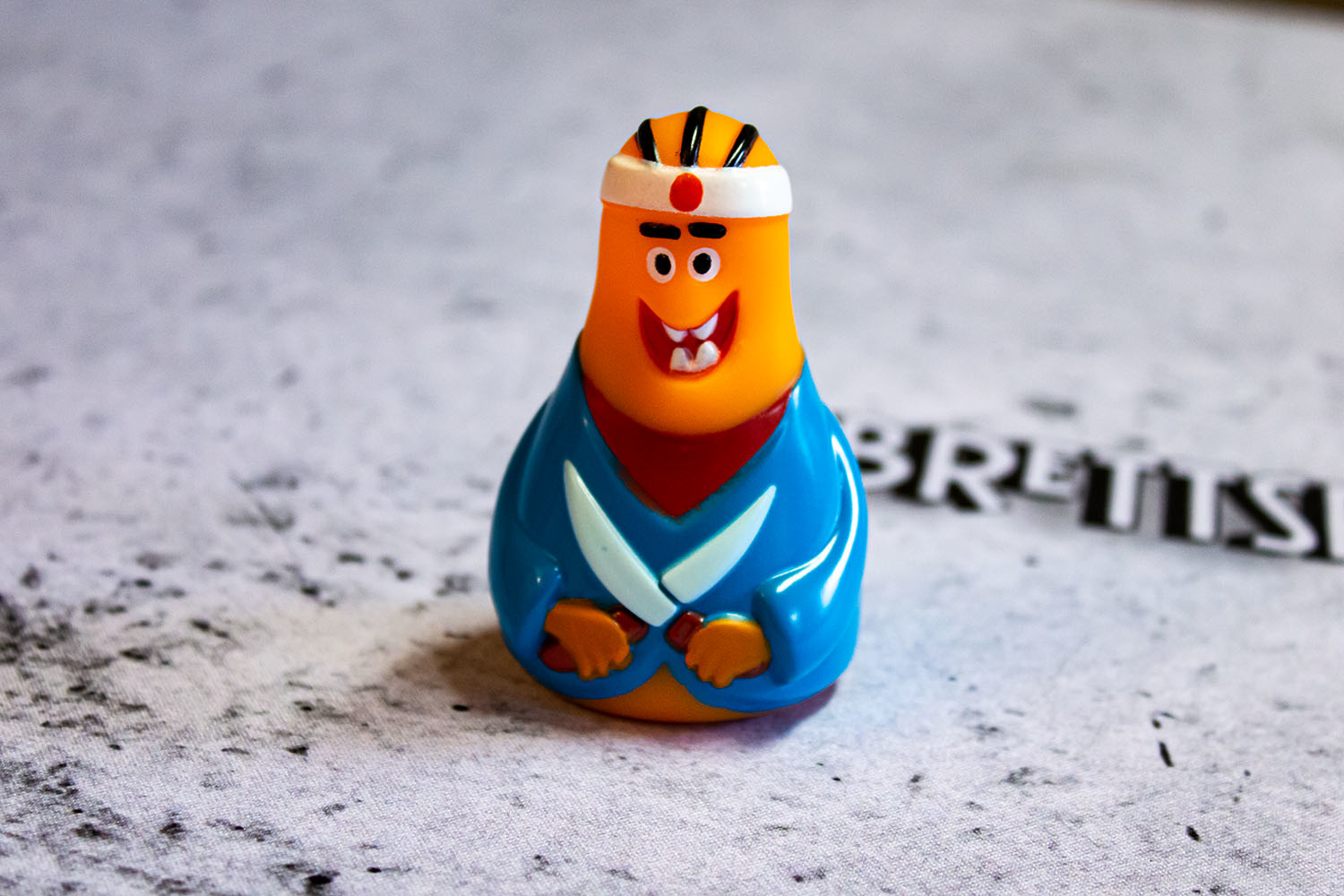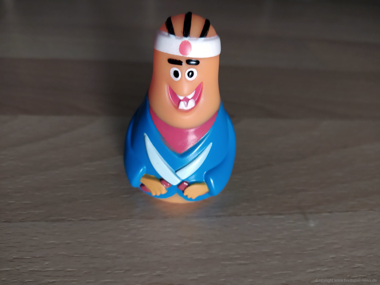 Als zweiten kleinen Schwachpunkt muss ich, wie schon erwähnt, den Sushimeister nennen. Er ist wirklich sehr süß gestaltet, jedoch ist er so klein und fest, dass es bei der Hektik im Spiel fast unmöglich ist, ihn zum Quietschen zu bringen, wobei ja gerade das spielentscheidend sein kann. Nach ein paar Runden sind wir dazu übergegangen, „Quietsch“ zu sagen, denn Ziel dieser Aktion ist es ja nicht „Schaffe ich es, den Sushimeister zum Quietschen zu bringen“, sondern „Erkenne ich, wann ich ihn quietschen lassen muss“.
