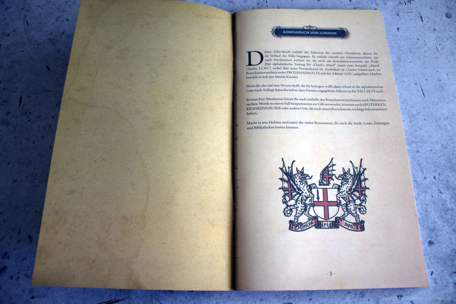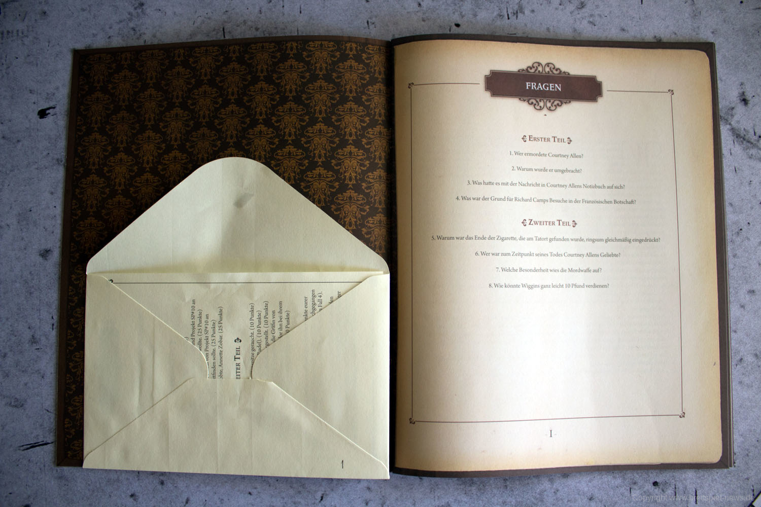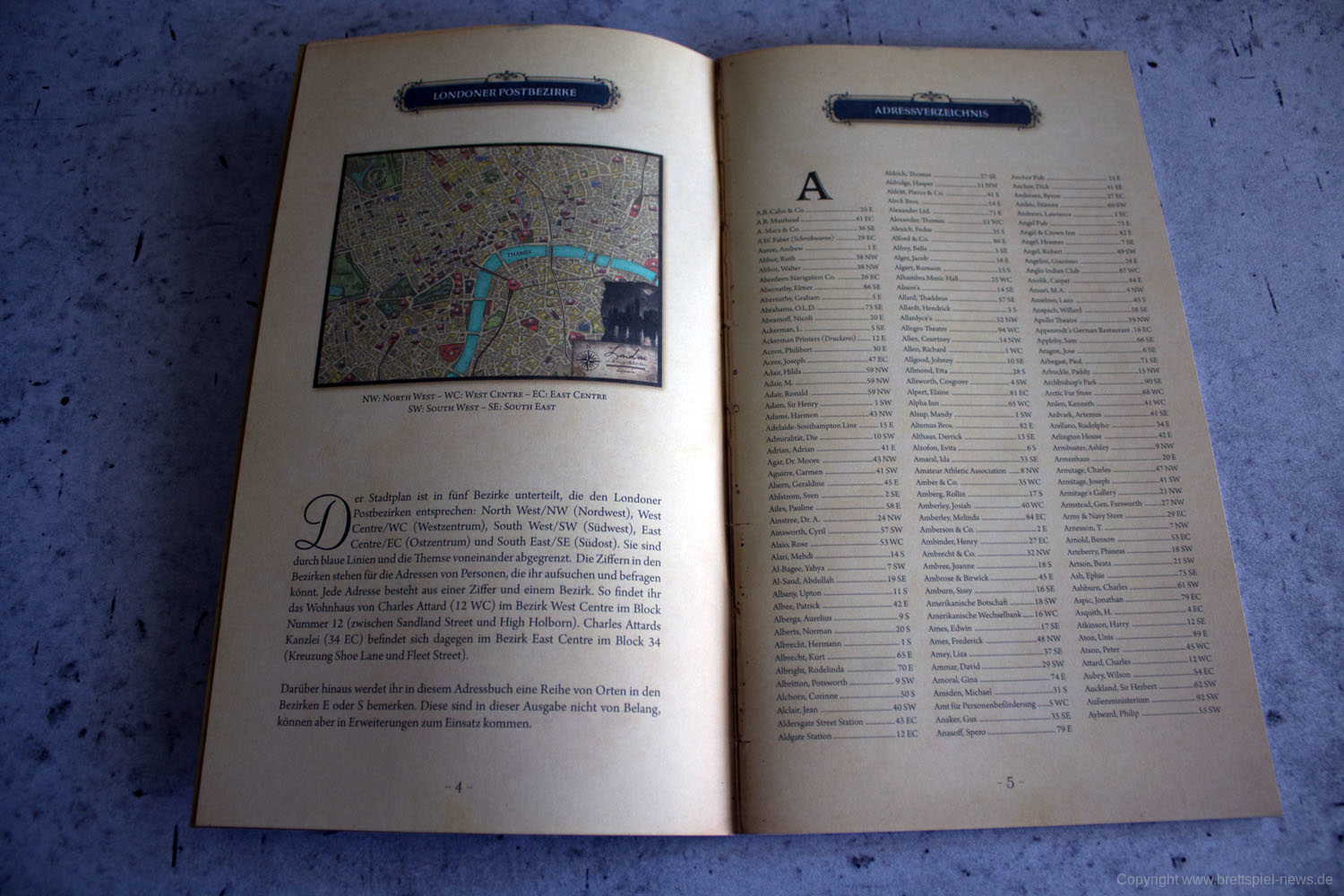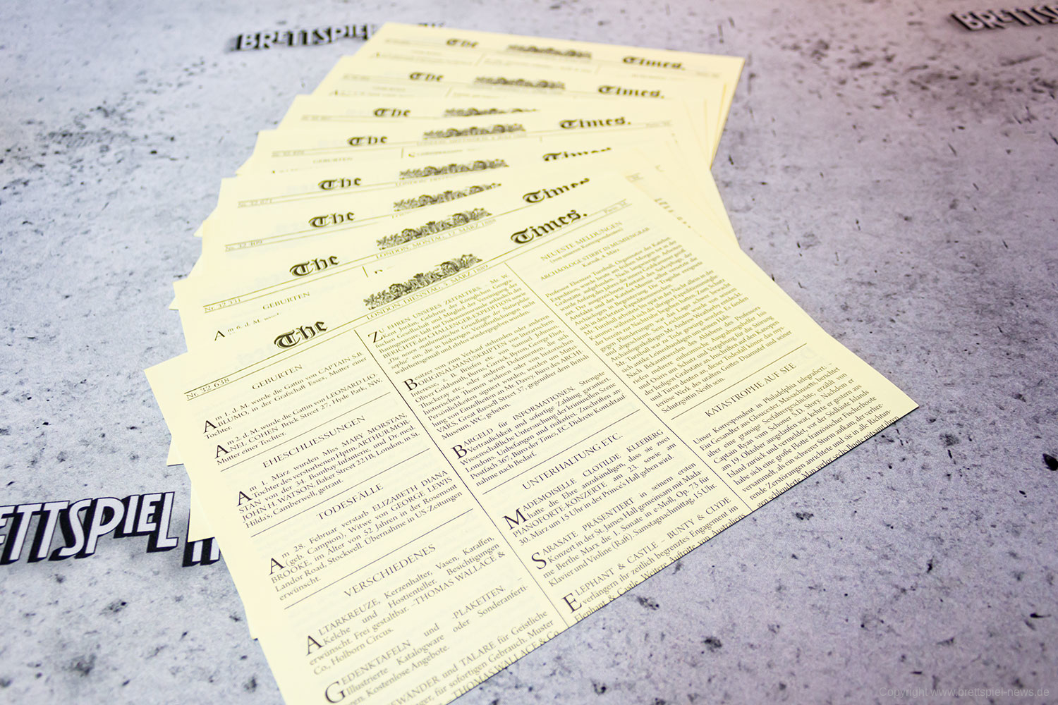 Das Aufteilen des großen Abenteuerbuchs auf Fallakten ist eine gute Idee, die das Handling während des Spiels deutlich erleichtert. Gleiches gilt für die Zeitungen, die nun ebenfalls als einzelne Seiten beiliegen und nicht mehr als Heft, wie noch beim Original. Im Grunde hat Space Cowboys hier die Umsetzung ihrer MYTHOS TALES, welche wiederum auf der Idee von SHERLOCK HOLMES CRIMINAL-CABINET basiert, auf SHERLOCK HOLMES: BERATENDER DETEKTIV – DIE THEMSE-MORDE & ANDERE FÄLLE übertragen. Die deutschen Texte wurden komplett neu übersetzt, die Fragen überarbeitet und zu guter Letzt noch eine ganze Reihe weiterer Orte hinzugefügt, da im Original oftmals logisch erscheinende Orte schlichtweg als Text fehlten. Space Cowboys hat also weitaus mehr getan, als einfach nur ein bisschen den durchzulüften und den Mief rauszulassen. Sie haben einen ohnehin schon erstklassigen Titel runderneuert, ohne seinen Kern zu zerstören.