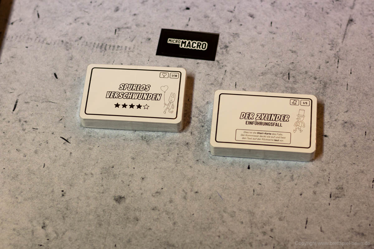 Vor dem ersten Spielen müssen die beschrifteten und nummerierten Karten in 16 transparente Umschläge gesteckt werden. Die Fälle steigern sich vom Tutorial bis zur schwersten Stufe (5 Sterne) langsam und werden immer anspruchsvoller.