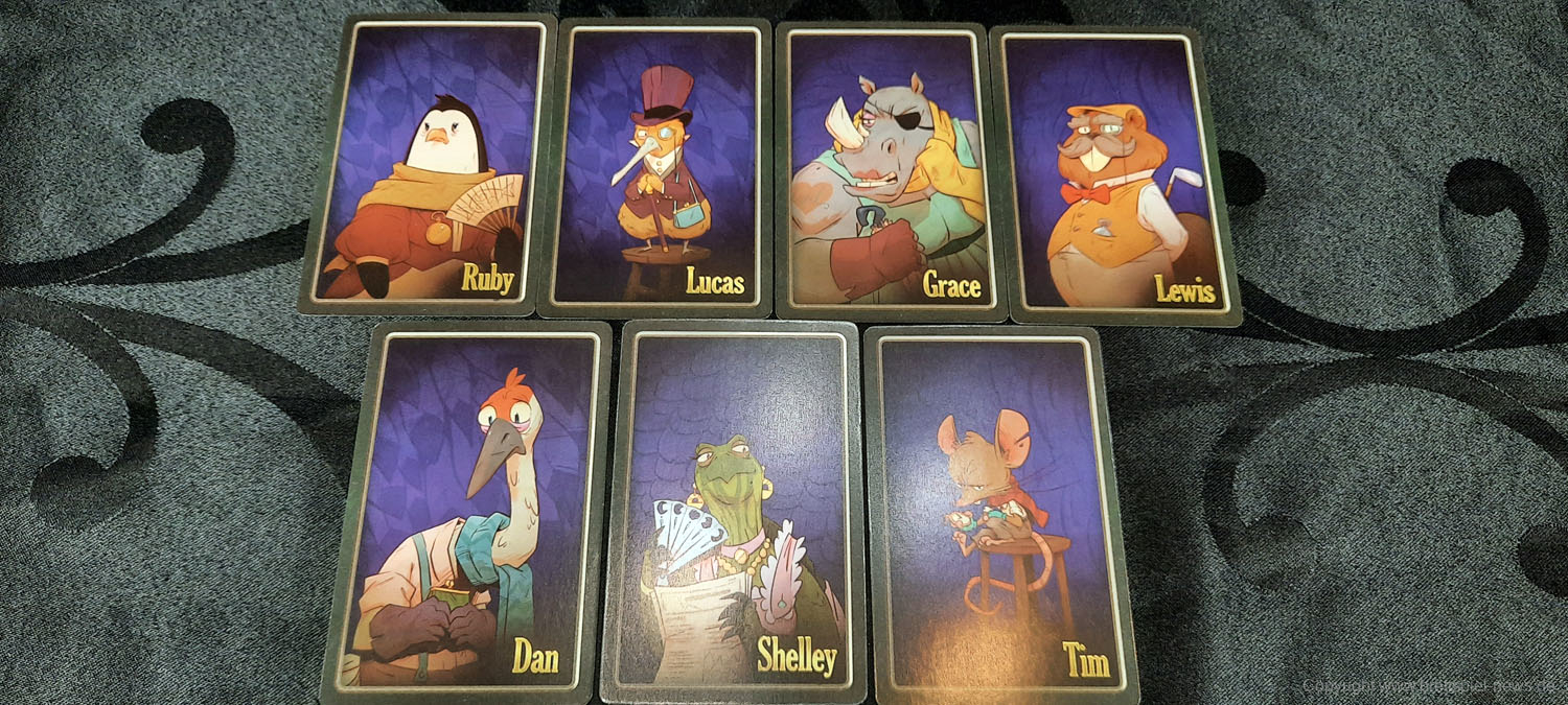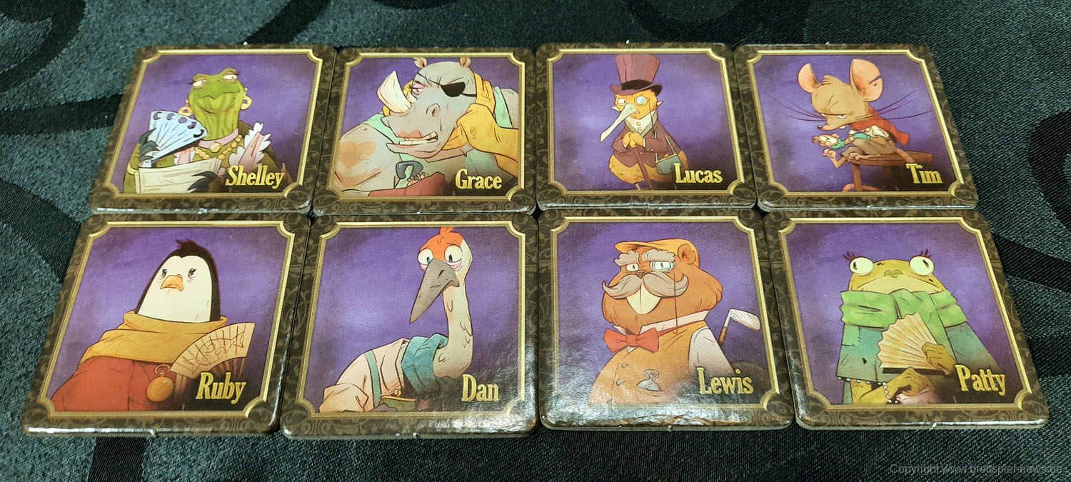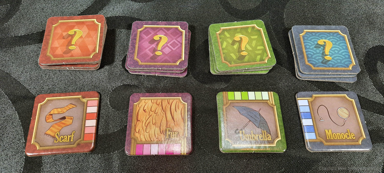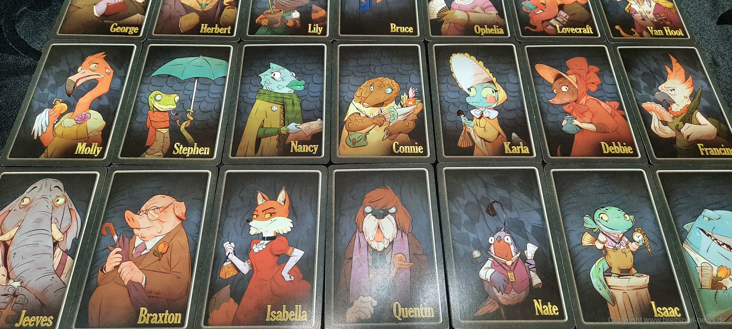 Die Szenekarten sind zwar groß, aber nicht so groß, dass ich mir eine Runde mit sechs Leuten vorstellen kann. Zu viert auf diese Karte zu gucken, ist für mich die Obergrenze. Danach wird es eng und das geht auf Kosten des Spielspaßes. Das Finden des Übeltäters mit den Hinweisplättchen ist fast trivial. Hat eine Person diesen Gegenstand, oder nicht? Diese Aufgabe wäre wohl langweilig leicht, wäre da nicht der Zeitdruck. Zudem hat es sich als effektiv erwiesen, als erstes einen lila Hinweis zu nehmen, um die Verdächtigen nach Haut, Fell, Schuppen und Federn zu unterscheiden. Wenn alle wissen, dass das der Plan ist, können die Karten in der Hand schon vorsortiert werden und die ersten ein bis drei Szenen laufen immer gleich ab.