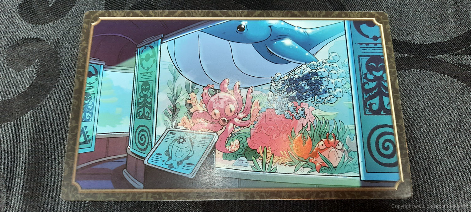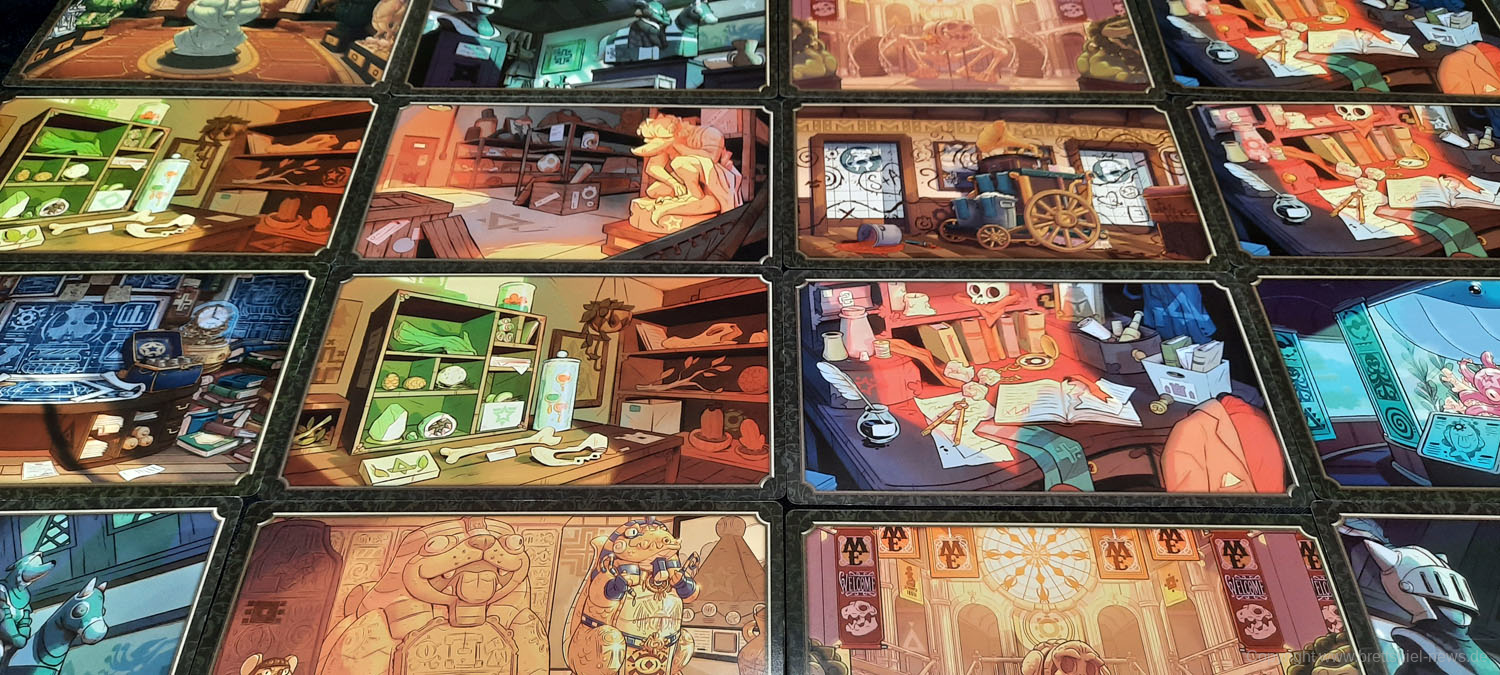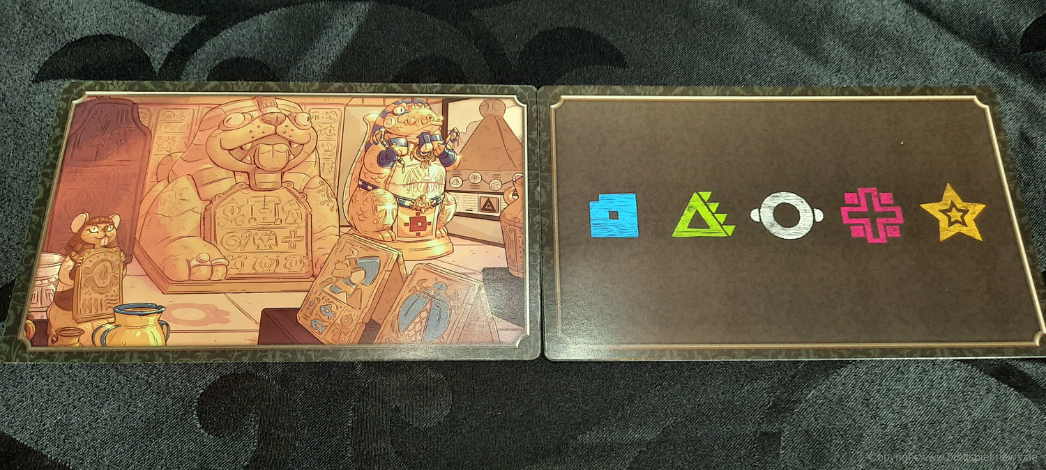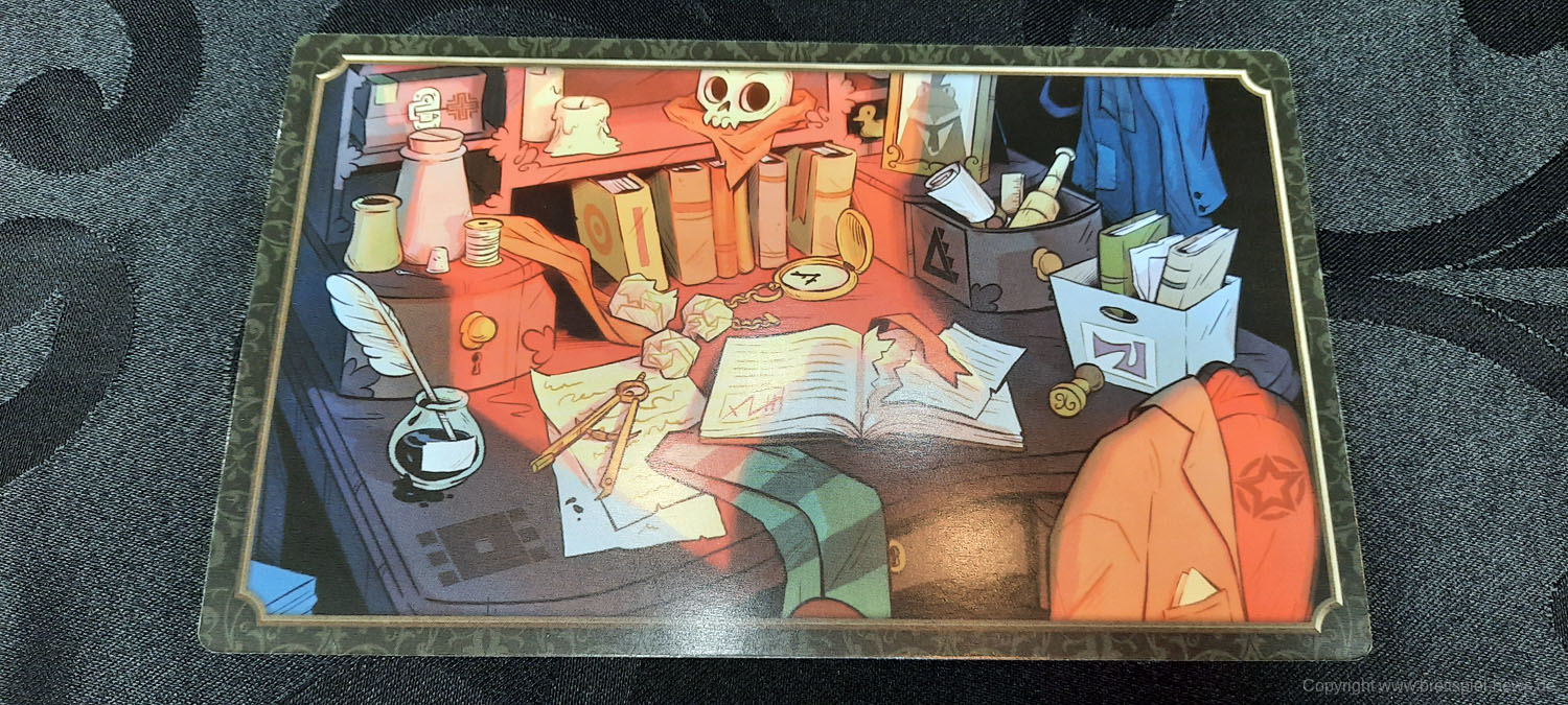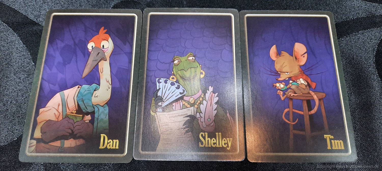Die Szenekarten sind zwar groß, aber nicht so groß, dass ich mir eine Runde mit sechs Leuten vorstellen kann. Zu viert auf diese Karte zu gucken, ist für mich die Obergrenze. Danach wird es eng und das geht auf Kosten des Spielspaßes. Das Finden des Übeltäters mit den Hinweisplättchen ist fast trivial. Hat eine Person diesen Gegenstand, oder nicht? Diese Aufgabe wäre wohl langweilig leicht, wäre da nicht der Zeitdruck. Zudem hat es sich als effektiv erwiesen, als erstes einen lila Hinweis zu nehmen, um die Verdächtigen nach Haut, Fell, Schuppen und Federn zu unterscheiden. Wenn alle wissen, dass das der Plan ist, können die Karten in der Hand schon vorsortiert werden und die ersten ein bis drei Szenen laufen immer gleich ab.