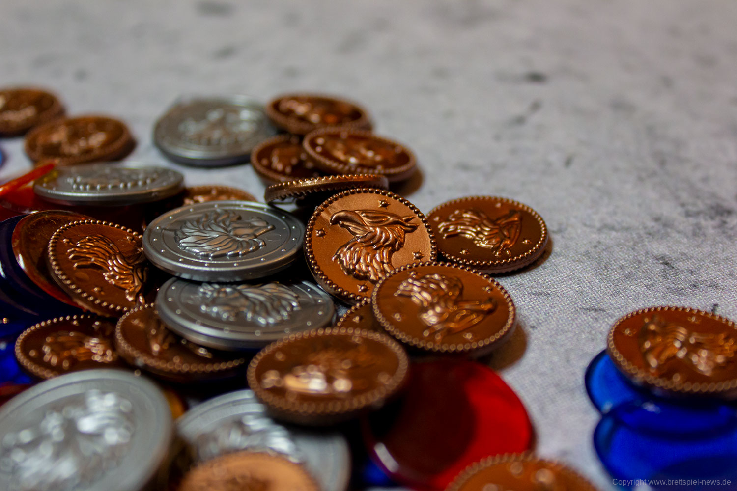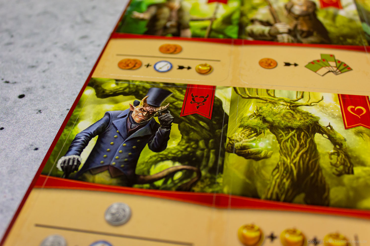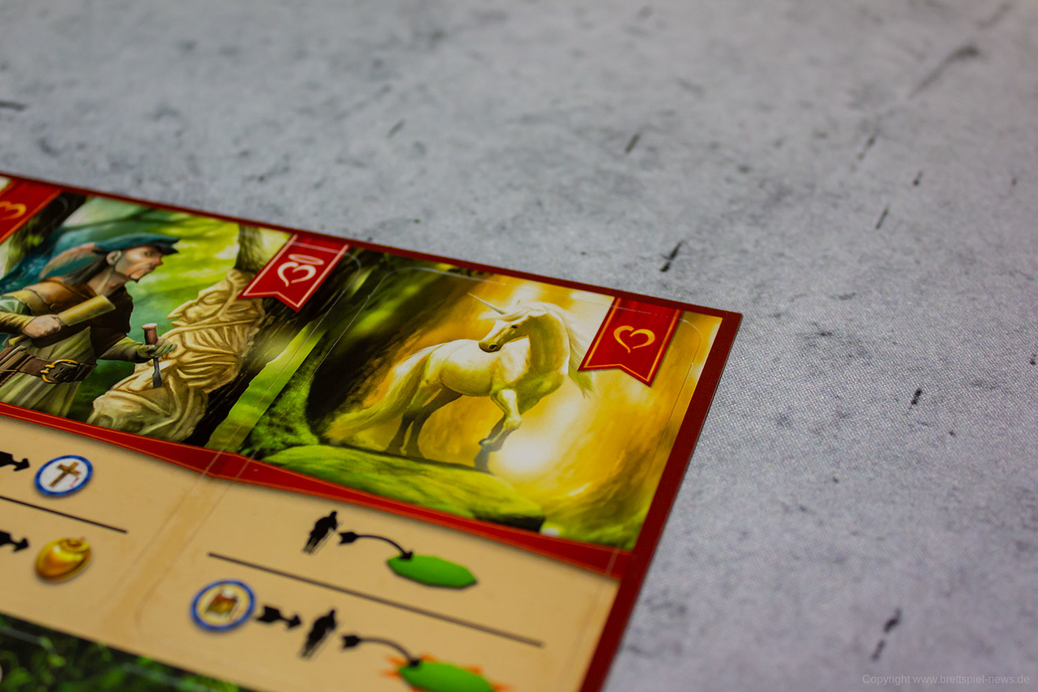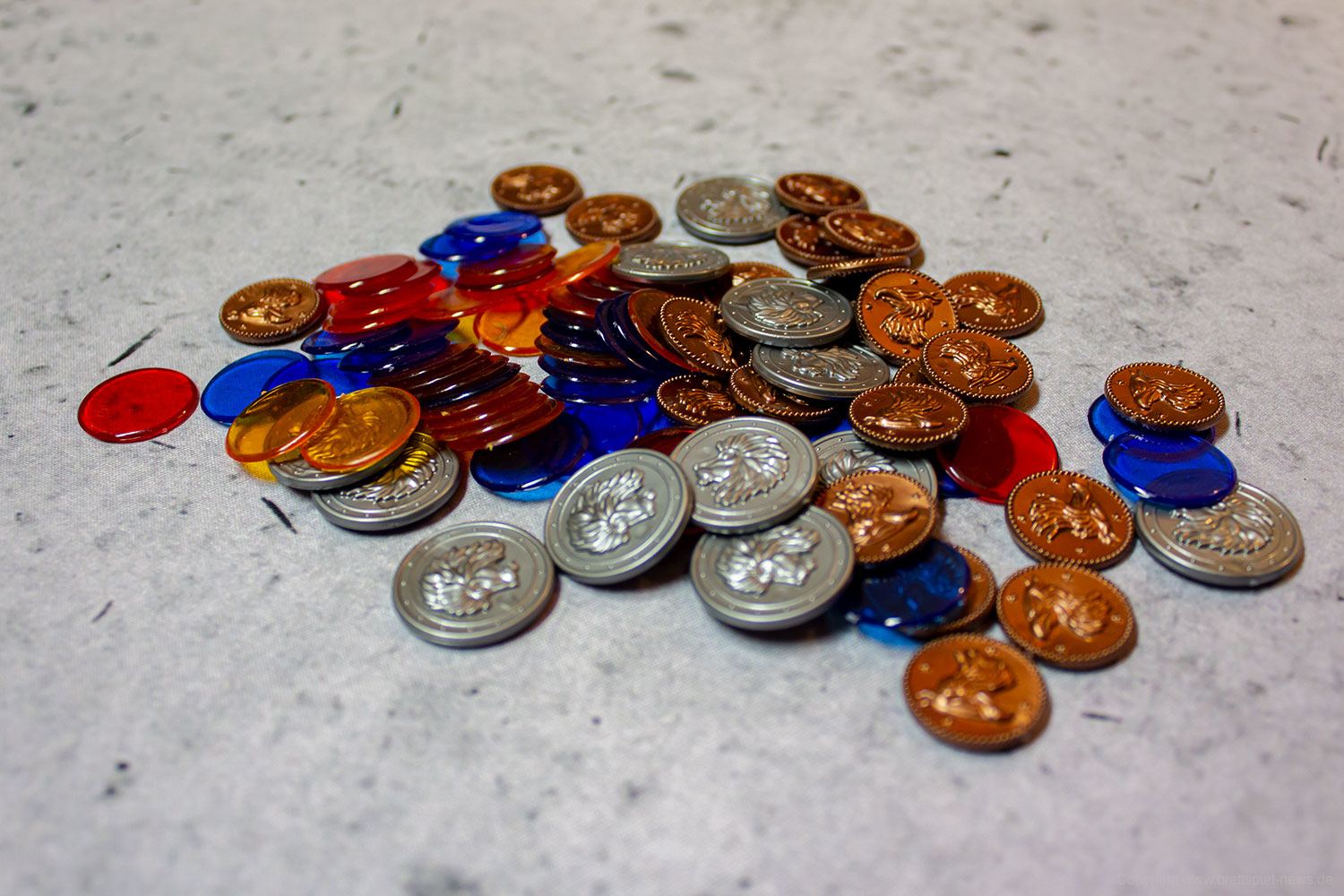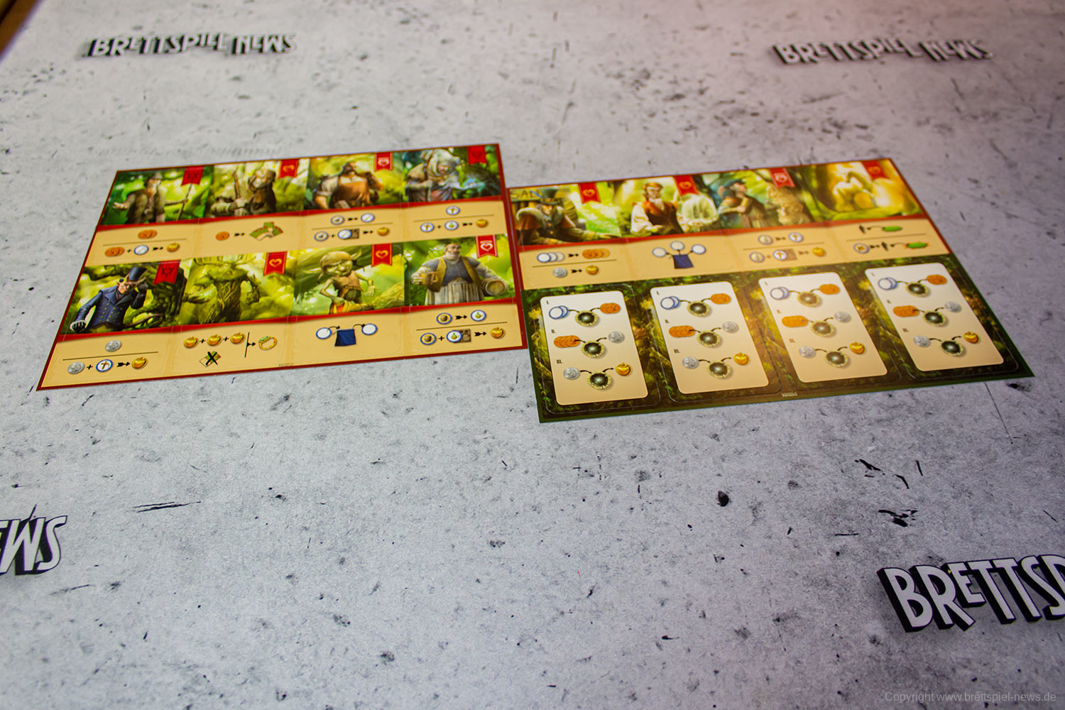 Die generelle Qualität des Spielmaterials ist gut. Der Druck ist scharf, die Grafiken und das Design lassen alle Informationen schnell erkennen und das unterschiedliche Spielmaterial ist abwechslungsreich. Probleme sehe ich alleine in der dicke der Spielkarten, da diese sehr dünn und beinahe papierähnlich sind, wodurch auf diese beim Mischen besonders geachtet werden sollte.