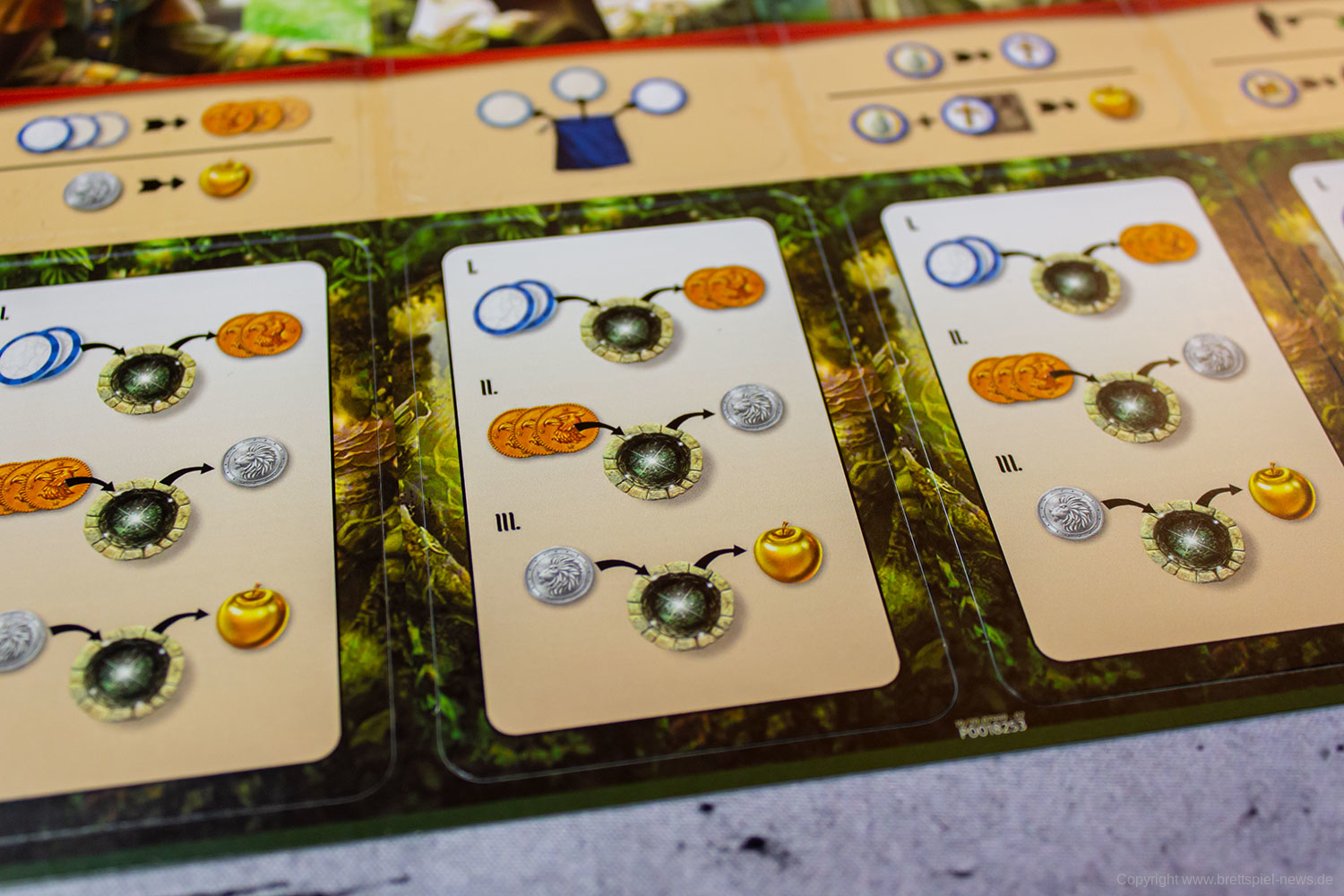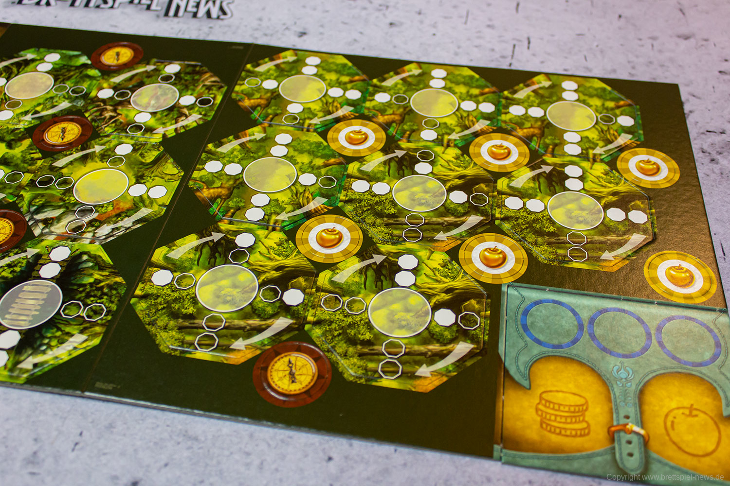 Eine andere Möglichkeit für den Erhalt der goldenen Äpfel sind die vier Brunnen, die sich an festgeschriebenen Orten des Waldes befinden. Hier können die Spieler entweder zwei Ausrüstungsplättchen gegen zwei Kupfermünzen, drei Kupfermünzen gegen eine Silbermünze oder eine Silbermünze gegen einen goldenen Apfel tauschen.