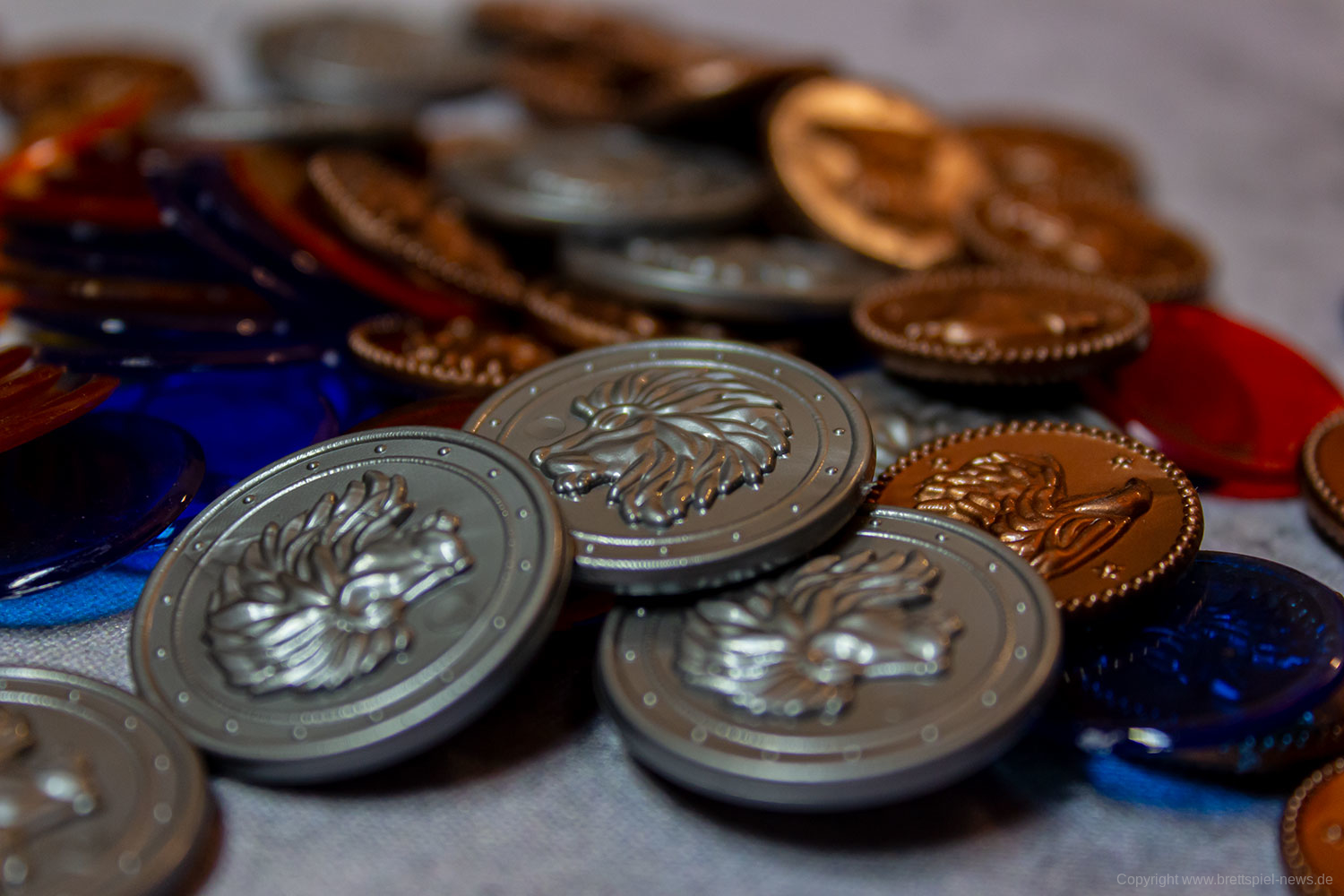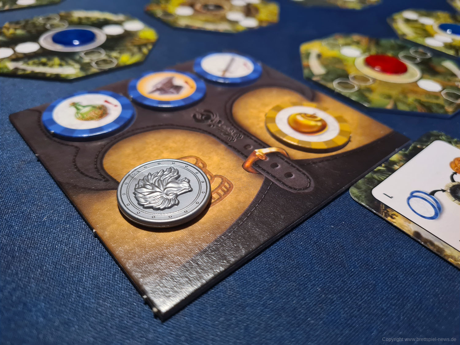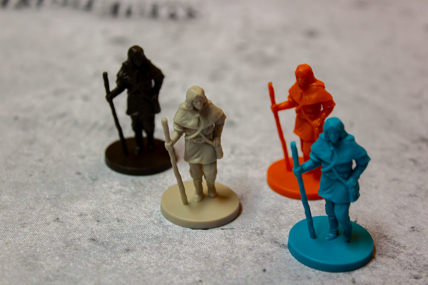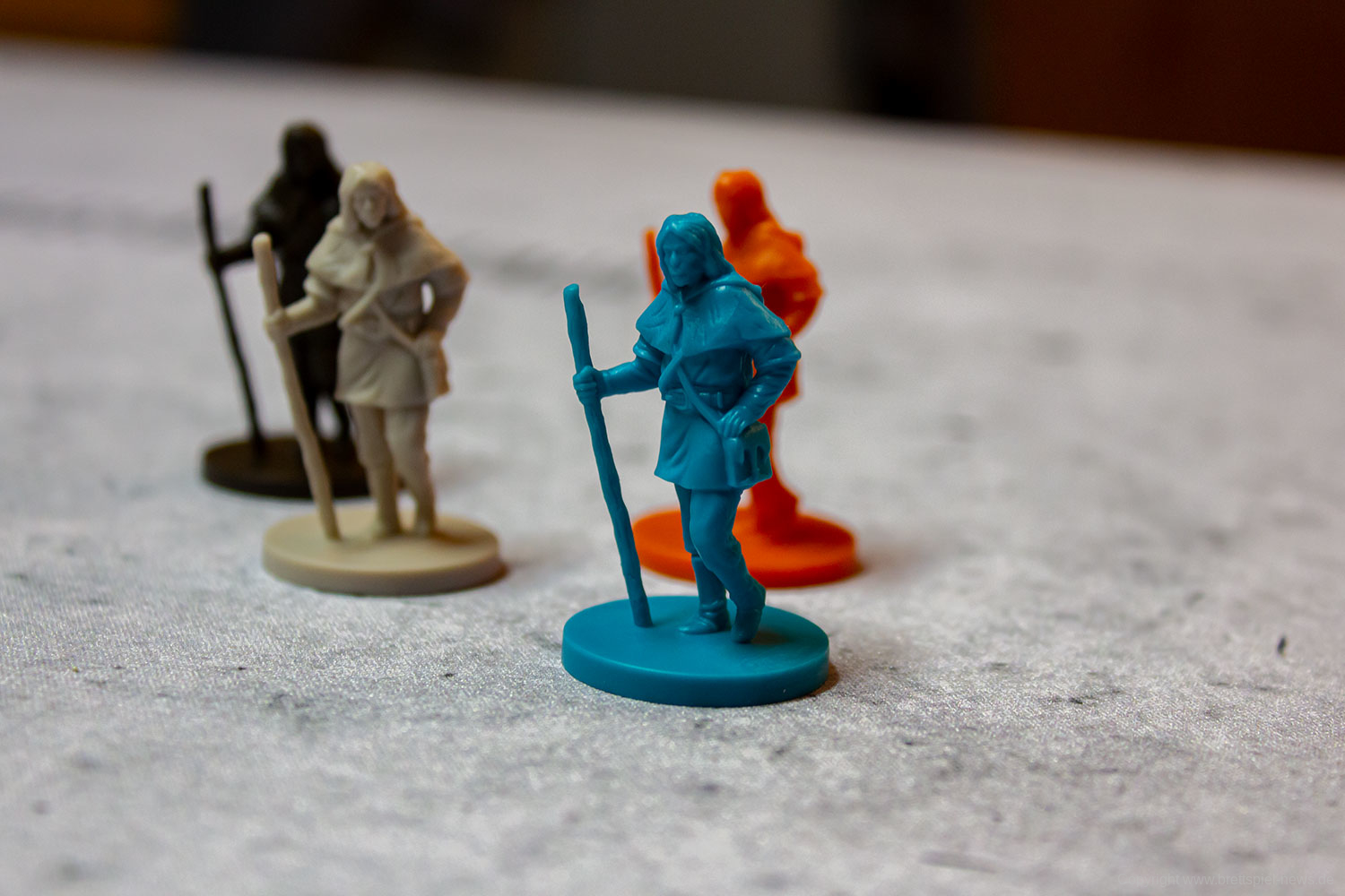 Die Spielfiguren sind ein kleines Highlight des Spiels, da sie, im Gegensatz zu vielen bekannten Spielfiguren der gleichen Art, sehr scharf und detailliert gegossen worden sind. Zusätzlich liegen dem Spiel zwei verschiedenfarbige Stoffbeutel bei, die für das Verdeckte ziehen von Plättchen genutzt werden.