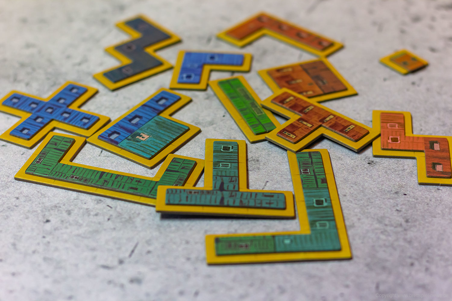 Es ist für die Spieler jedoch notwendig, ein gewisses räumliches Vorstellungsvermögen zu besitzen, da man genau voraussehen muss, welche der verschiedenen geometrischen Formen, die die Gebäudeplättchen haben, auf welche Felder passen.