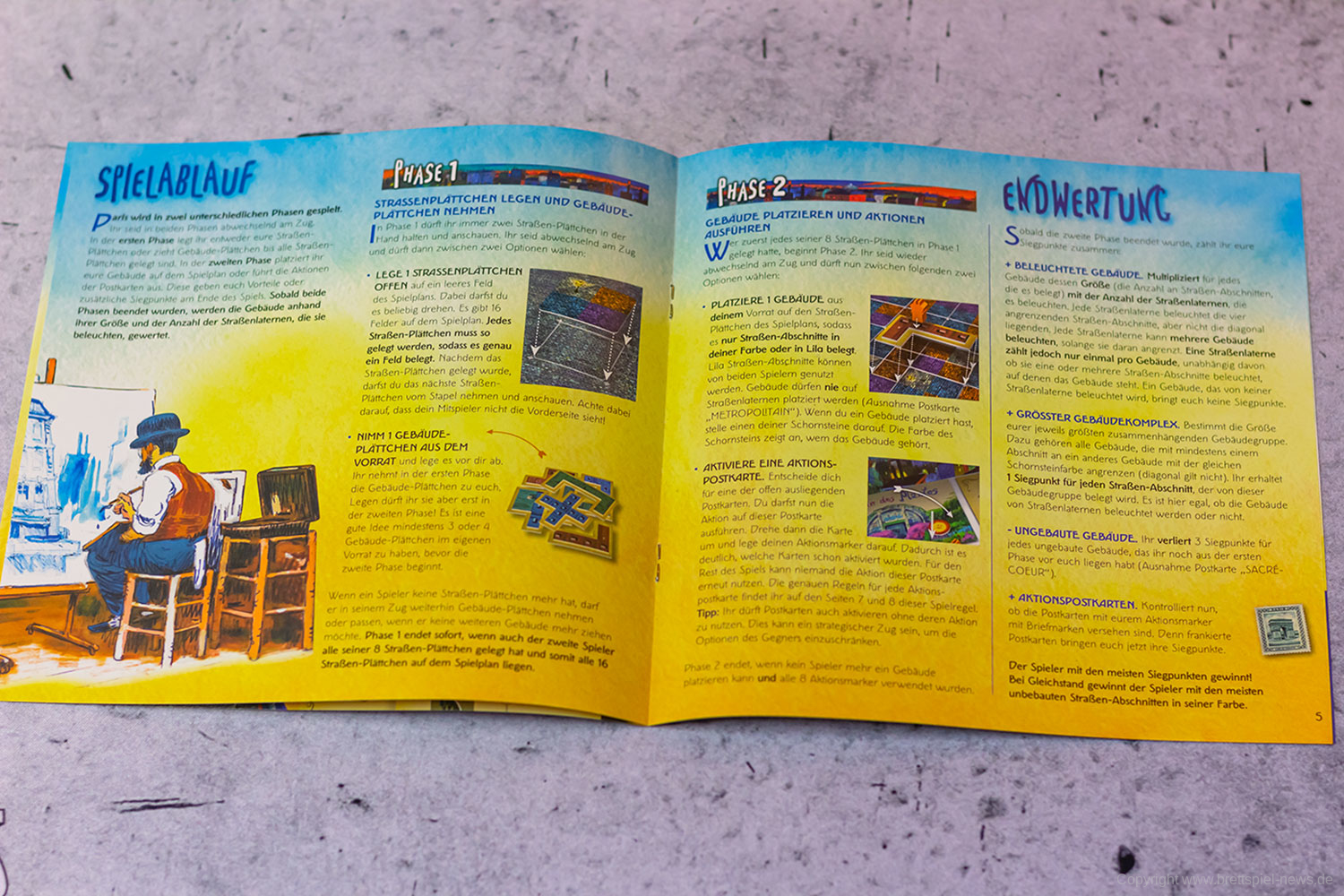Die erste Partie gestaltete sich bei uns zunächst etwas holprig, aber bereits ab der zweiten haben wir die verschiedenen Strategien und die Möglichkeiten der Postkartenaktionen durchschaut und genießen seitdem immer wieder, welche Emotionen PARIS-STADT DER LICHTER in den zwei unterschiedlichen Phasen auslöst. Wir sind im Großen und Ganzen zwar keine Puzzlespielfans, aber dieses kompakte Zweipersonenspiel hat uns durch seinen Tiefgang und seine kurze Spieldauer überzeugt.