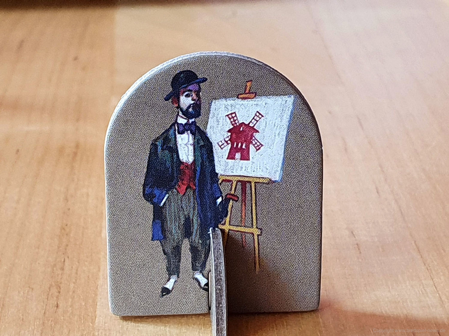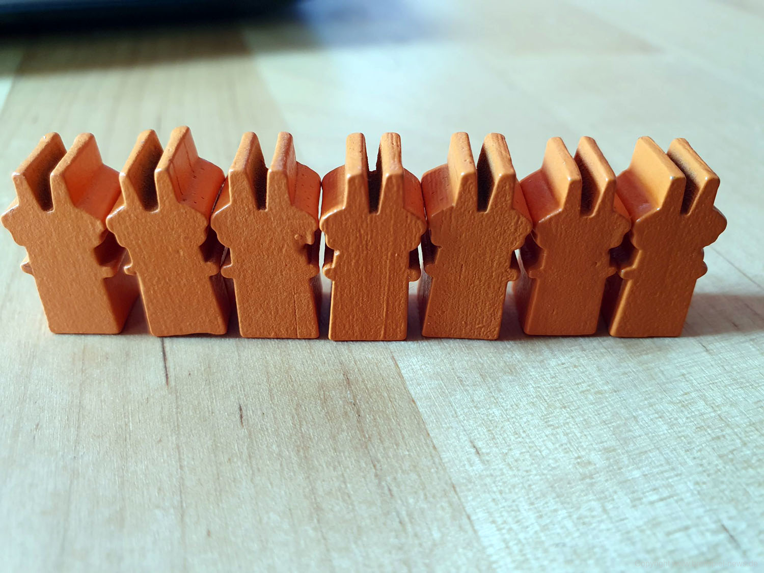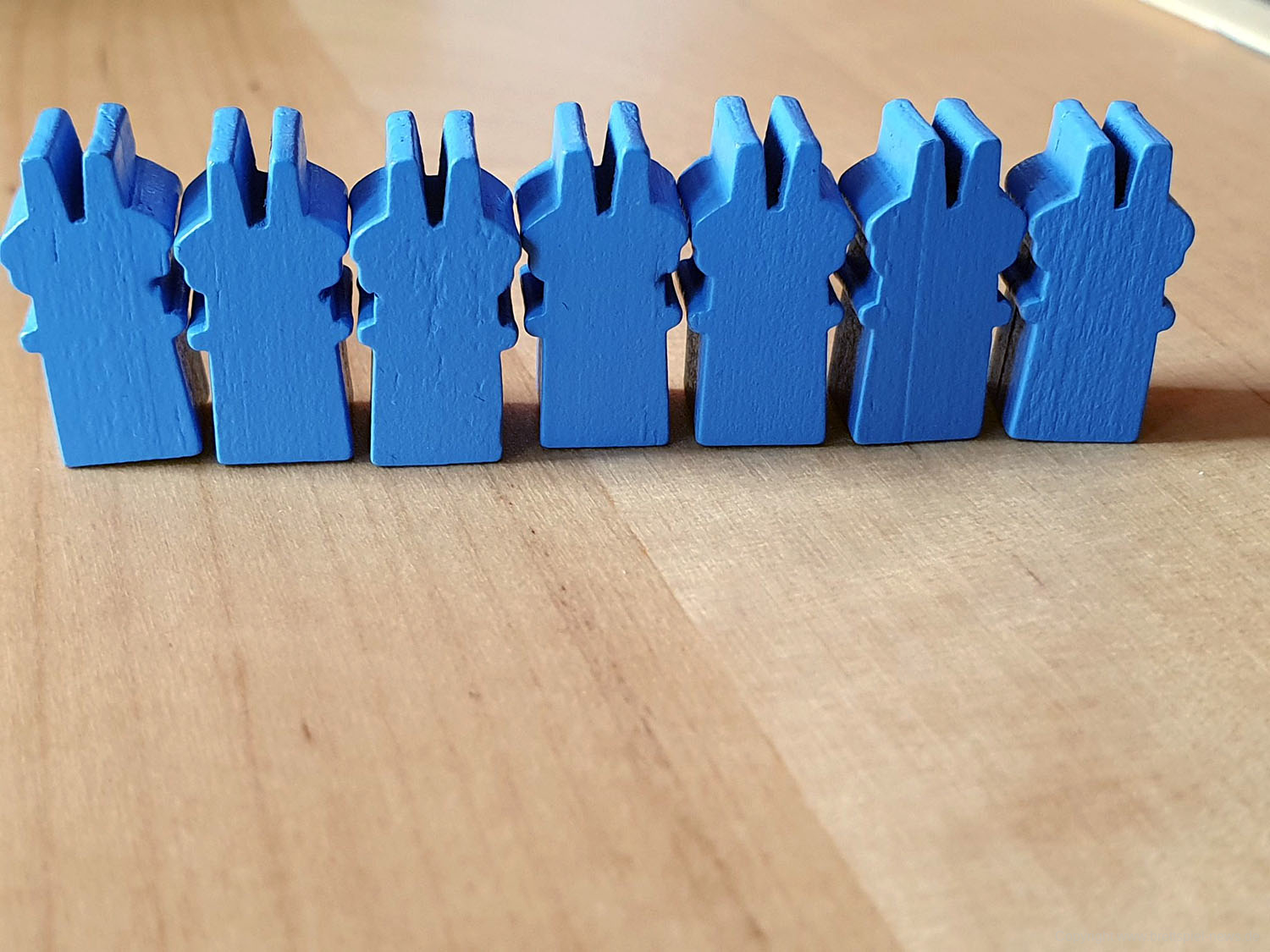 Zudem finde ich die Farbgebung nicht optimal, die Farben sind gedeckt, was sich vor einem ebenfalls anthrazitfarbenen Spielbrett nicht so gut macht. Auch wenn durch die verhaltene Farbgebung das gedimmte Licht von Laternen aus dem 19. Jahrhundert wiedergegeben werden soll, wären kräftigere Farben, die sich besser vom Spielplan abheben, angenehmer gewesen.