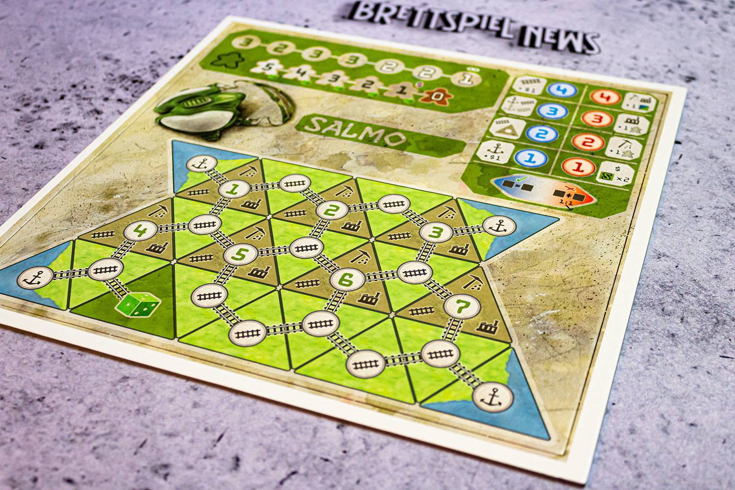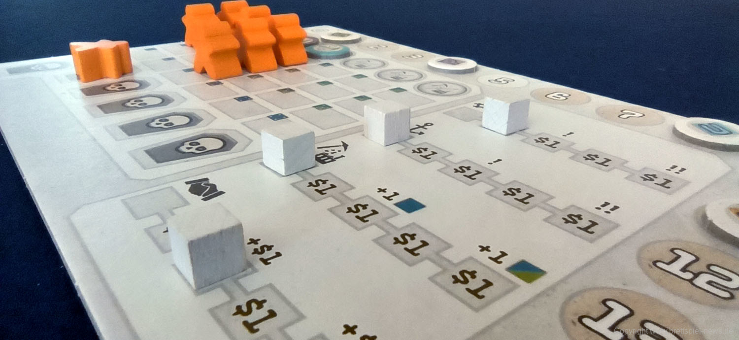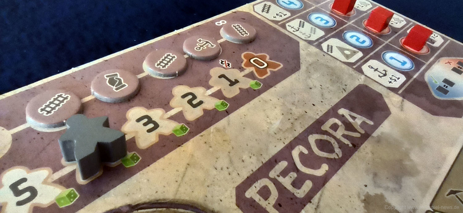 Sehr innovativ ist auch die Auswahl der Aktionen durch das Besetzen eines Eckpunkts dreier Felder. Allein dieser Schritt Bedarf einer guten Planung und kann schnell einem Gegner einen Strich durch die Rechnung machen, z.B. wenn die letzte Hafenbau-Aktion weggeschnappt wird.