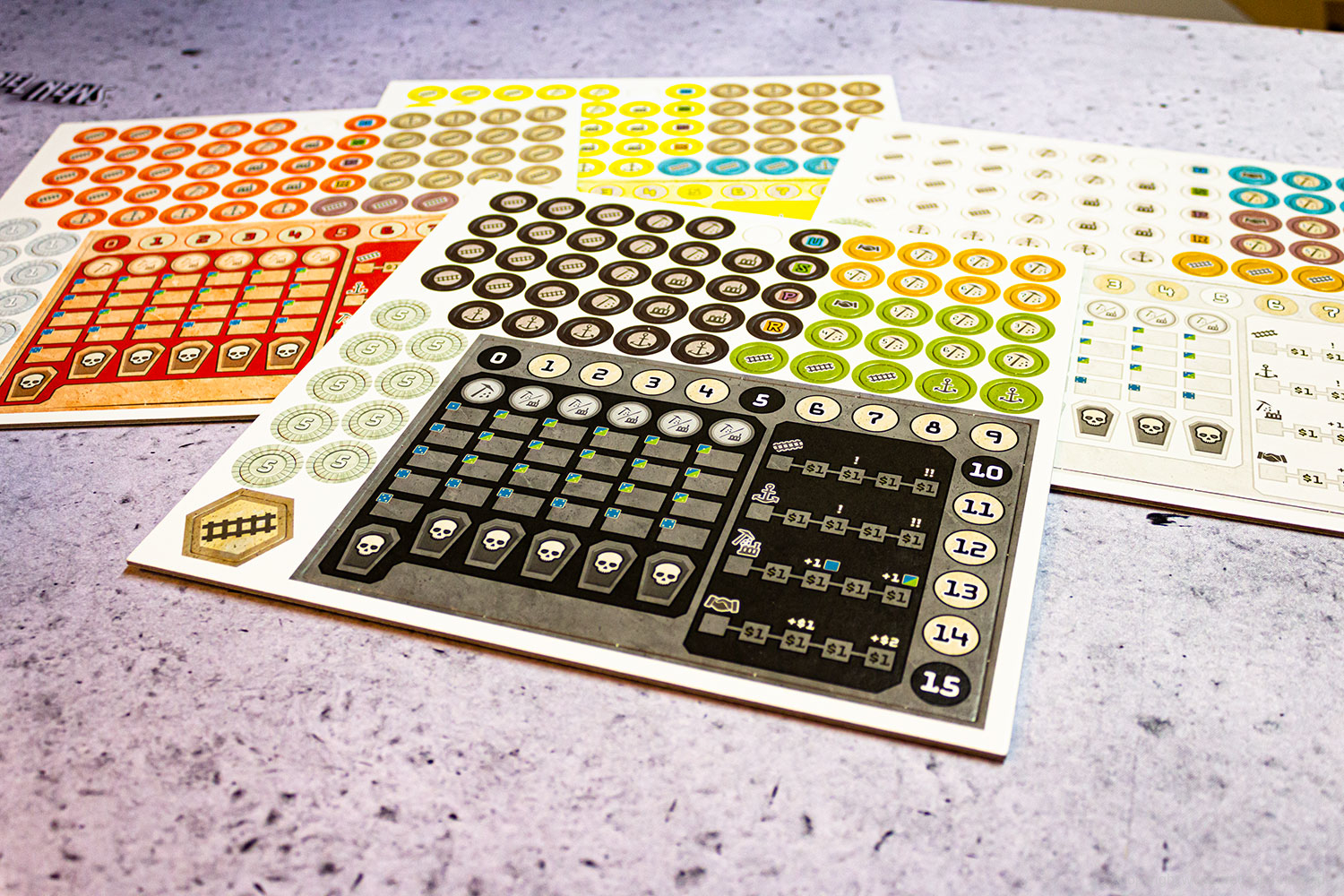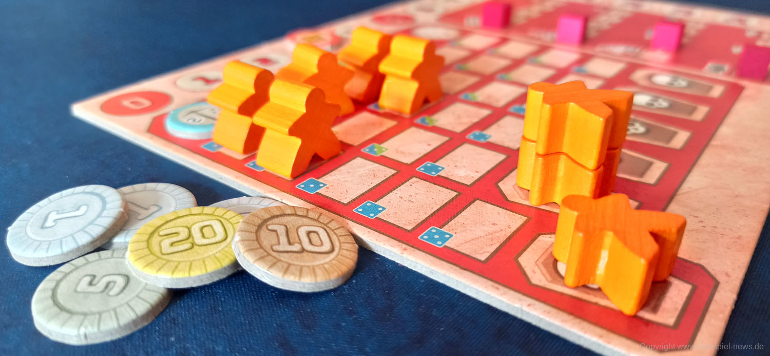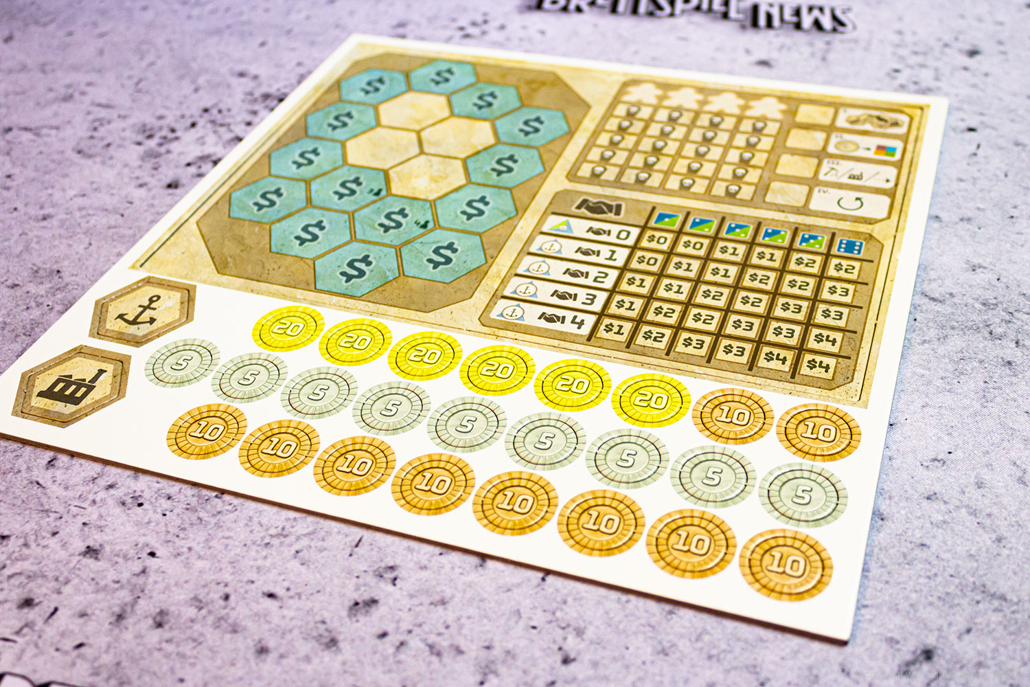 Das Spielmaterial ist aufgrund der zahlreichen Tableaus recht umfangreich in solider Qualität, ohne aber hervorzustechen. Stabiler Karton und Holz findet Verwendung.