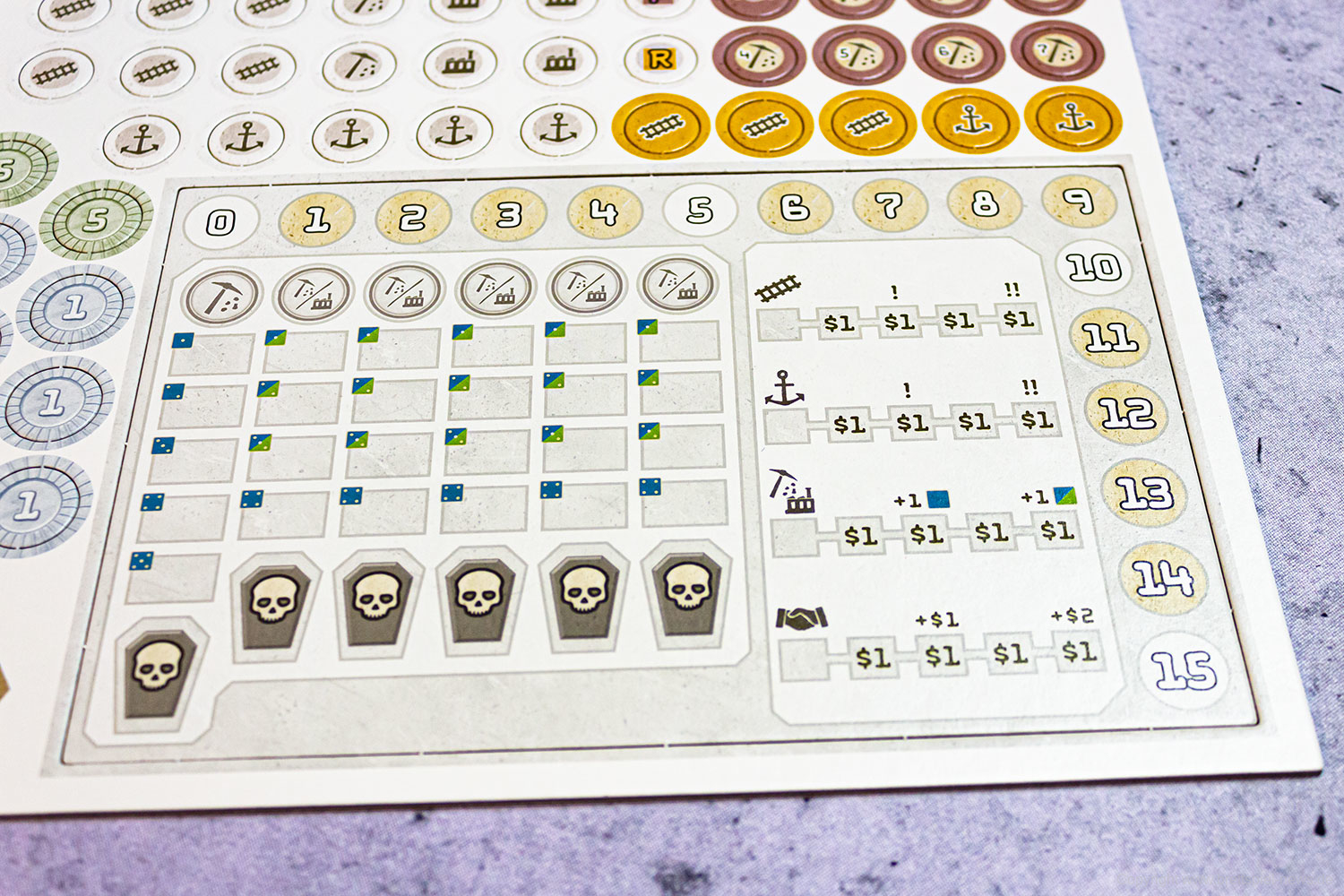 Je Spieler wird ein Staaten-Tableau ausgelegt, auf denen alle Spieler agieren können. Diese zeigen jeweils einen Streckenplan der Zugverbindungen, Plätze für Häfen und 7 vorgegebene Industriegebiete zum Bau von Asbest-Minen oder Mühlen zur Weiterverarbeitung.