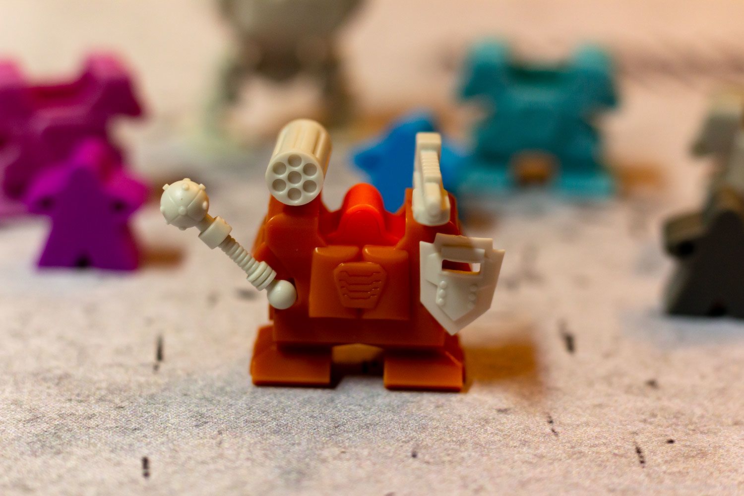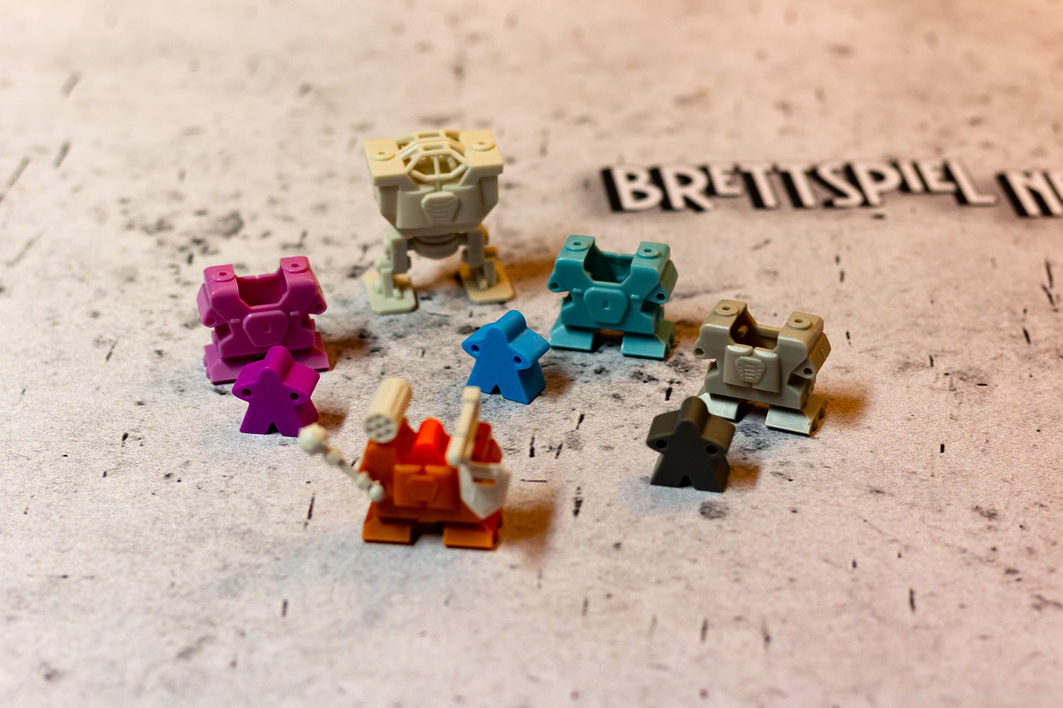 Die TINY EPIC Reihe ist dafür bekannt, ein mehr oder minder anspruchsvolles Spiel in kleinem Format zu bieten. Ich selbst hatte bisher nicht die Möglichkeit, die anderen Vertreter auszuprobieren, doch bereits das Material ähnelt sich sehr. Optisch gesehen bietet TINY EPIC MECHS eine Menge. Gerade das Anstecken der Waffen macht Spaß und verleiht dem Spiel wesentlich mehr Immersion.