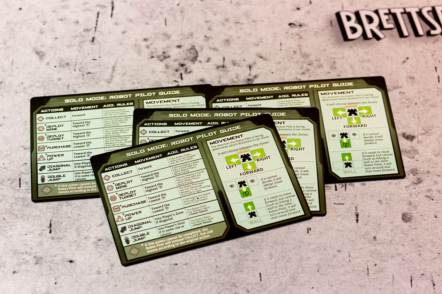 TINY EPIC MECHS bietet wenig interessante Aspekte oder Spielmechaniken. Das taktische Platzieren der Fallen ist für kurze Zeit spaßig, wird aber auf Dauer monoton. Das Thema gefällt mir persönlich nicht, obwohl ich sagen muss, dass es recht unverbraucht ist und jeder Mensch einen anderen Geschmack hat, weshalb dies auch nicht in meine Bewertung mit einfließt.