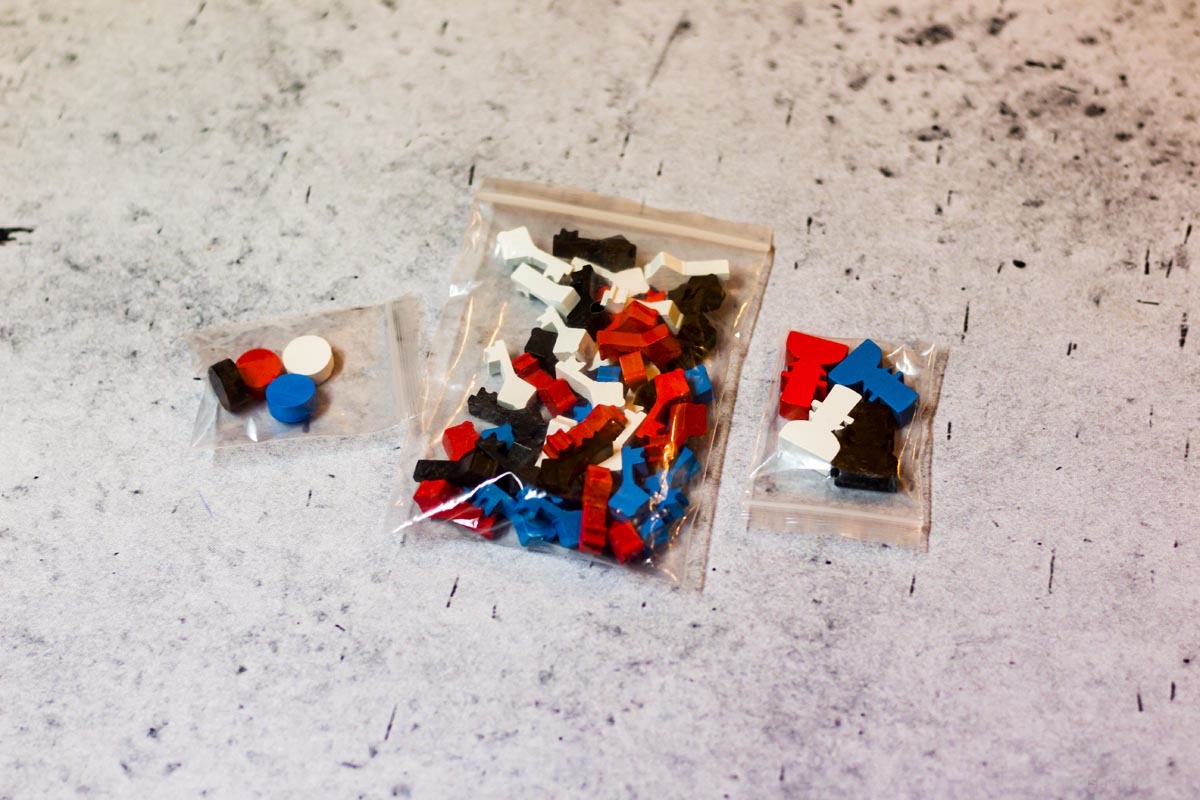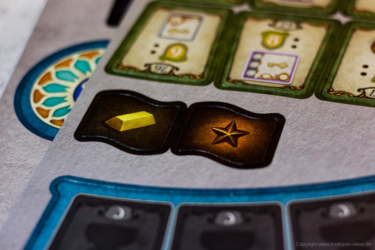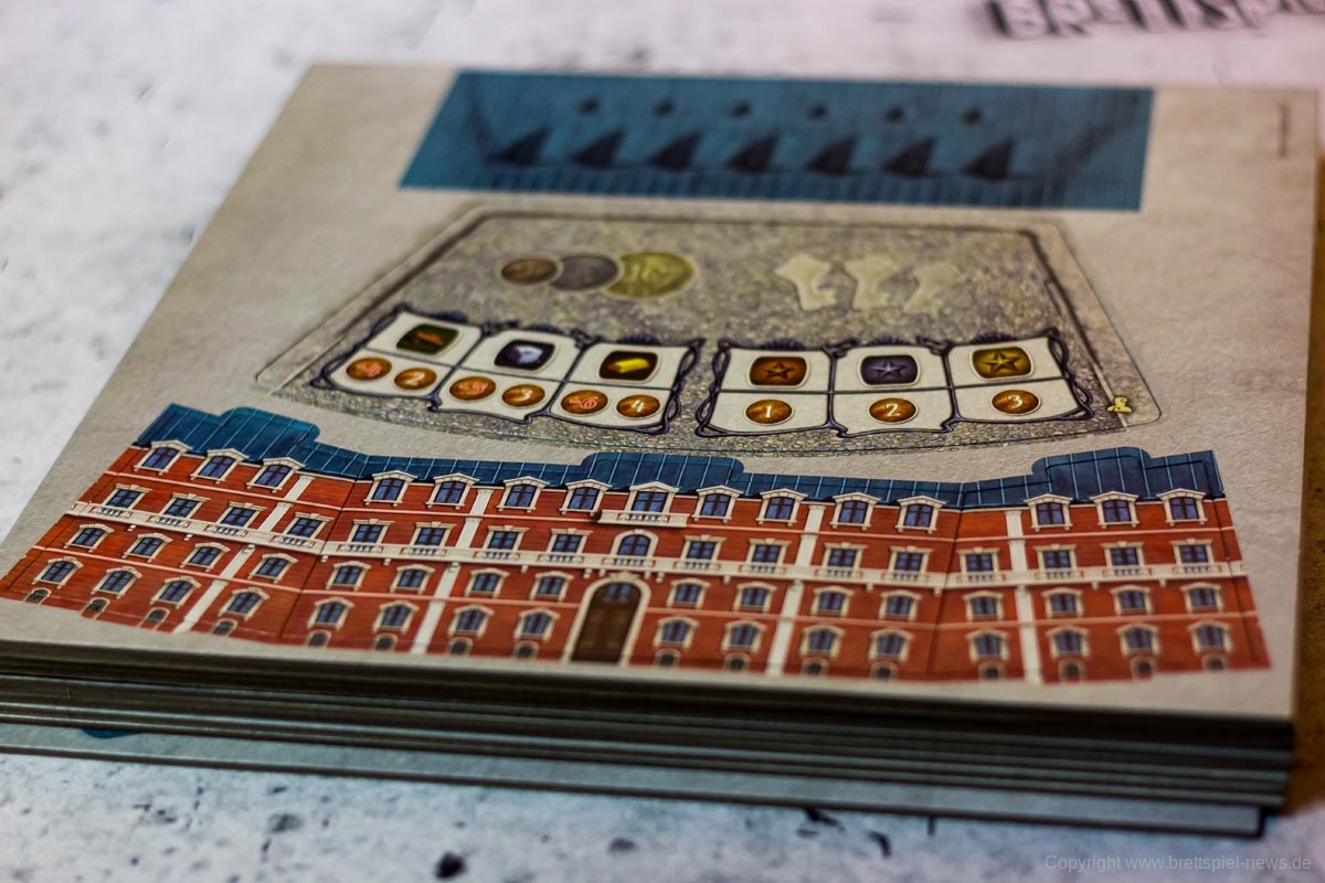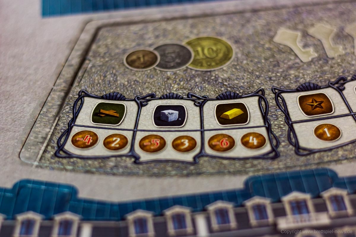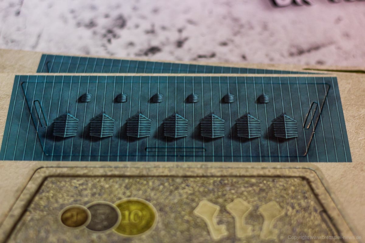Wahrscheinlich streiten sich die Geister, ob die Sichtschirme für jeden Spieler wirklich nötig gewesen wären. Das Dach dunkelt extrem ab und meist kann man seine darunter gelagerten Ressourcen kaum erkennen. Strategisch wäre es vielleicht auch interessant gewesen, die Pläne des Gegenübers deuten zu können, um ihnen entgegenwirken zu können.