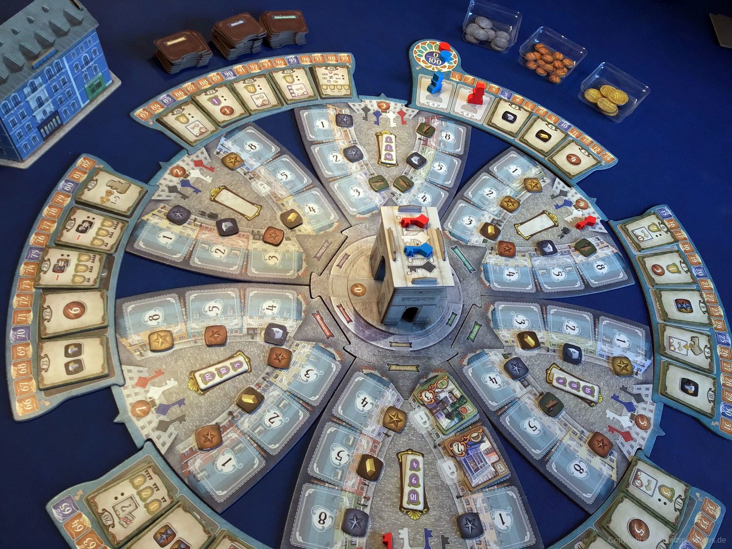 Die Mechanik mit dem Setzen und Versetzen der Schlüssel ist taktisch und spielerisch interessant und weicht vom bekannten Arbeiter-Einsatz-Mechanismus ab. So bauen sich nach und nach die Stadt und die Spieler selbst auf und sammeln Ressourcen für den Bau der siegpunktreichen Wahrzeichen. Der Zeitpunkt zum Legen eines Siegpunktplättchen kann von den Spielern aktiv gesteuert werden und sollte gut gewählt sein. Dies geschieht in den Runden mit vier Spielern deutlich schneller, als im Zweipersonenspiel. Das Spielende kann sich sehr in die Länge ziehen. Vom Gefühl her könnte das Spiel nach dem kompletten Ausbau der Stadt mit der Siegpunkteauswertung enden. Doch zu diesem Zeitpunkt kann das Spiel zu zweit noch einmal zwanzig Minuten dauern. Übrige Ressourcen werden mit den passenden Spielendeplättchen kombiniert und ermöglichen damit noch einmal einige entscheidende Spielzüge, die eine Kette anderer Spielzüge auslösen können. Auch wenn es im Spiel selbst nicht vorgesehen ist, könnte die Anzahl der Spielendeplättchen, gerade für das Zweipersonenspiel, angepasst werden, um das Spiel zu verkürzen.