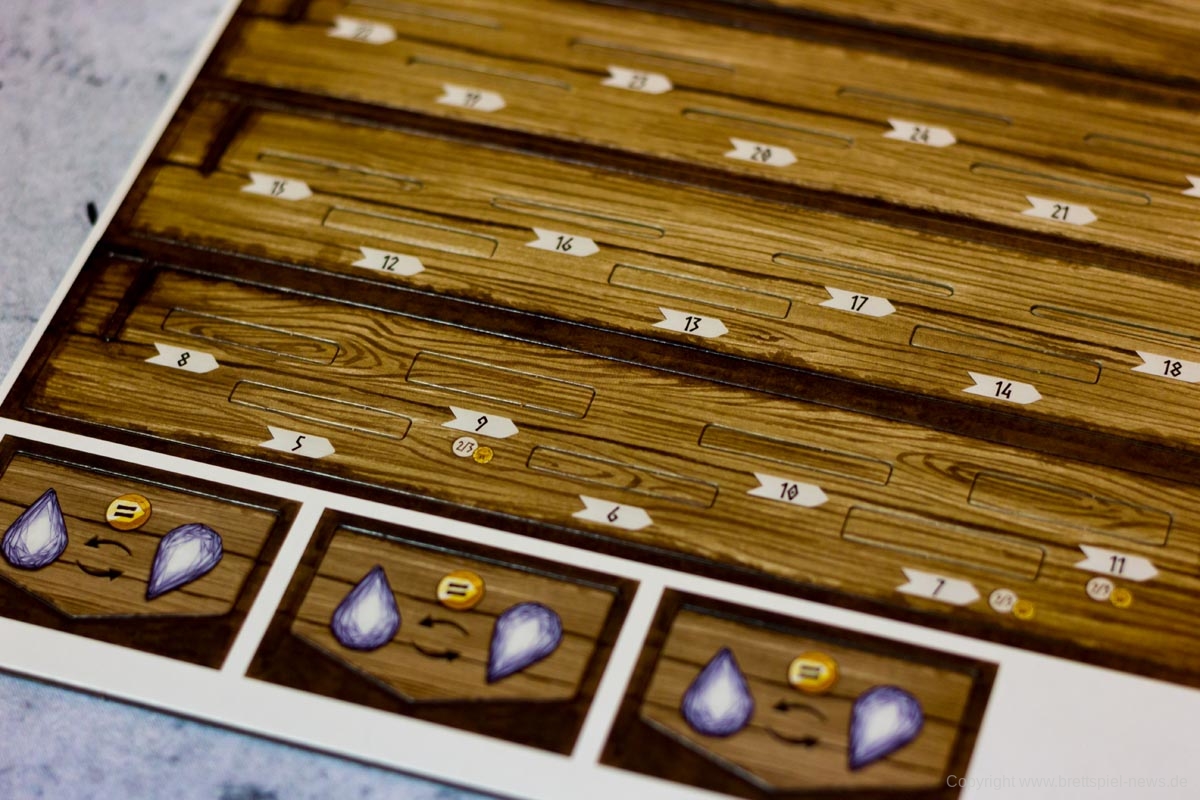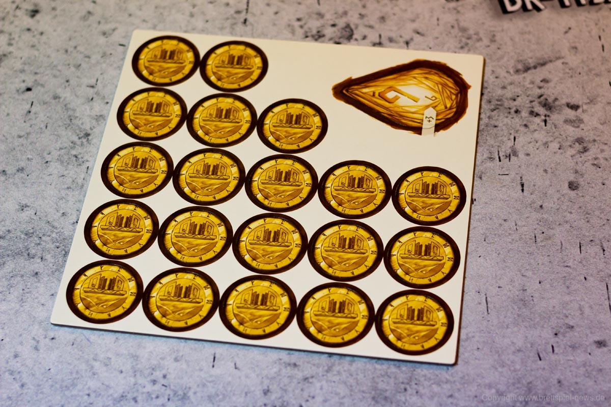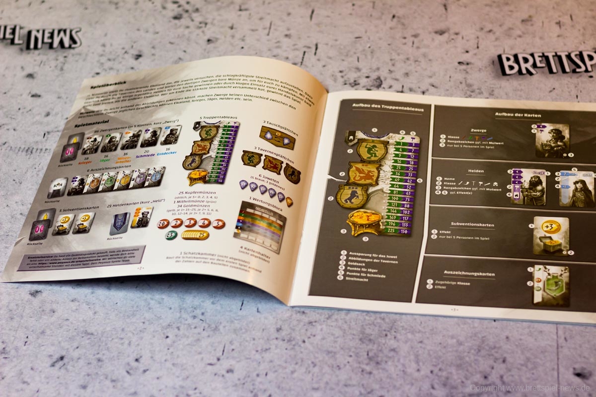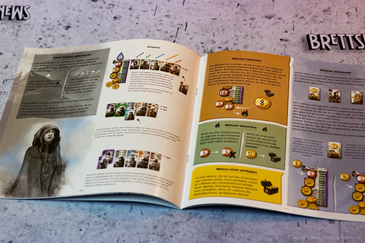 Ein großer Knackpunkt des Spiels war für mich aber die fehlende Thematik. Ja, die Spieler bieten Gold, damit sie schnell einen von ihnen gewünschten Zwerg auswählen können und die Zwerge sehen auch niedlich aus, aber genau das wäre für jedes nur erdenkliche Szenario möglich. Die Geschichte des Spiels wird in 8 kurzen Sätzen angeschnitten, wobei die Namen der großen drei Tavernen nur einmalig im Fließtext der Regelerklärung genannt werden. Auch, dass die Münzen nur dargeboten werden und nicht für das Anheuern der Zwerge ausgegeben werden, kam uns vor diesem Hintergrund etwas komisch vor. Während diese Aspekte für viele Spieler nebensächlich sind, stört es die Atmosphäre des Spiels doch sehr. Mit ein wenig mehr Hintergrundinformationen und „Worldbuilding“ hätte NIDAVELLIR hier sehr einfach Pluspunkte sammeln können, nun ist es aber etwas verschenktes Potential.