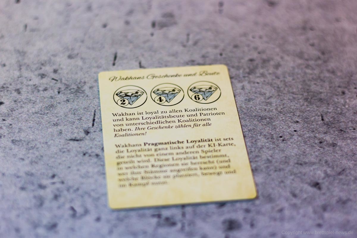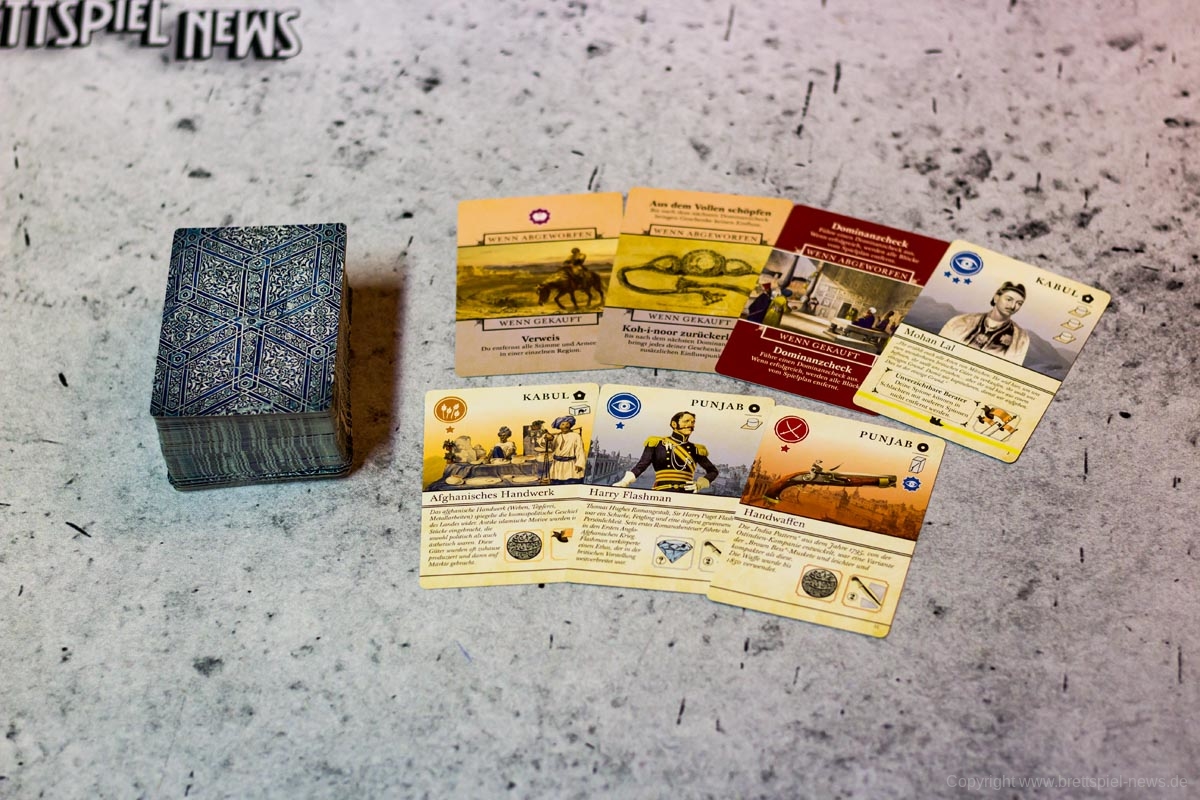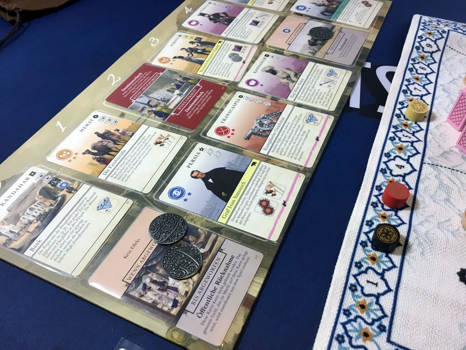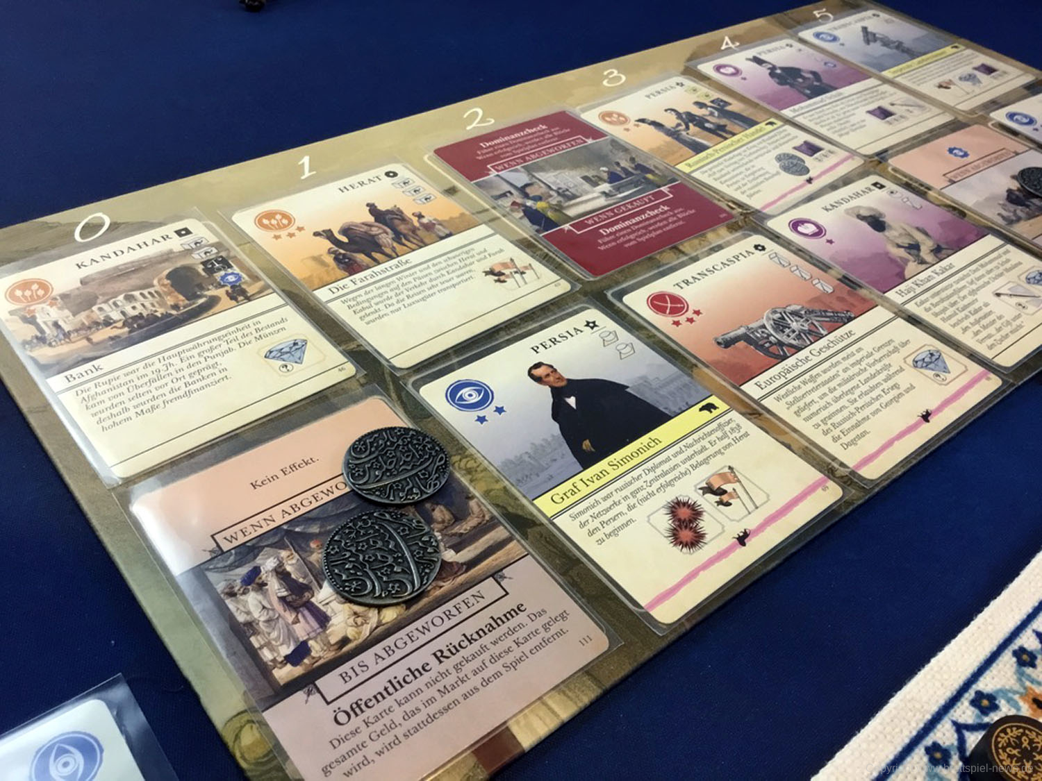 Ich war angenehm überrascht als ich die Regeln studierte und die erste Partie hinter mich gebracht hatte. PAX PAMIR hat etwas geschafft, dass nicht jedes Spiel bewirkt: Ich wollte direkt eine weitere Partie spielen. Und meinem Mitspieler ging es ebenso. Die Fülle an Regeln und die Informationsflut auf den Karten ist groß. Durch die Verzahnung der verschiedenen Mechanismen erhält jede Karte gleich mehrere Verwendungsmöglichkeiten und besonders im Spiel zu zweit gleicht eine Partie einem Schachduell. Mit steigender Spieleranzahl wechseln die Marktkarten häufiger und jede gegnerische Aktion verlangt Aufmerksamkeit. Der Glücksfaktor nimmt dadurch zu und auch der Loyalitätswechsel bei den Spielern tritt häufiger auf. Der Verlauf wird weniger vorhersehbar.