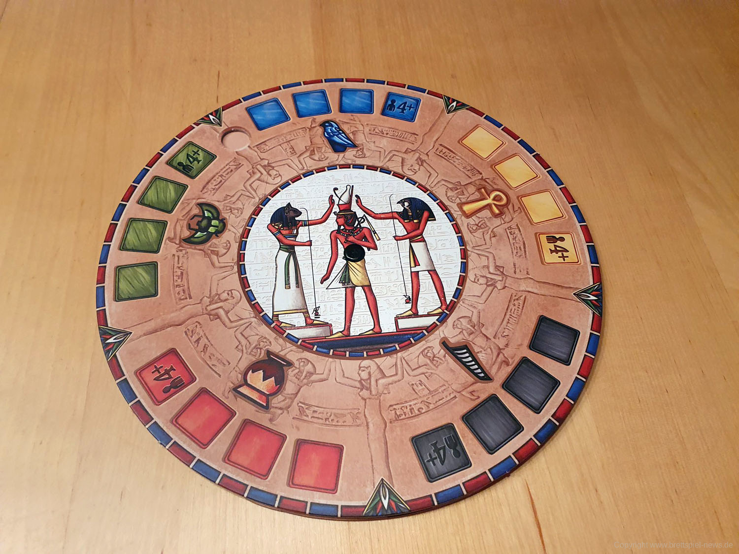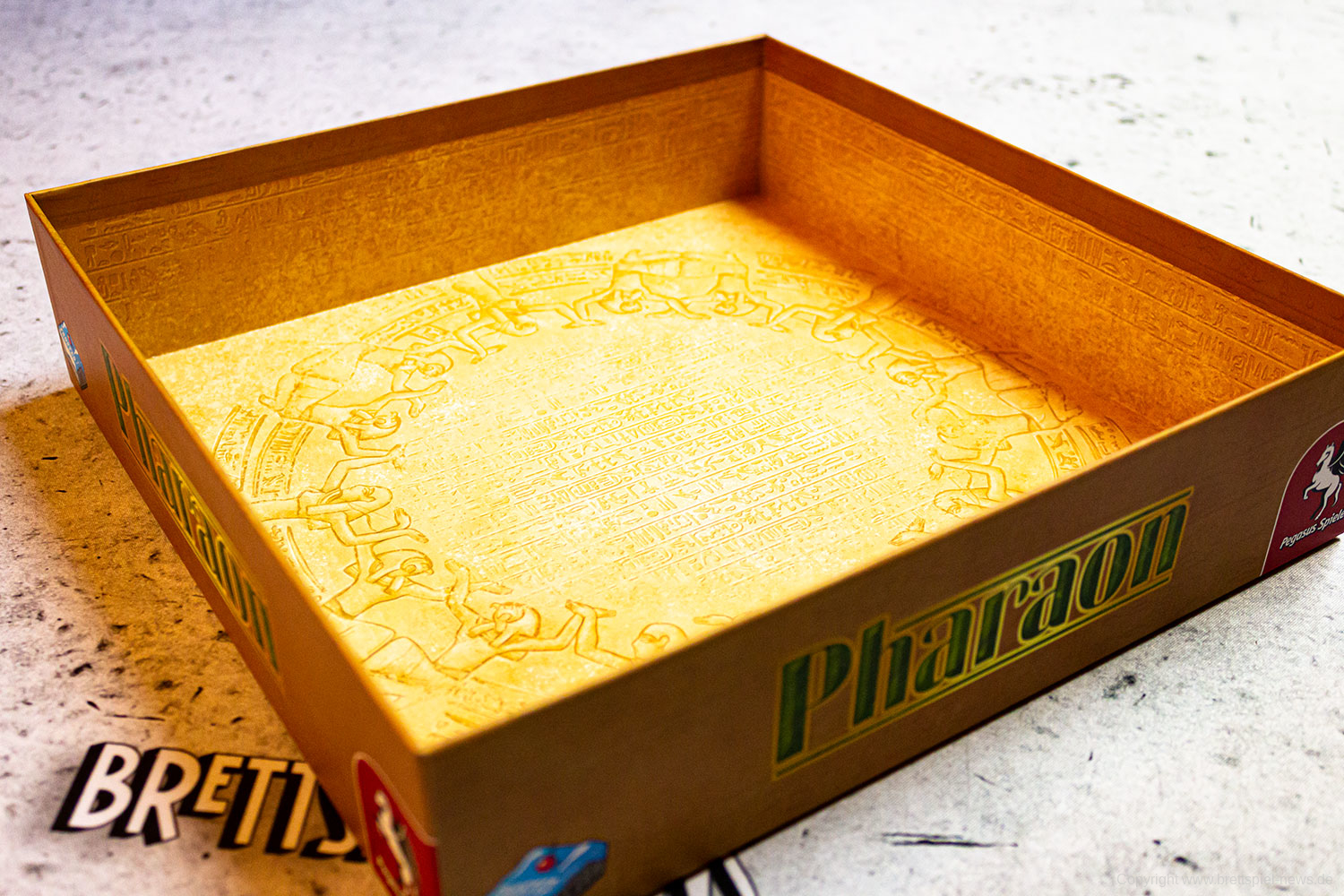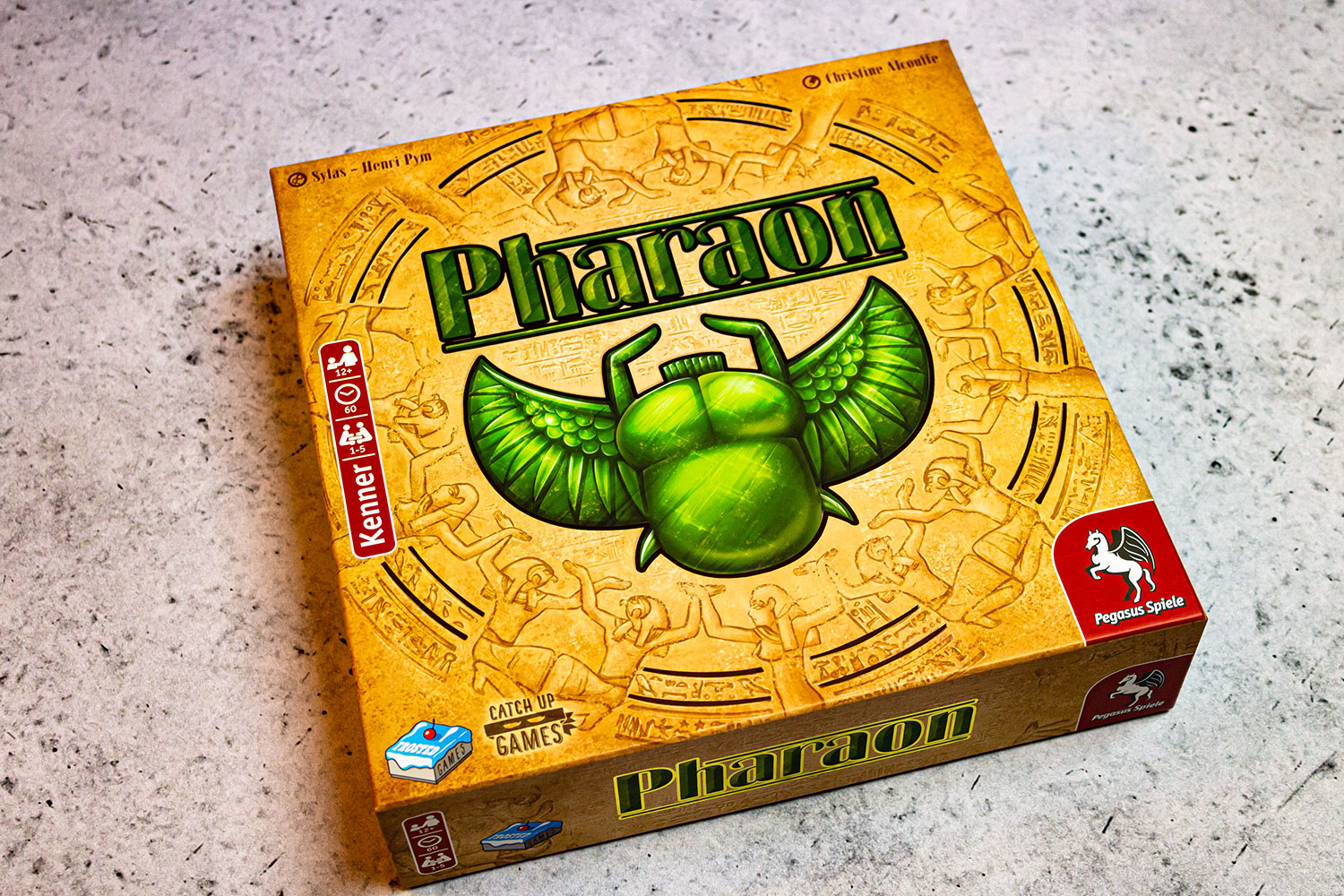 PHARAON ist ein unterhaltsames Kennerspiel mit vielen Aktionsmöglichkeiten. Durch den variablen Aufbau des Spieletableaus und durch das Rad der Zeit, das sich in zwei Richtungen drehen kann, bietet das Spiel auch für erfahrene Spieler einen Wiederspielreiz.