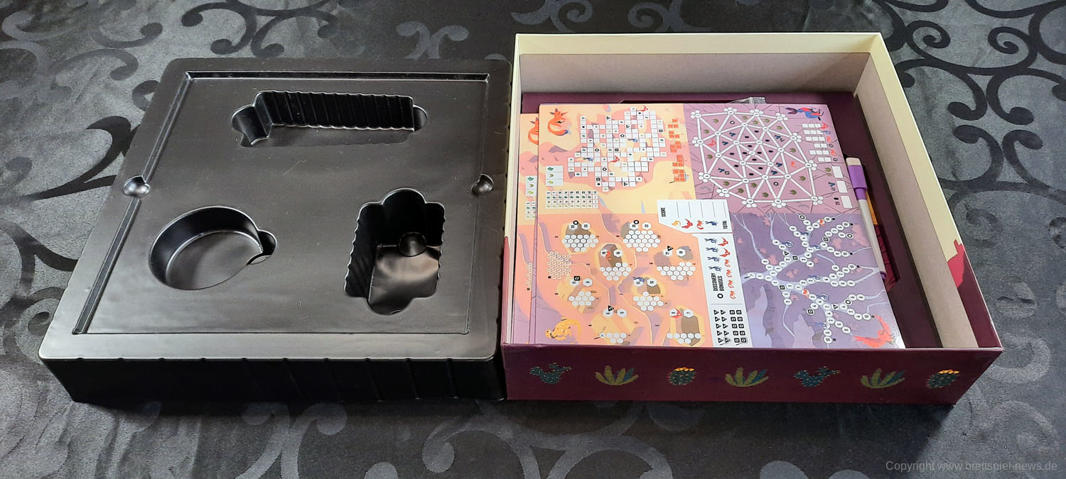 Der Ärger beginnt schon beim Aufmachen der Schachtel, weil diese unnötig groß geraten ist. Ein Drittel der Höhe hätte absolut gereicht. Den größten Teil des Raums frisst ein unnötiges Inlay.