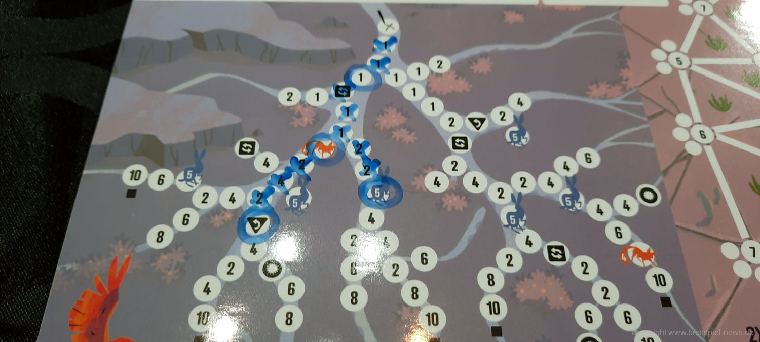 Die Scoresheets hingegen sind wirklich gut. Die vier Minispiele, an denen herumgetüftelt wird, bringen Abwechslung und fordern viele Entscheidungen. Die Puzzleaufgabe im Canyon gefällt mir besonders gut. Auch das Freischalten und Einsetzen der Boni verleiht dem Spiel eine schöne strategische Tiefe, die ein wenig über die Enttäuschung beim Schnipsen hinwegtröstet.
