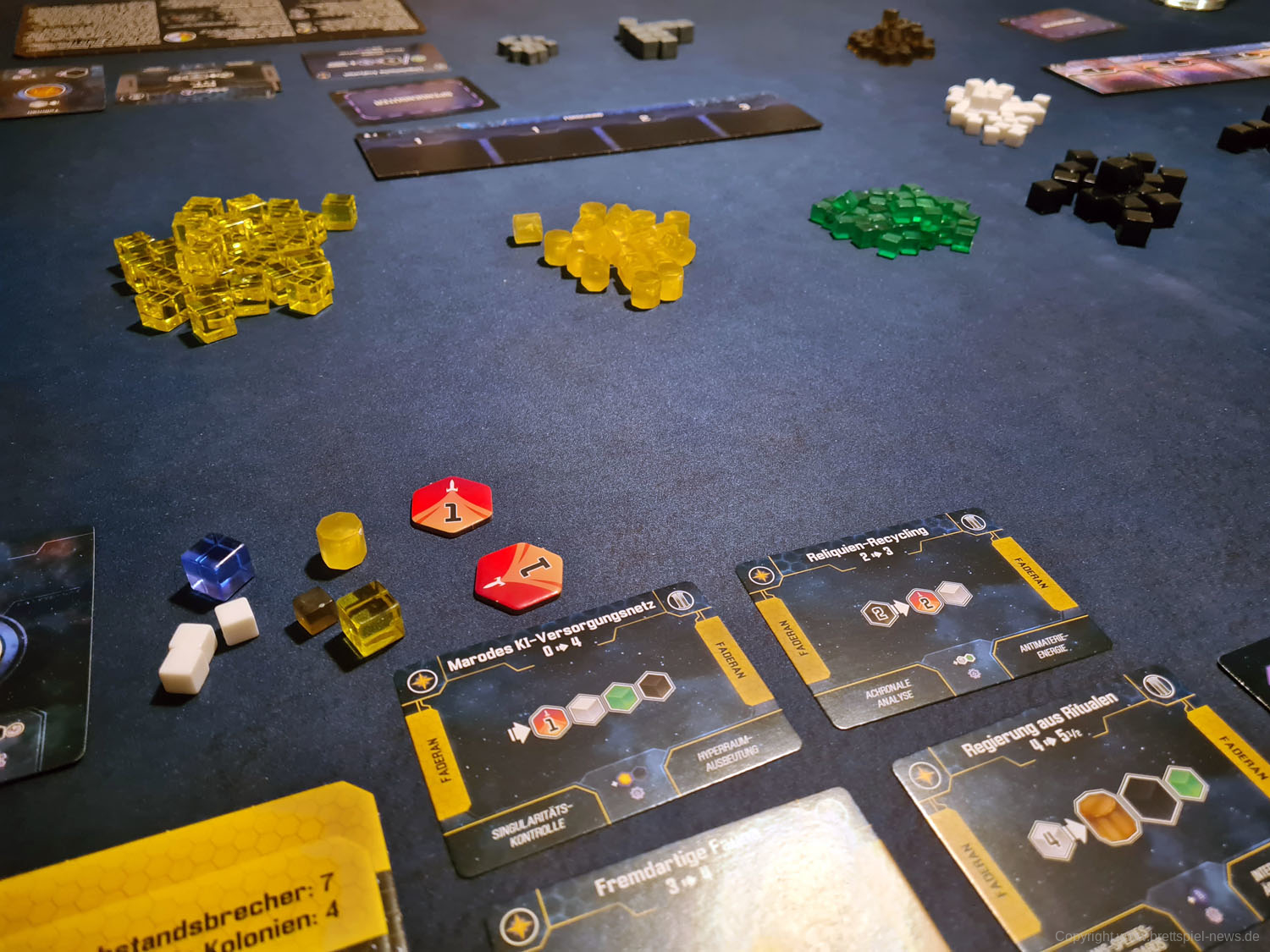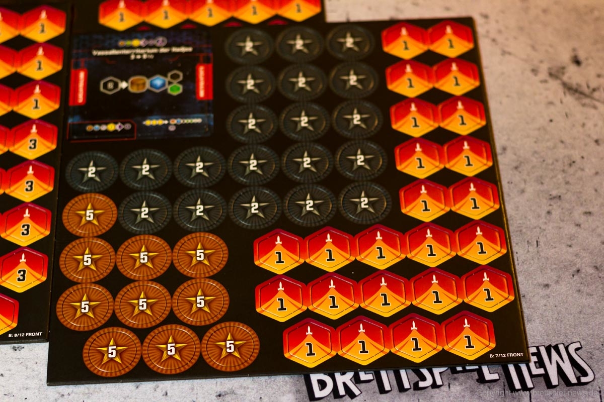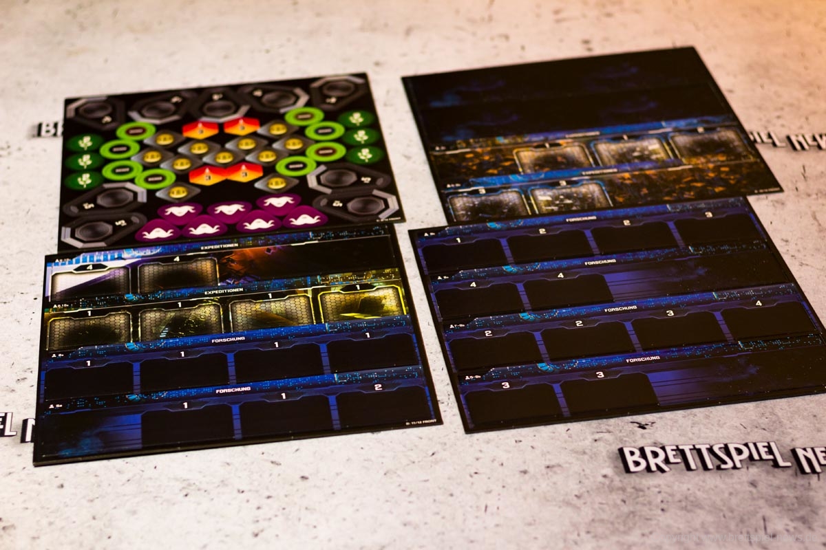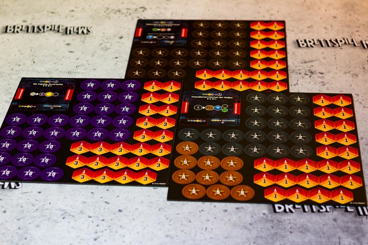 Der Verlag ordnet SIDERISCHE KONFLUENZ nicht nur aus diesem Grund als Expertenspiel ein. Die Freiheit der Spieler in der Transaktionsphase hat den Preis, dass Anfänger schnell überfordert sind und eine Struktur benötigen, die das Spiel absichtlich nicht hergibt. Die eigentliche Komplexität des Spiels beruht aber letztlich auf den asymmetrischen Fraktionen. Jede Spezies hat eigene Vor- und Nachteile sowie eigene Fähigkeiten mit eigenen Mechaniken. Ist etwas unklar, ist der Spieler in den meisten Fällen etwas alleingelassen und muss sich selbst einen Reim aus den Angaben auf seinem Spielertableau machen. Besonders hilfreich ist hierbei ein kleiner „How-To-Guide“ auf den Spielertableaus, die den Spielern Hilfestellungen geben, wie sie die Fraktionen im Bestfall spielen können.