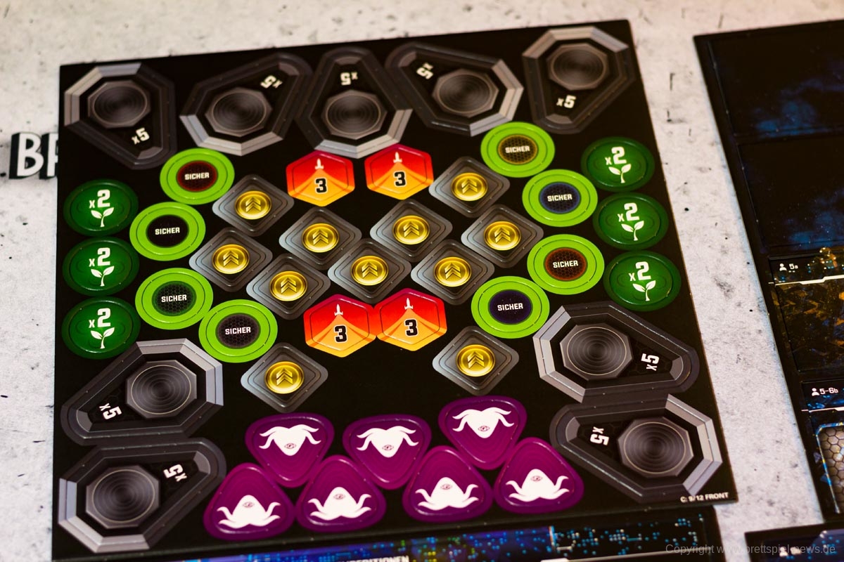 Gemischte Gefühle hatten wir bei der angegebenen Spielerzahl. SIDERISCHE KONFLUENZ kann mit 4 bis unfassbaren 9 Spielern gespielt werden, wobei dann alle Fraktionen gleichzeitig im Spiel wären. Aufgrund der derzeitigen Pandemie-Lage konnten wir das Spiel nur zu viert spielen, können und jedoch kaum vorstellen, das Spiel mit mehr als 6 Leuten zu spielen, weil alleine der Umfang des Tisches einen ganzen Raum umspannen müsste und die Komplexität sich mit jedem zusätzlichen Spieler erhöht. Es ist verständlich, dass ein Spiel, dessen Hauptfaktoren die anderen Spieler sind, nicht mit einer kleinen Gruppe gespielt werden kann. Allein die Möglichkeit, ein solches Spiel mit einer solch großen Gruppe zu spielen, ist überaus spannend, aber definitiv genauso angsteinflößend. Ich lasse mir an dieser Stelle die Möglichkeit offen, einen Erfahrungsbericht nachzureichen, sollte ich es jemals schaffen, eine solche große Spielergruppe zusammenzubekommen. Unsere Bewertung beruht daher aber auch auf 4-Spieler-Partien und könnte noch einmal angepasst werden müssen, sollten Partien mit mehr Spielern wieder möglich und tatsächlich umsetzbar sein!