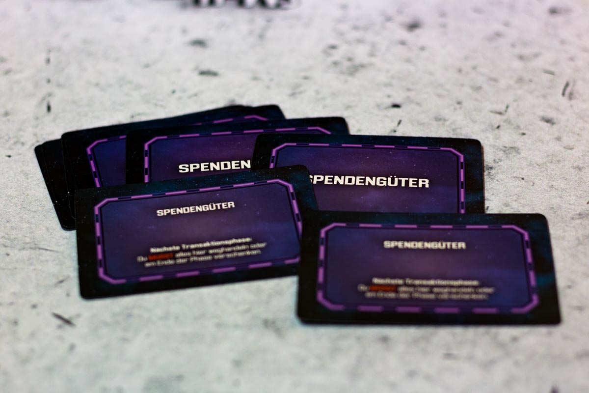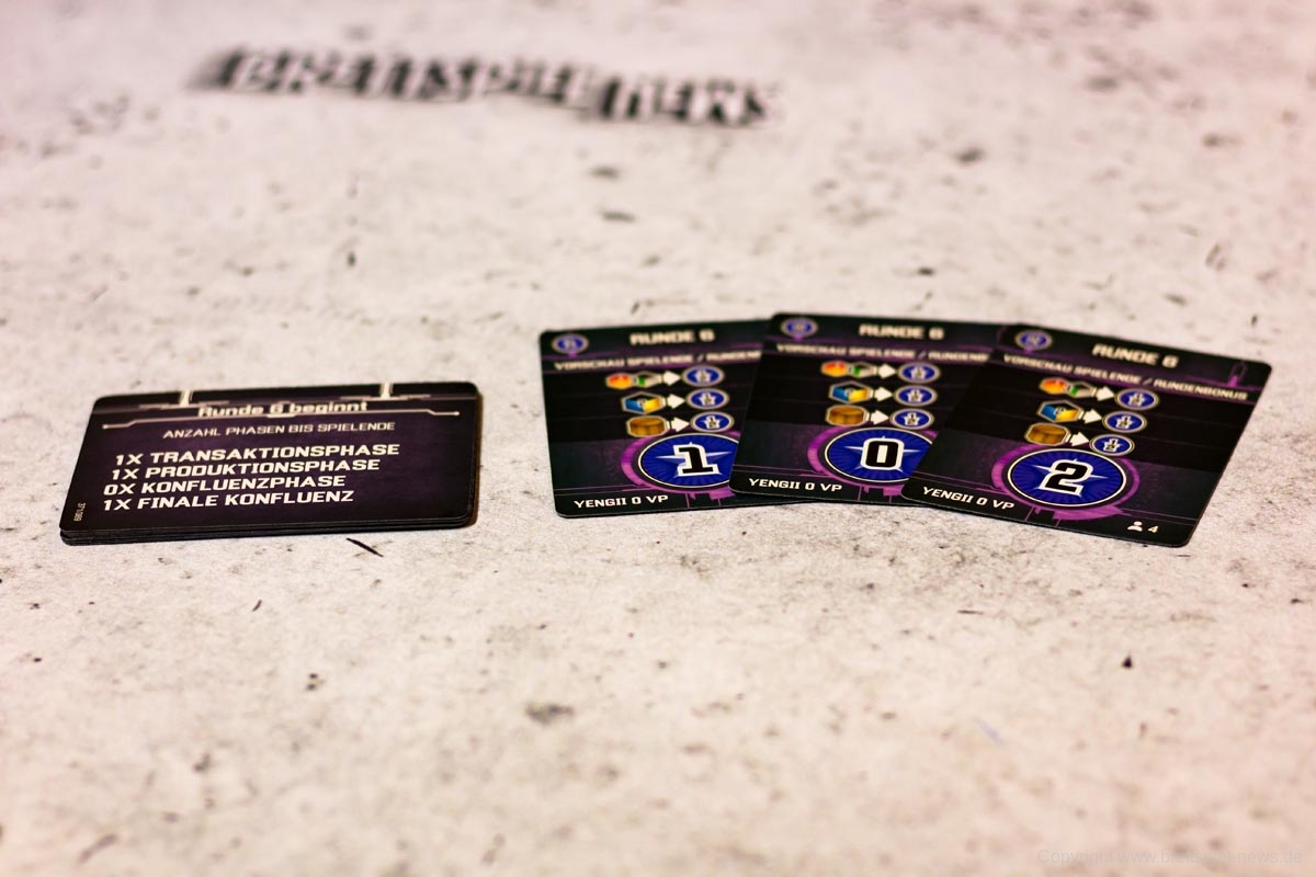 Für die Transaktionsphase gibt es keine vom Spiel vorgegebenen Mechaniken. Die Spieler handeln also mit allem, was sie zur Verfügung haben, um ihre Konverter in der nächsten Phase in Gang zu bringen. Dazu zählen alle nur denkbaren Ressourcen und sogar Versprechungen für zukünftige Ressourcen. Kann ein Spieler ein Versprechen nicht einhalten, erhält er dafür schmerzliche Minuspunkte, also sollte sich jeder Spieler über seinen genauen Wortlaut im Klaren sein.
