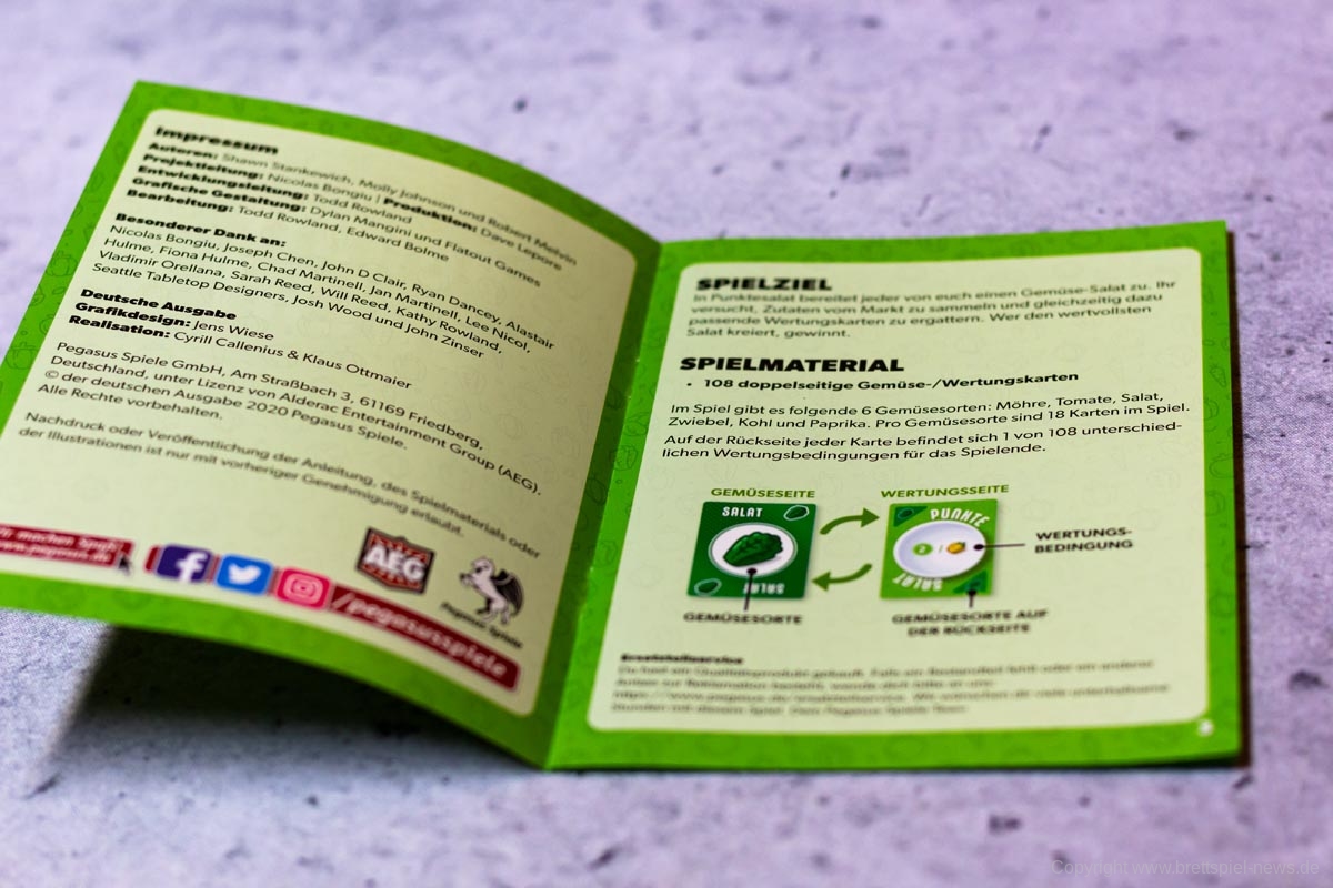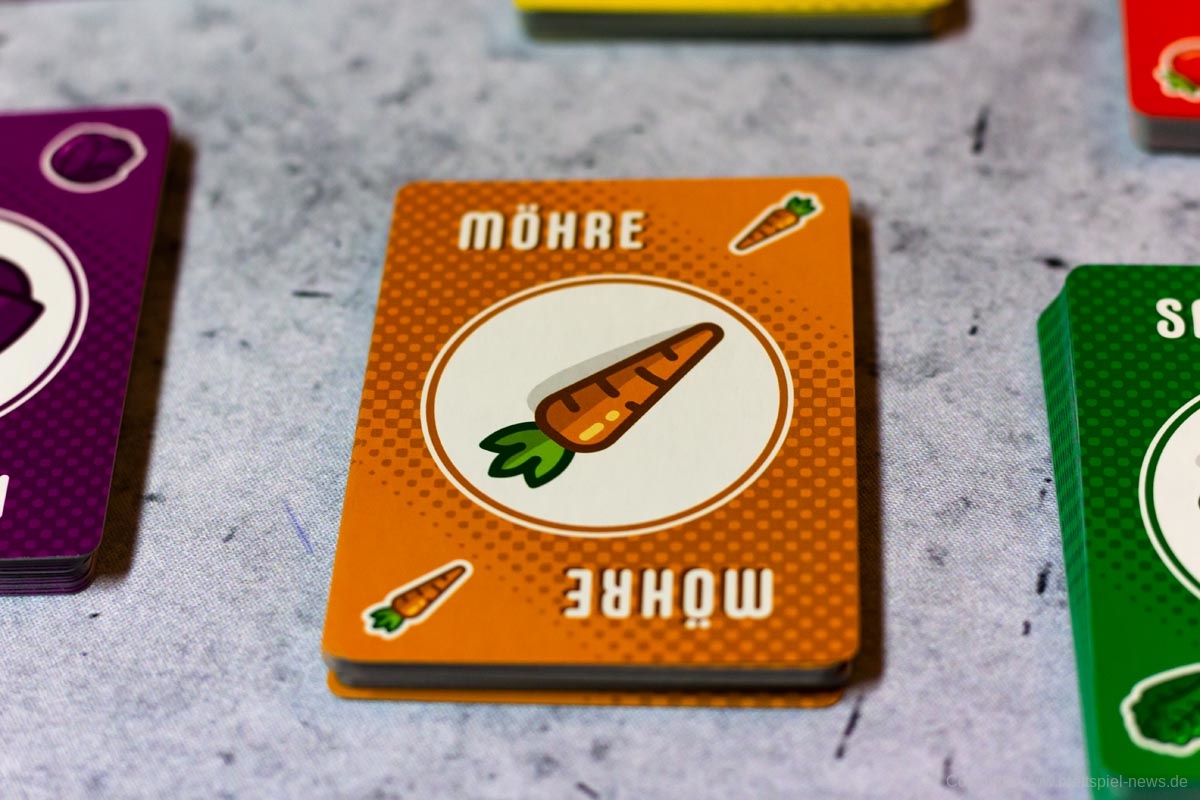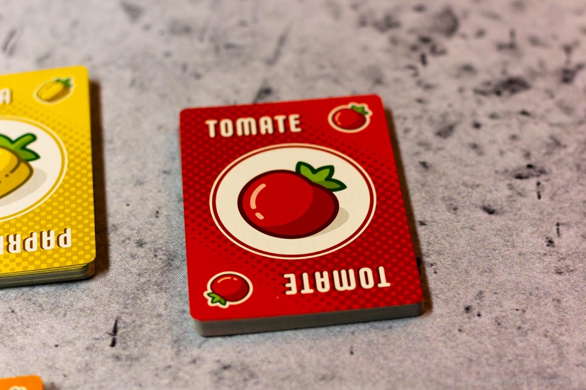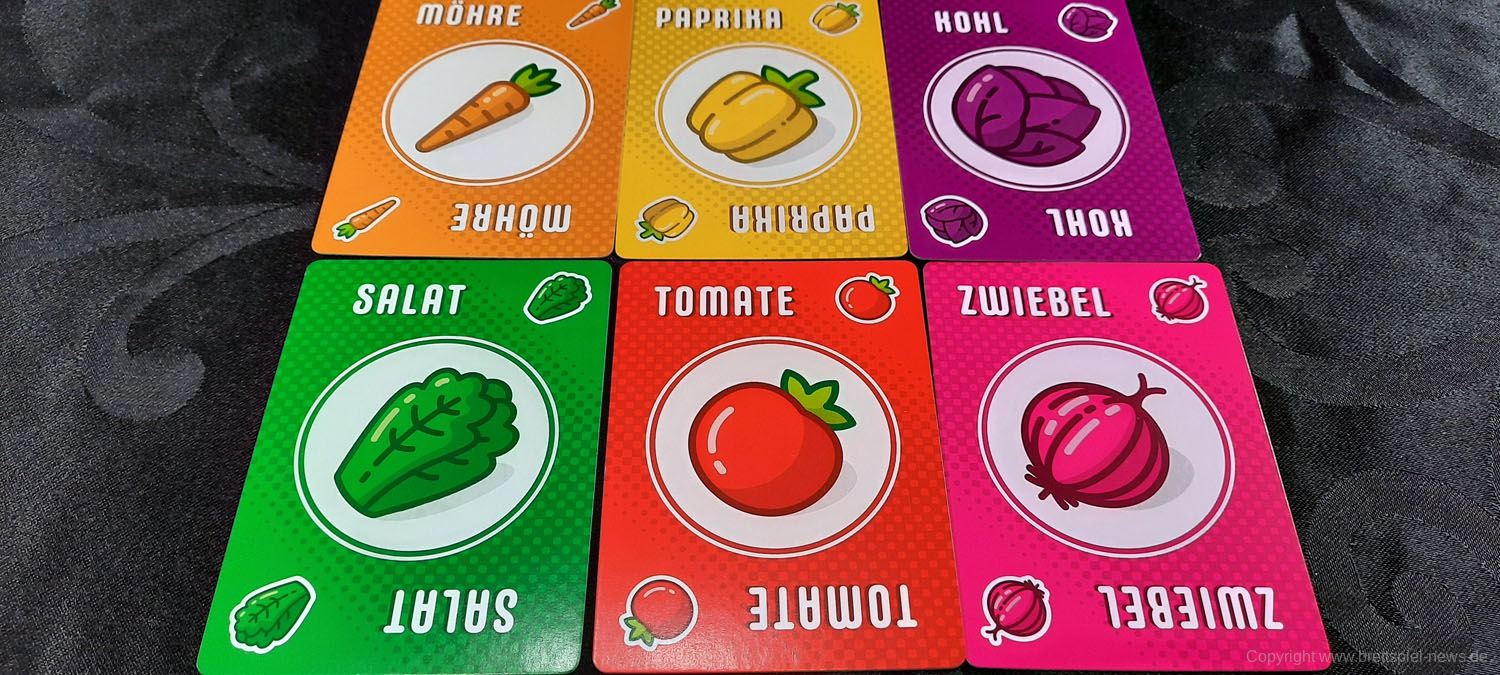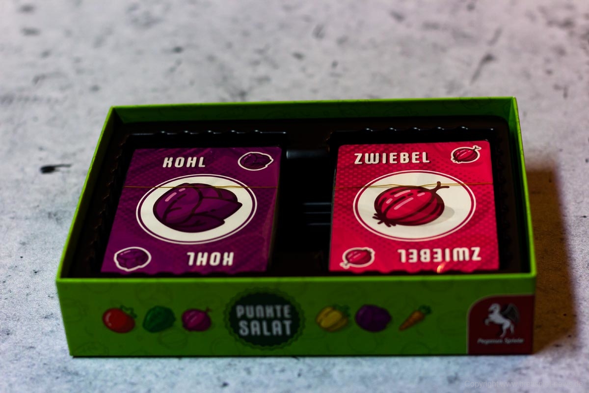 PUNKTESALAT ist ein kurzes und knackiges Kartenspiel für Zwischendurch. Es wirkt etwas unscheinbar und unspektakulär und sicherlich revolutioniert dieses Spiel nicht die Welt der Kartenspiele. Aber man sollte auch nicht zu vorschnell urteilen. Trotz des einfachen Spielprinzips bietet dieses Spiel Raum für Strategie und Taktik. Es kann spielentscheidend sein, ob man diese eine Zwiebel jetzt nimmt oder nicht. Einerseits möchte man seine eigenen Rezepte erfüllen, aber natürlich auch nicht seinem Gegner alles übriglassen, was er zum Erfüllen seiner Rezepte braucht. Oder ist es eventuell doch sinnvoll, das neue Rezept, was gerade aufgedeckt wurde, zu nehmen. Dazu hilft es ungemein, eine grobe Vorstellung zu haben, welche Karten und wie viele davon noch verfügbar sind.