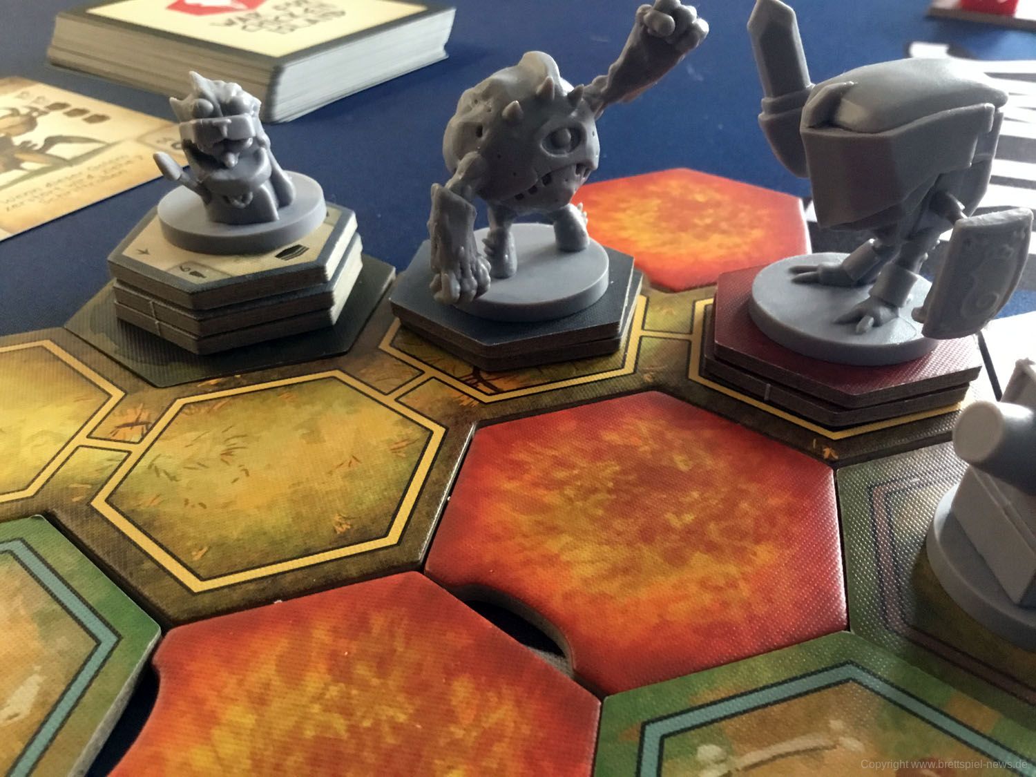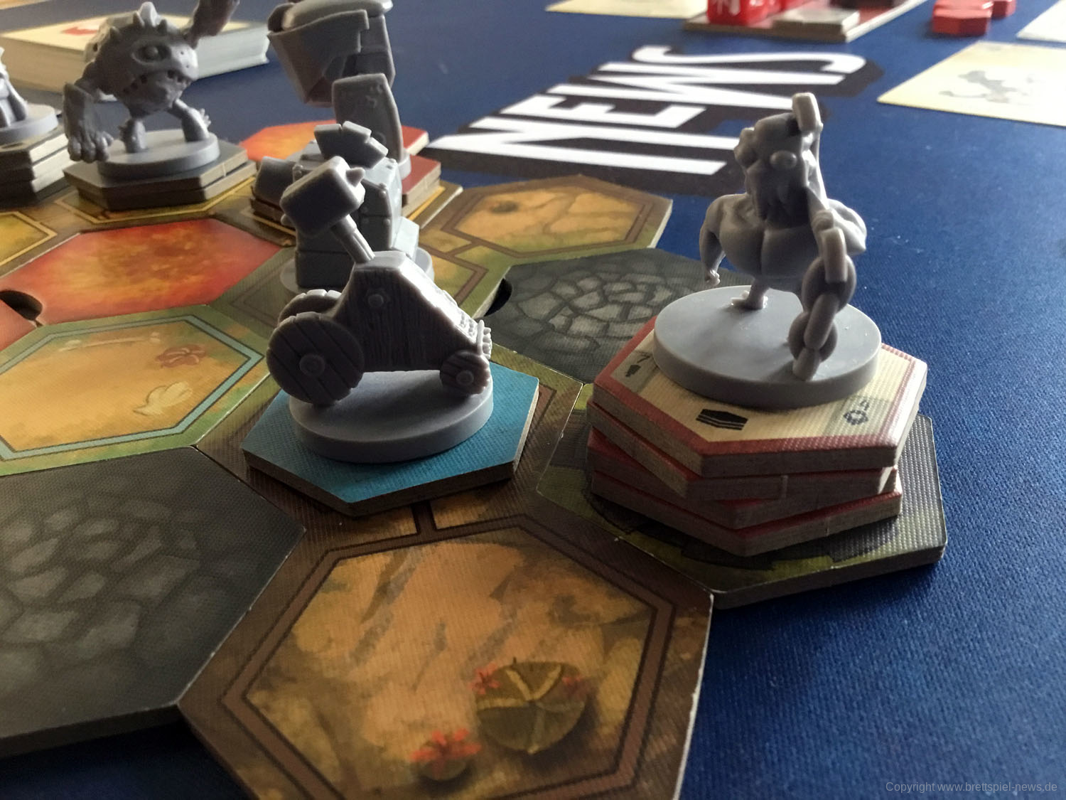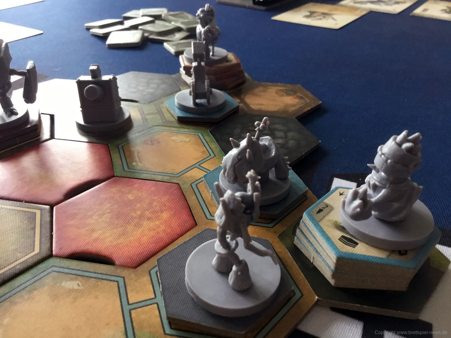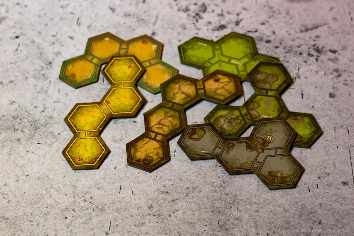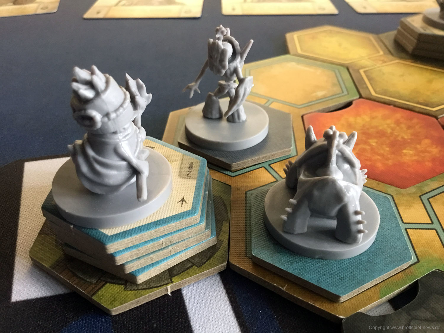 Das Spiel besticht durch seine zahlreichen Miniaturen. Die Gussqualität ist gut, einige Stellen sind jedoch sehr fragil und können leicht brechen. Diese sind in einem passenden Kartoneinsatz mit Deckel gut untergebracht. Die Pappteile, wie Spielerbanner und Rohstoffplättchen, sind aus fester Pappe und widerstandsfähig.